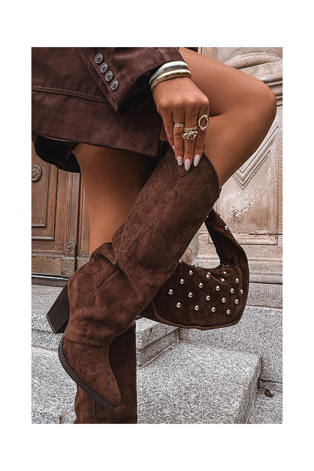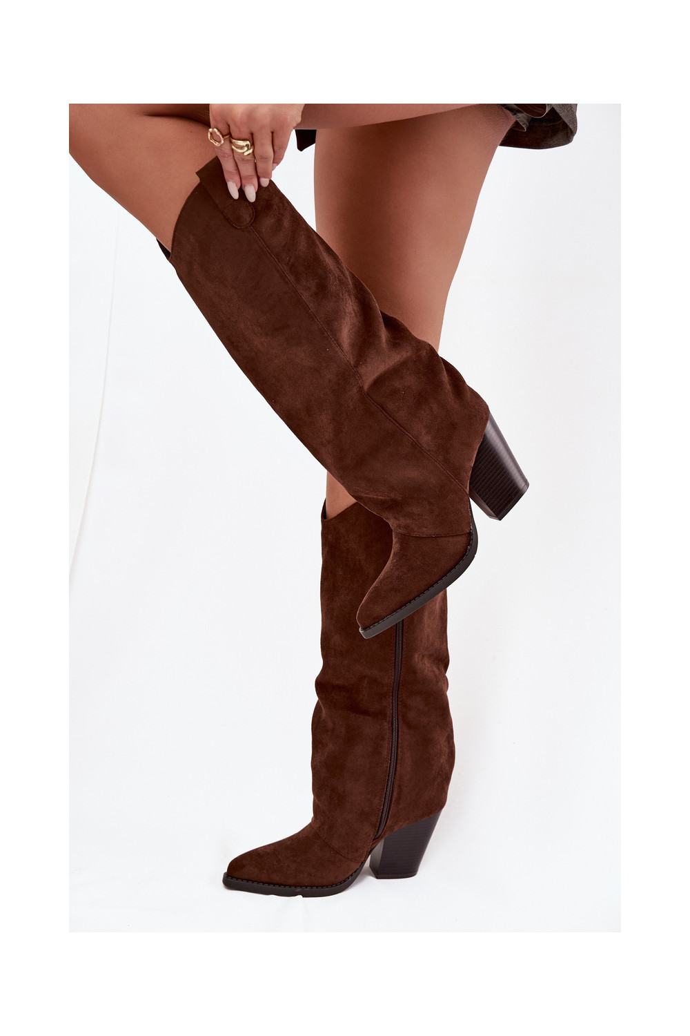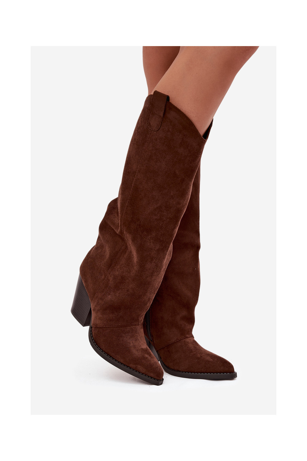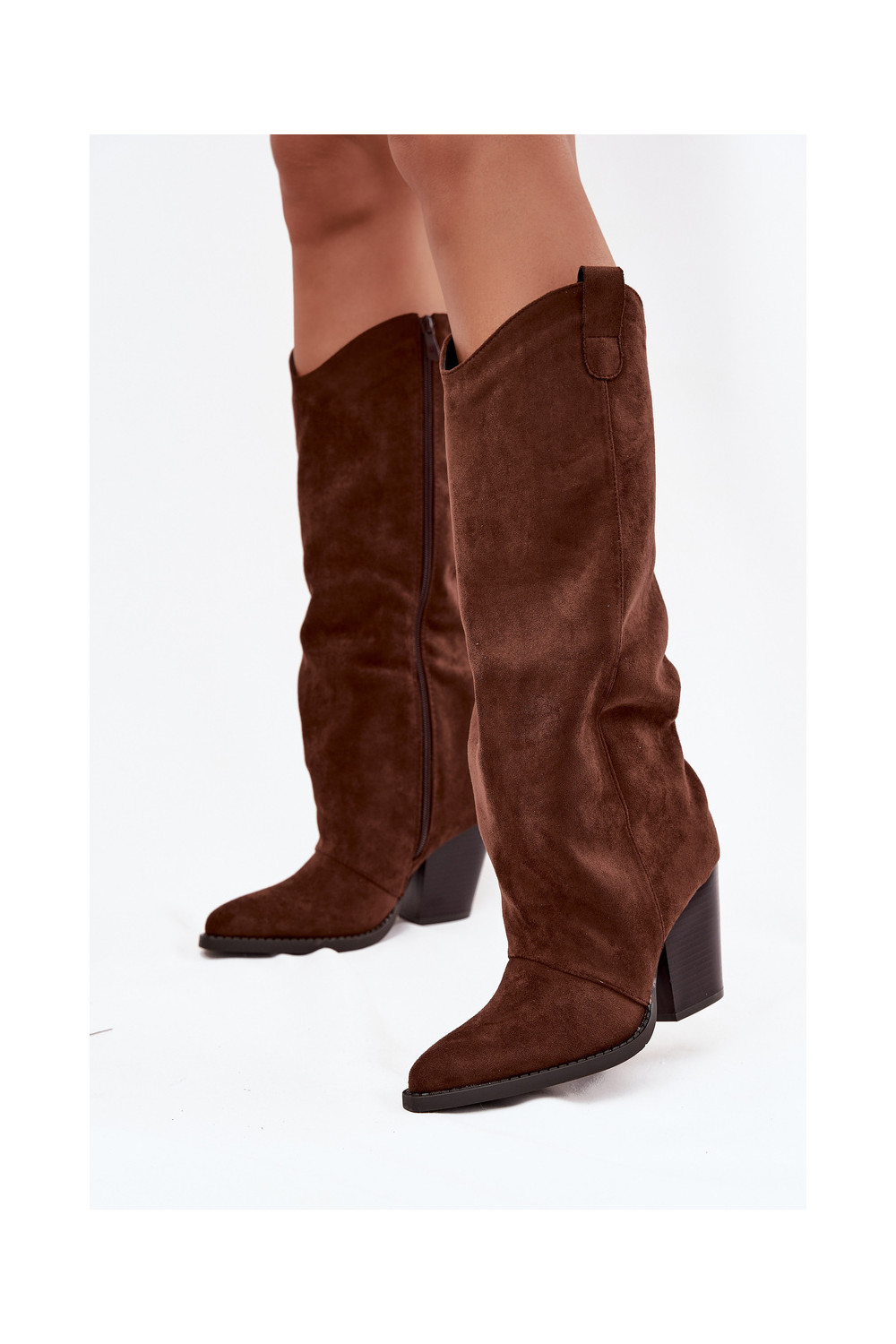 pašiltinti ilgaauliai batai kaubojiško stiliaus su kulniukaissuiš eko zomšosu CzekoladoĮe Tai turivine