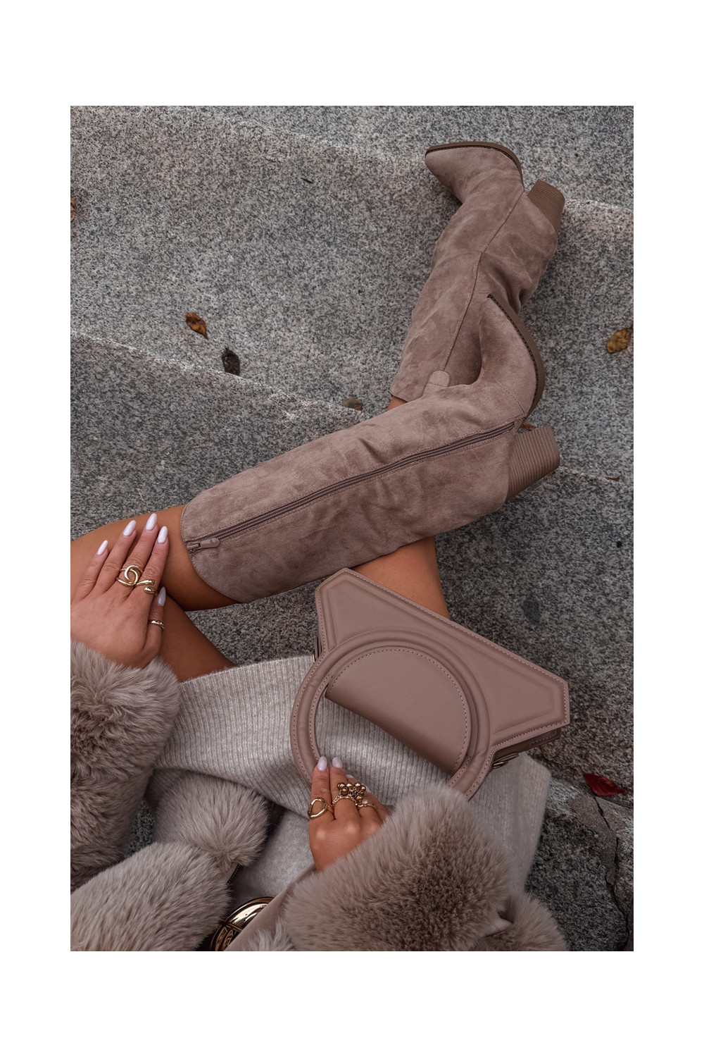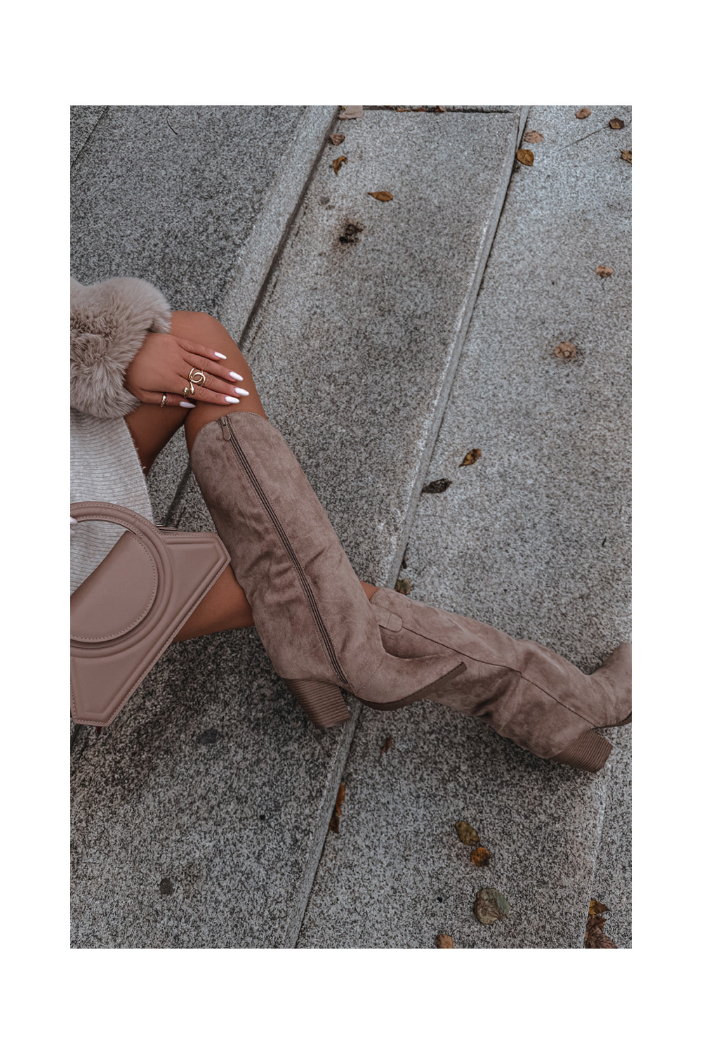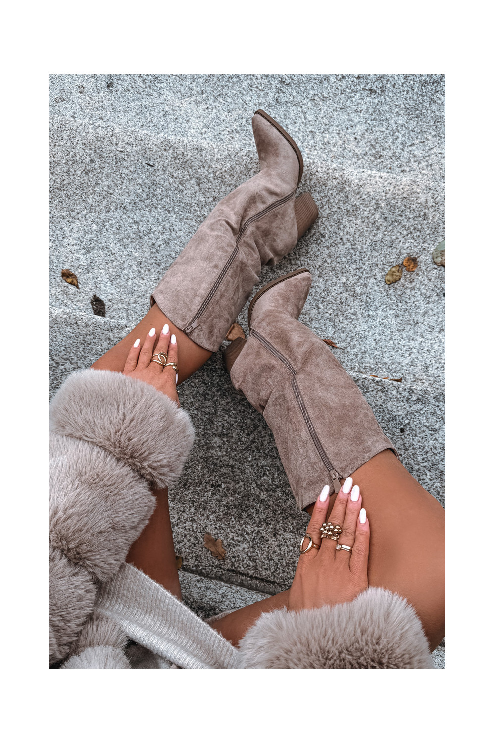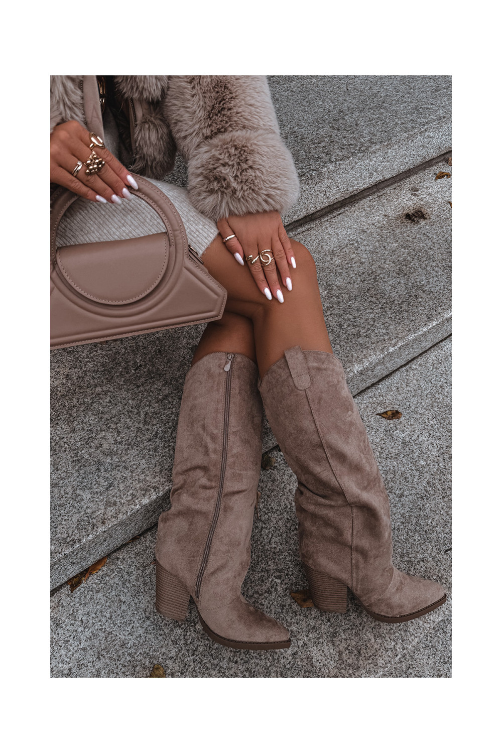 pašiltinti ilgaauliai batai kaubojiško stiliaus su kulniukaissuiš eko zomšosu smėlio spalvos Tai turivine