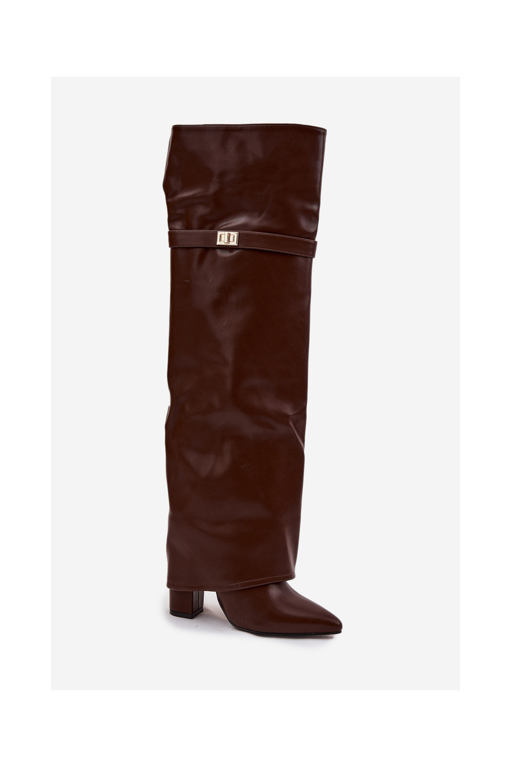 pašiltinti ilgaauliai batai Z Wywiniętą Cholewką virš kelių Obcas Słupek rudos spalvos Serelle