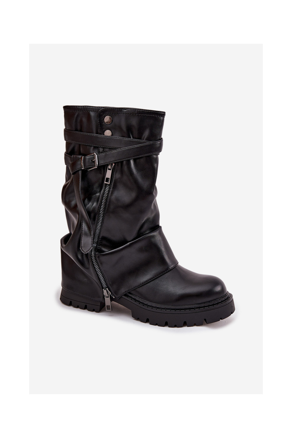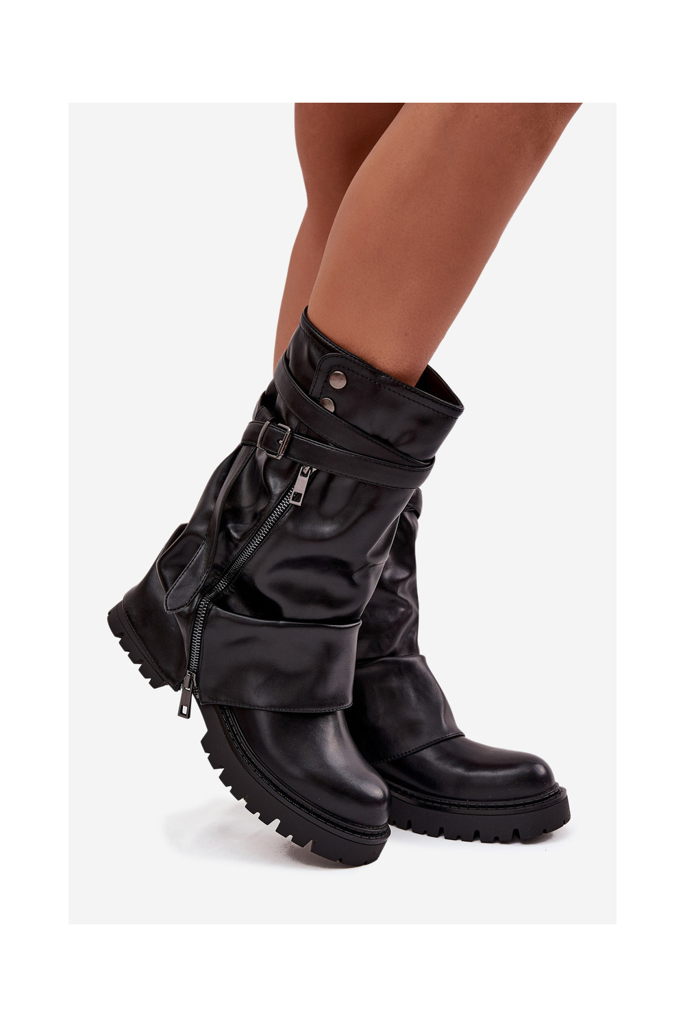 moteriški ilgaauliai batai Z Wywiniętą Cholewką  su dirželiais Juodos spalvos Darisa