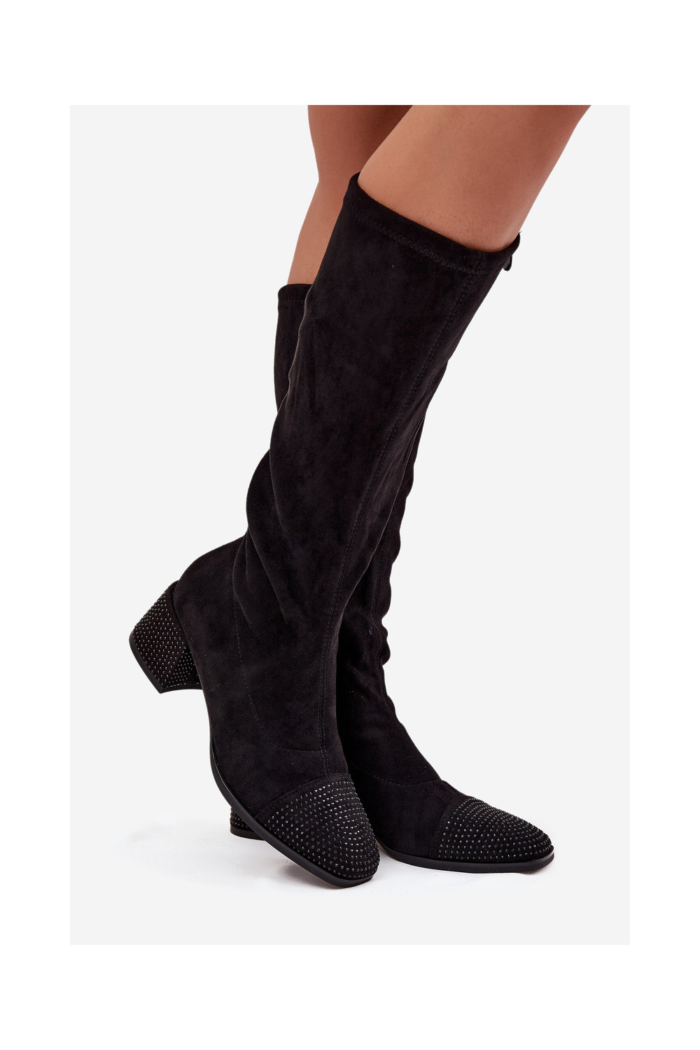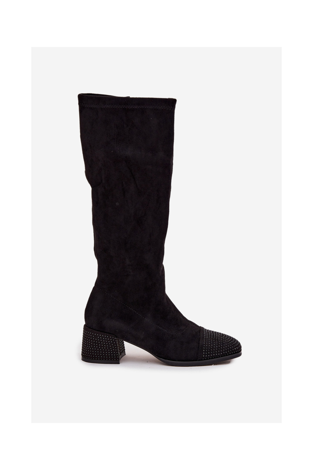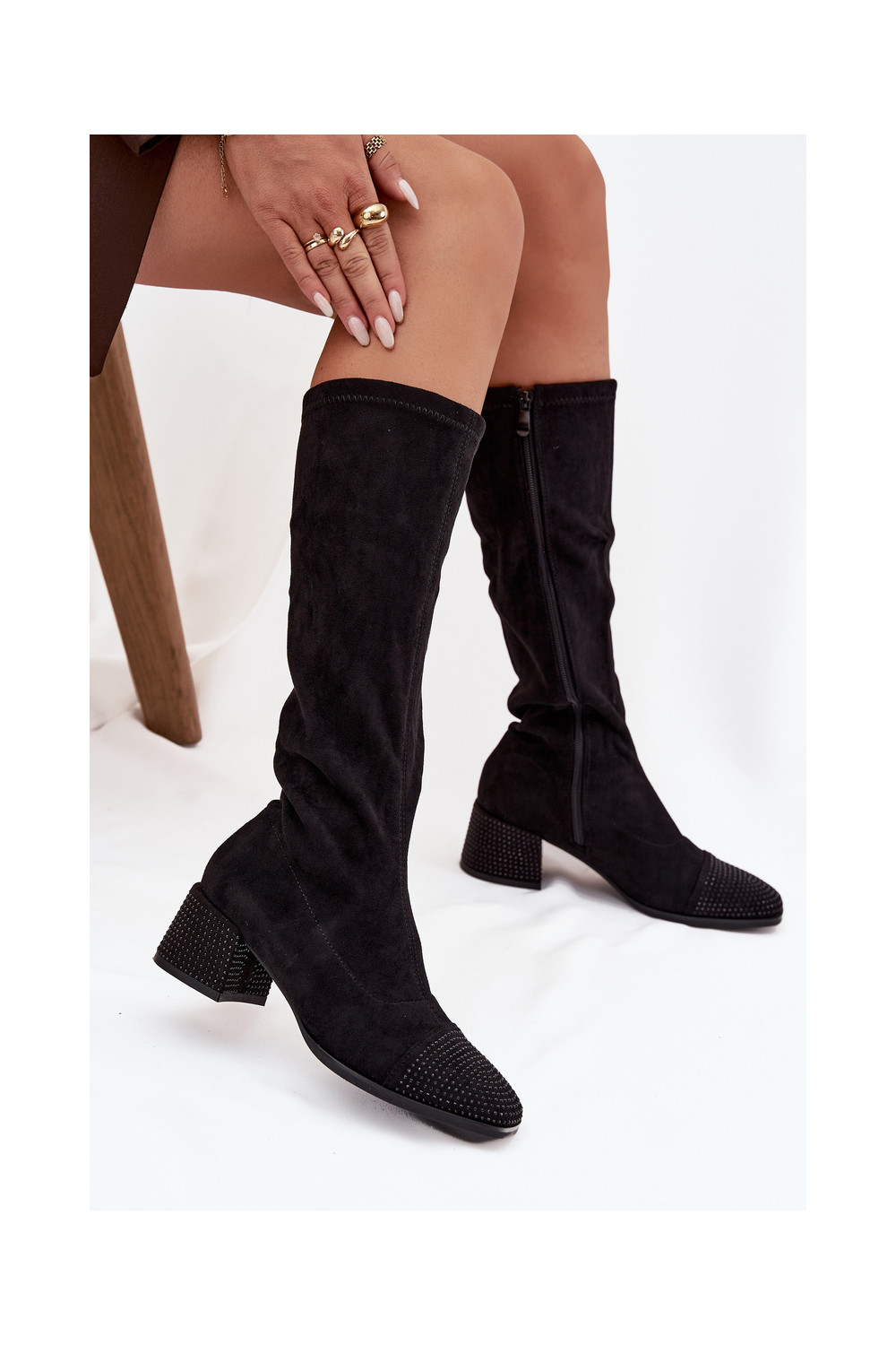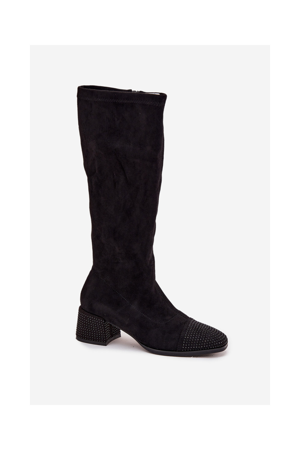 moteriški ilgaauliai batai Su dekoracija Klocke iš eko zomšosoĮe juodos spalvos Ivanna