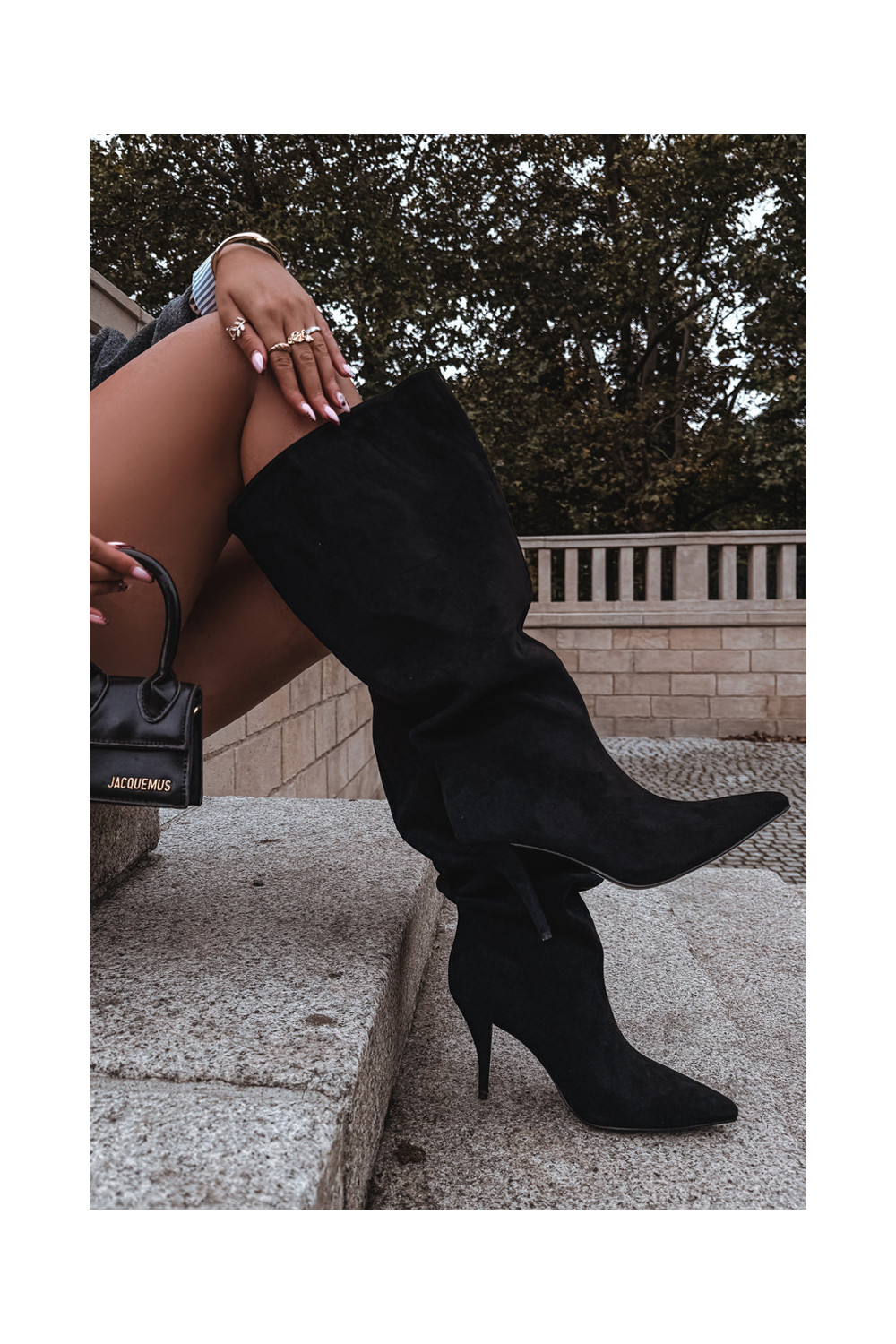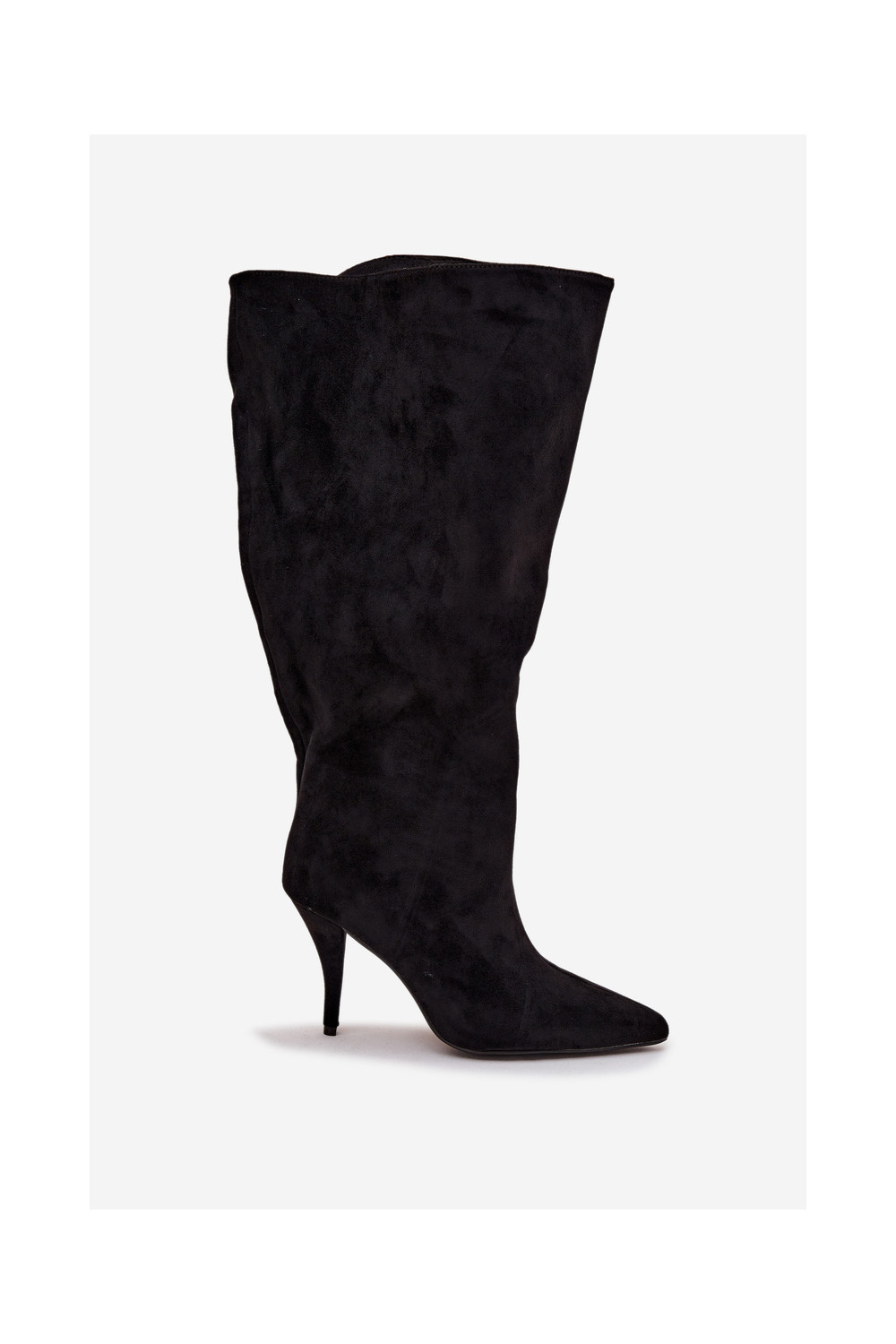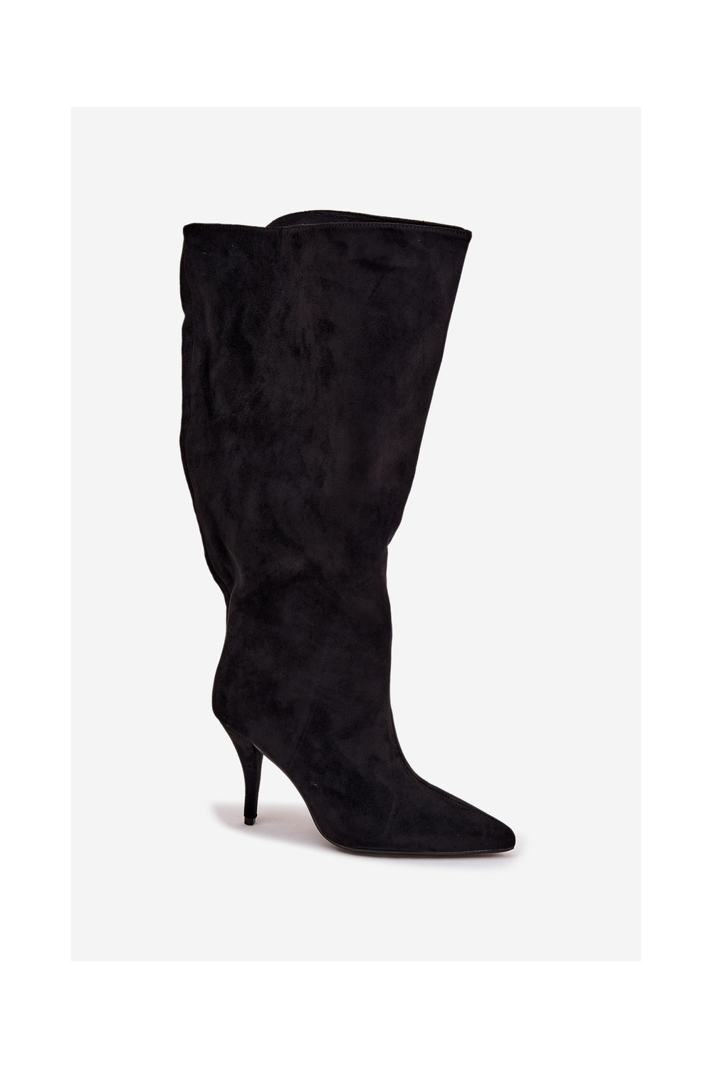 Įsispiriamo modelio moteriški ilgaauliai batai su plonais kulniukaissuiš eko zomšosu juodos spalvos Noretta