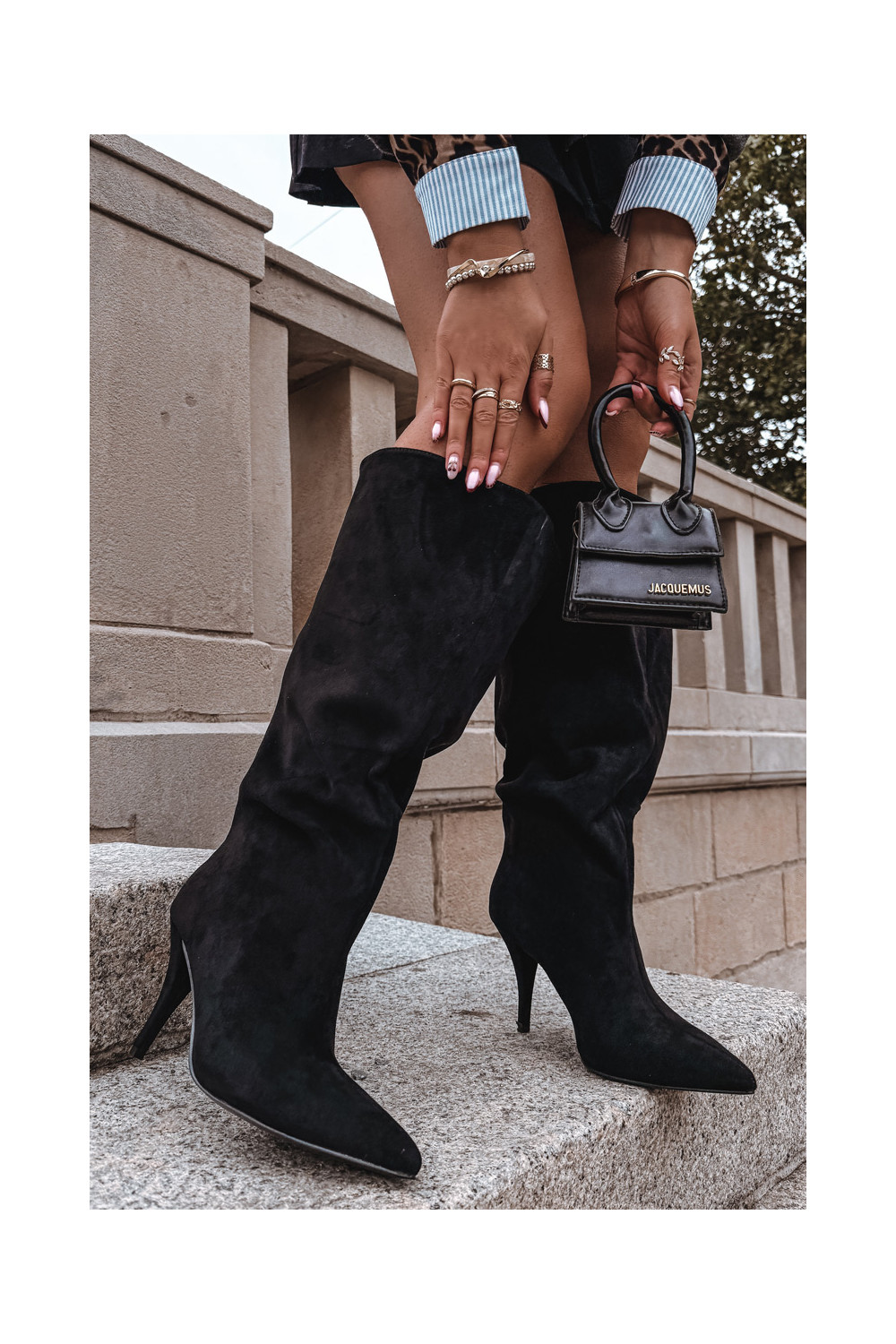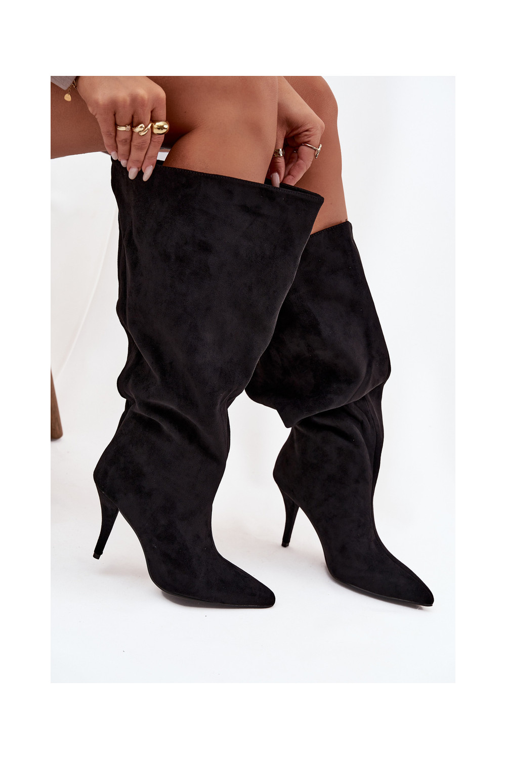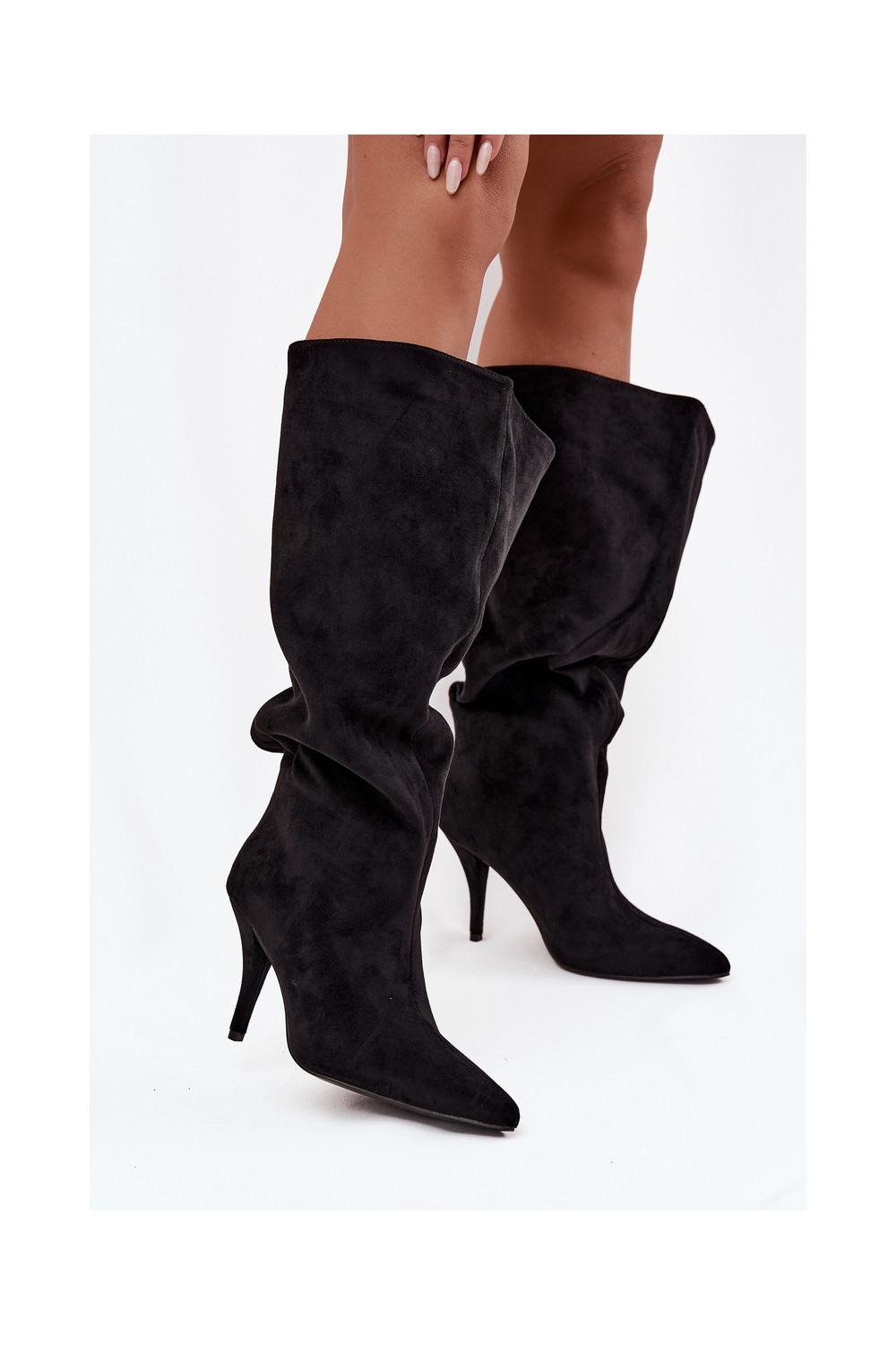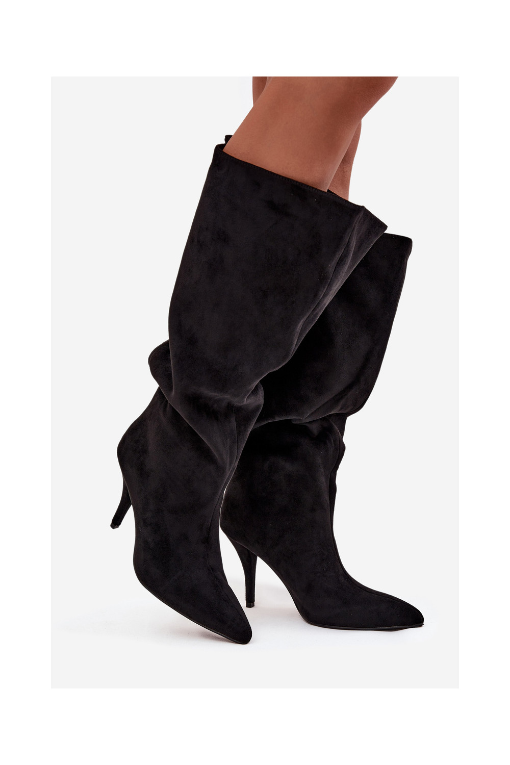 Įsispiriamo modelio moteriški ilgaauliai batai su plonais kulniukaissuiš eko zomšosu juodos spalvos Noretta