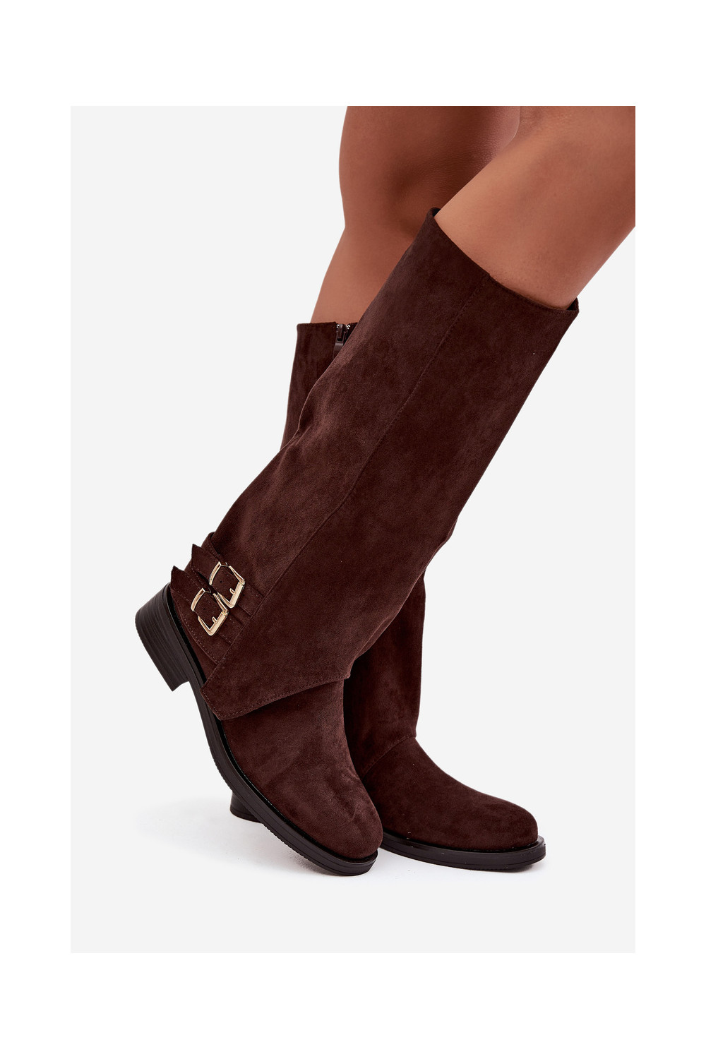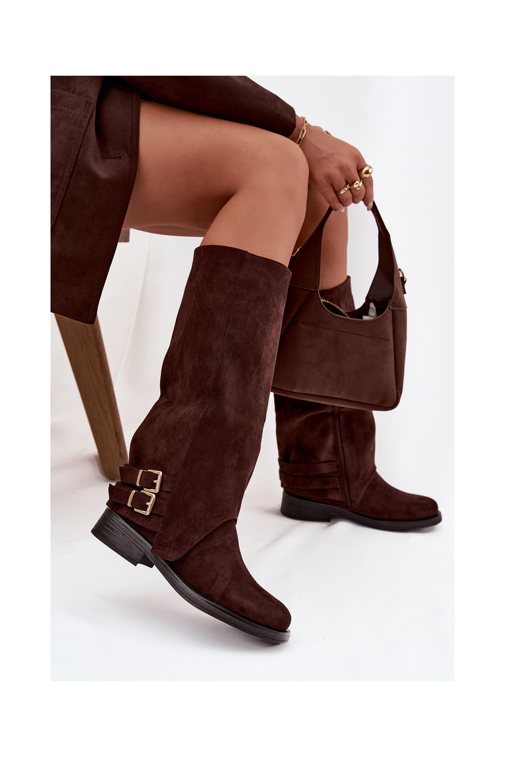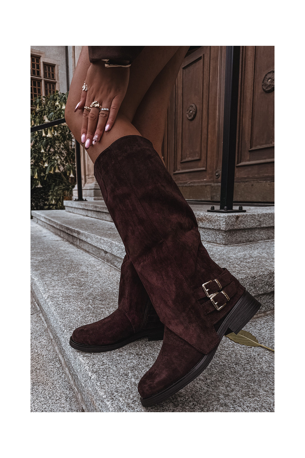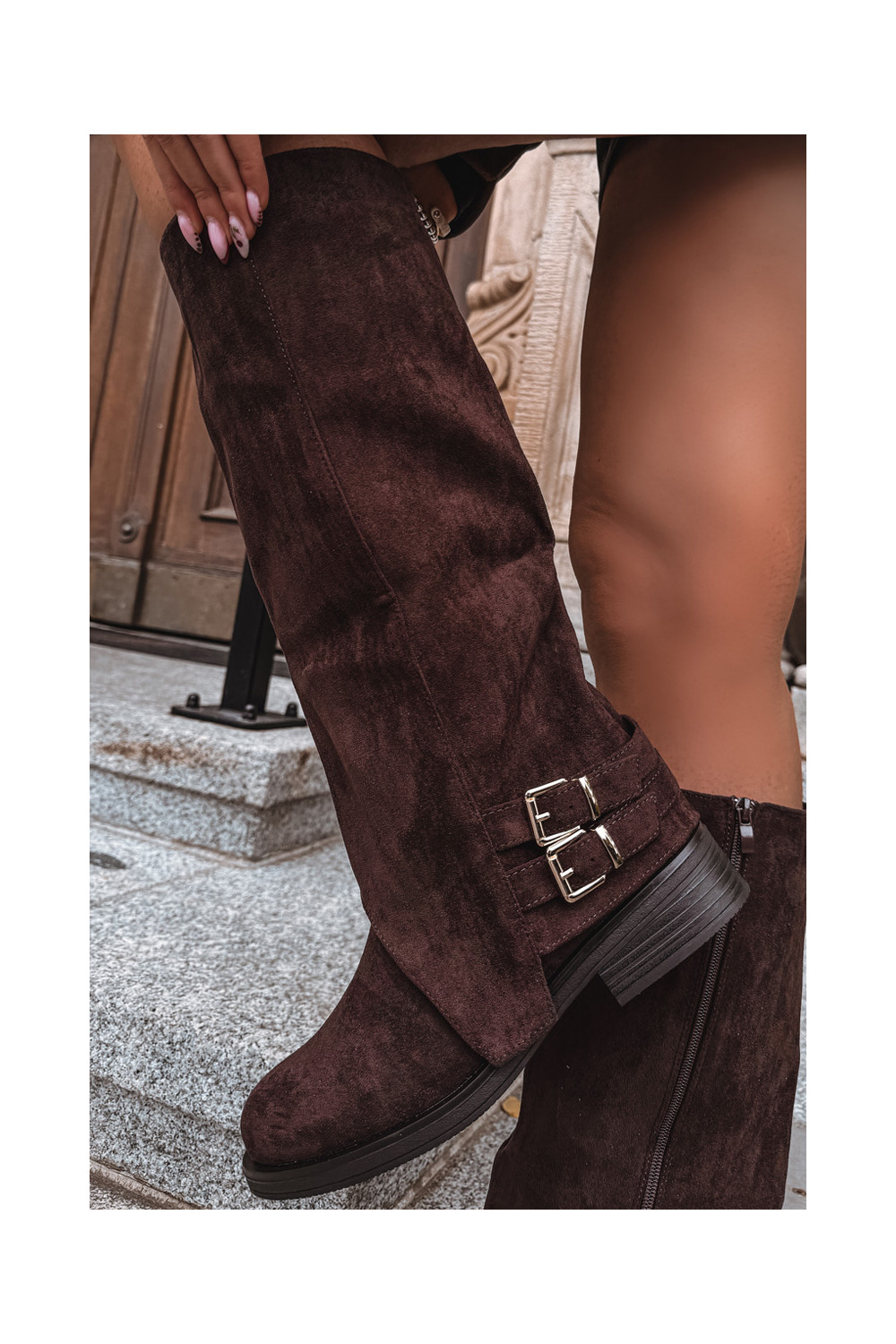 pašiltinti moteriški ilgaauliai batai su sagtimis CzekoladoĮe Umbria