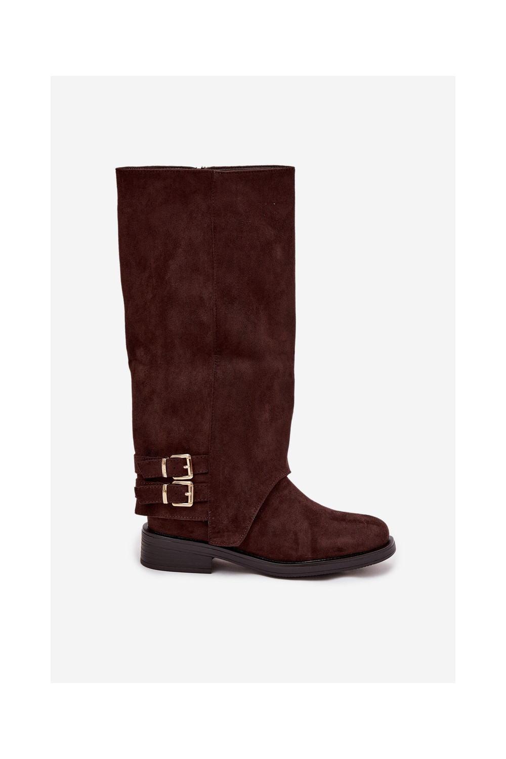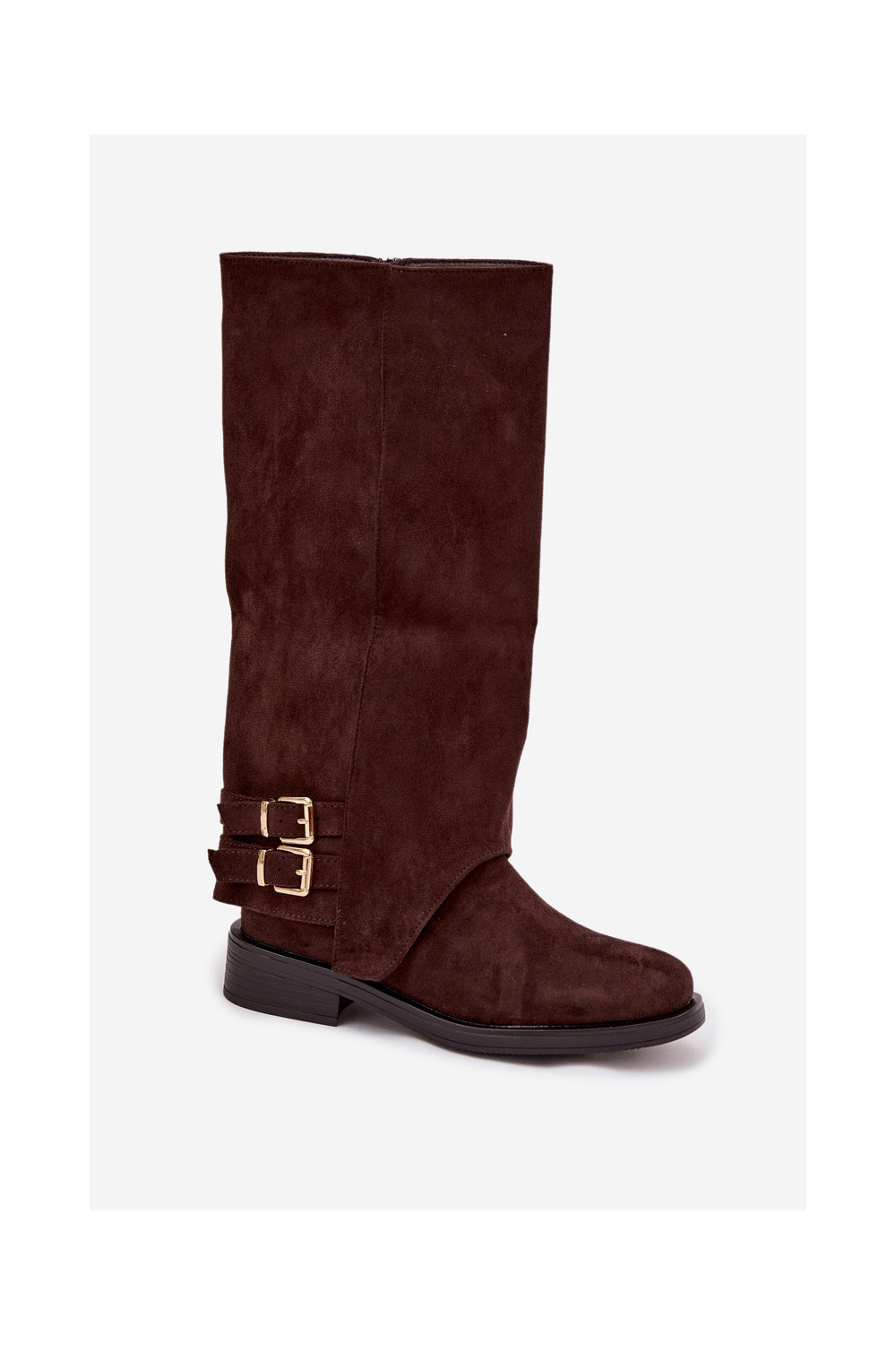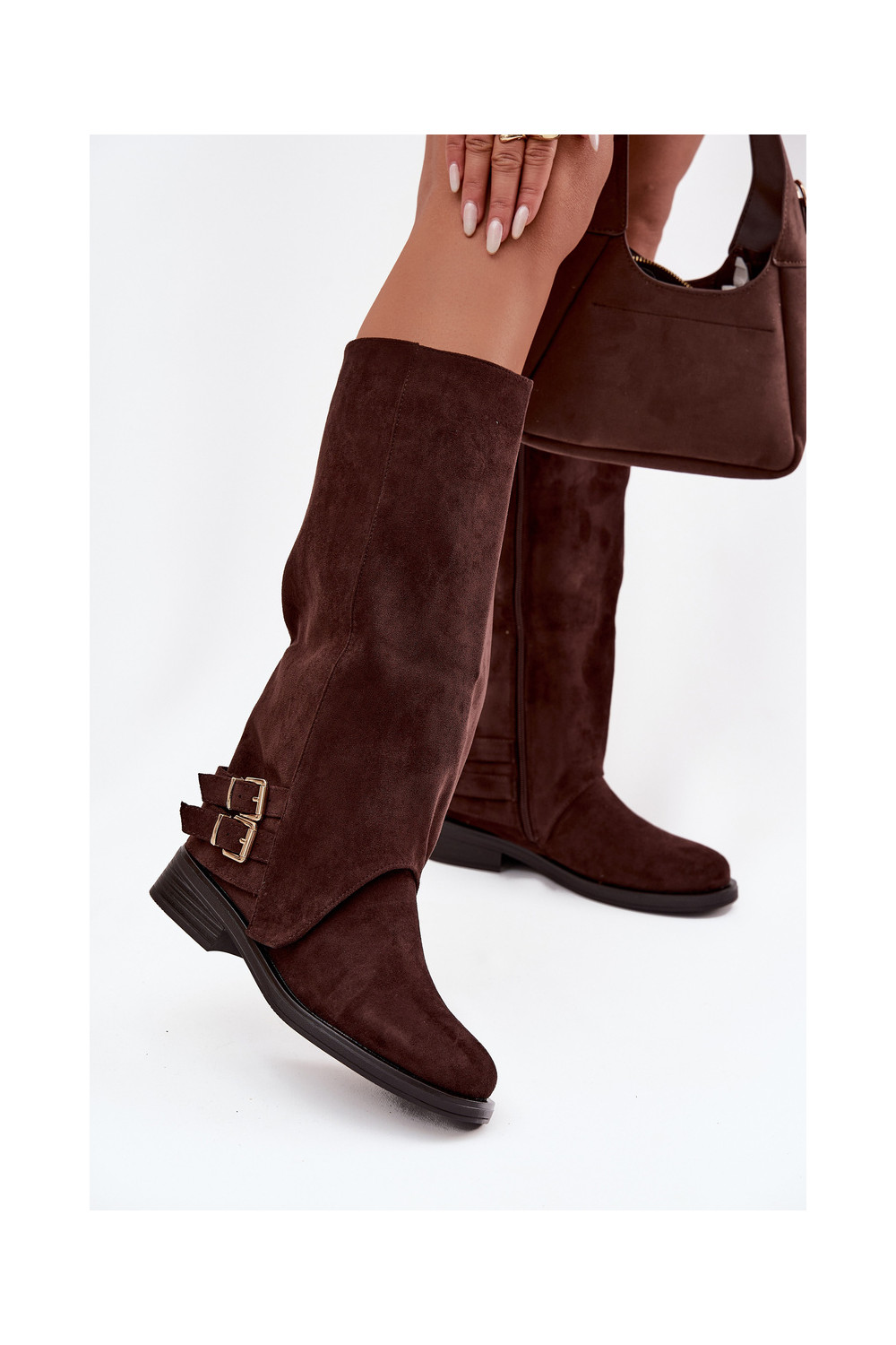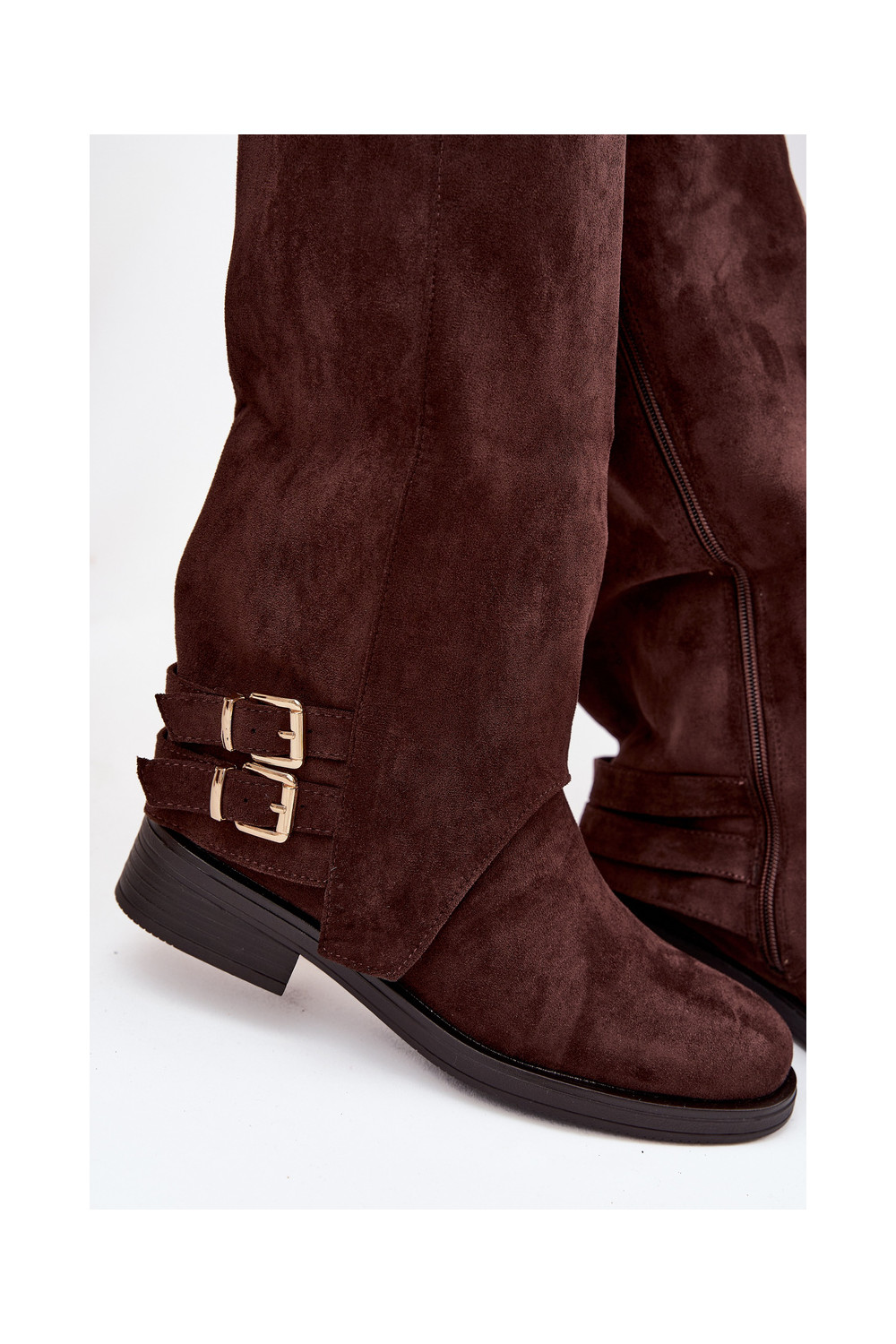 pašiltinti moteriški ilgaauliai batai su sagtimis CzekoladoĮe Umbria