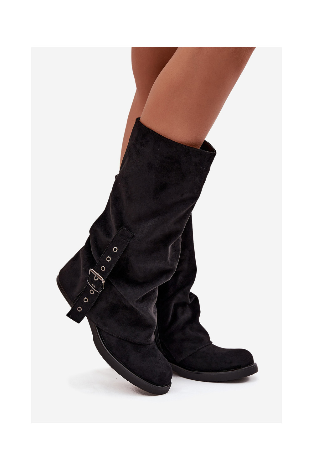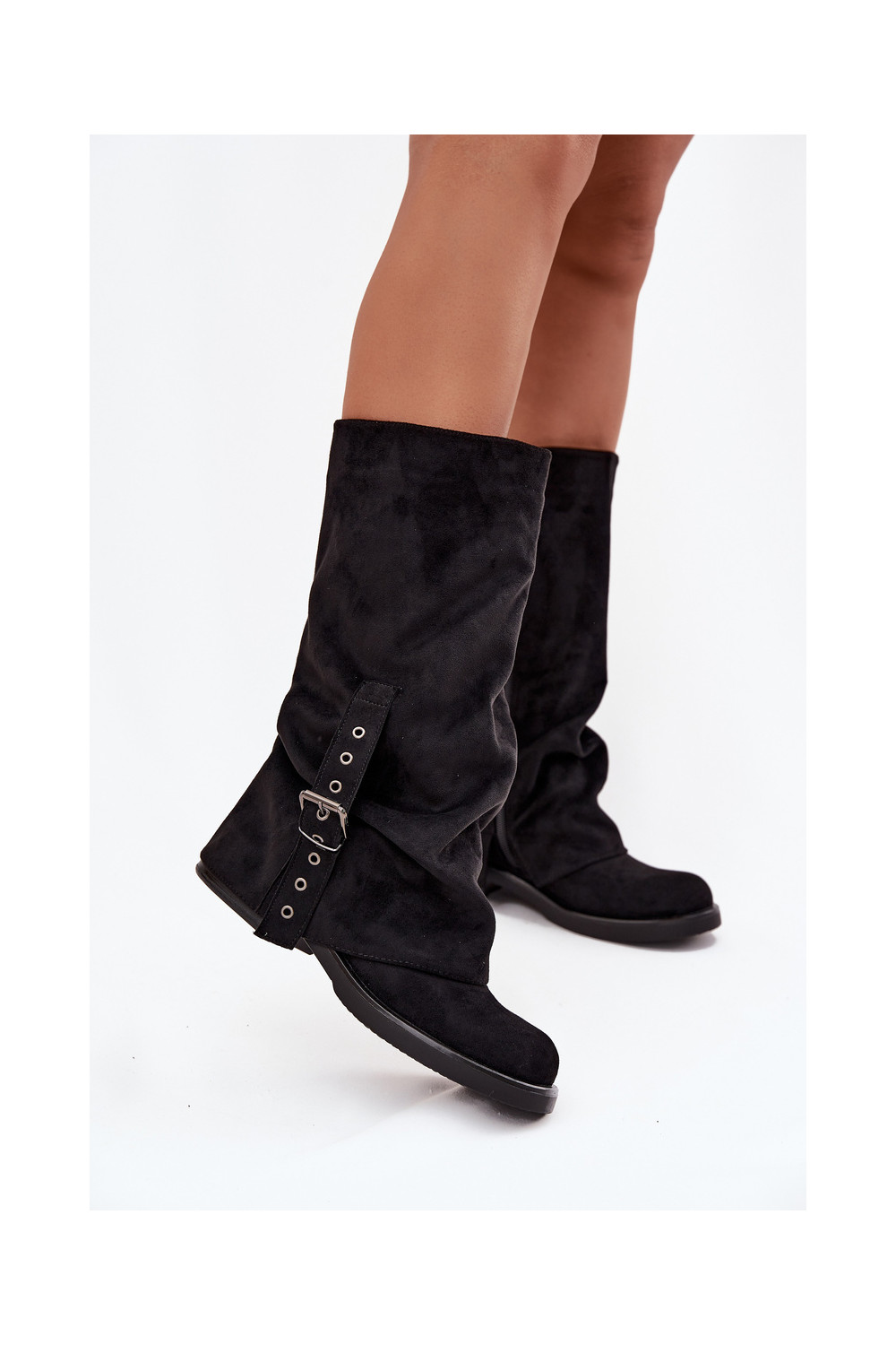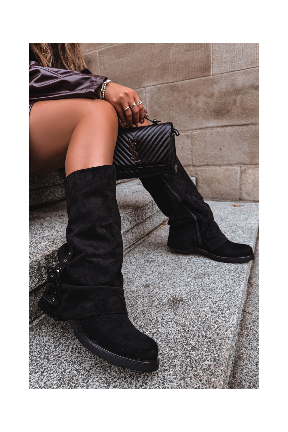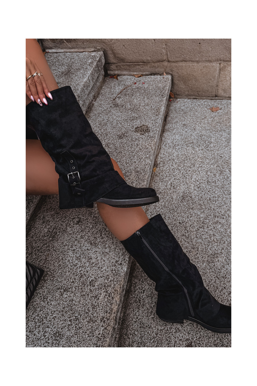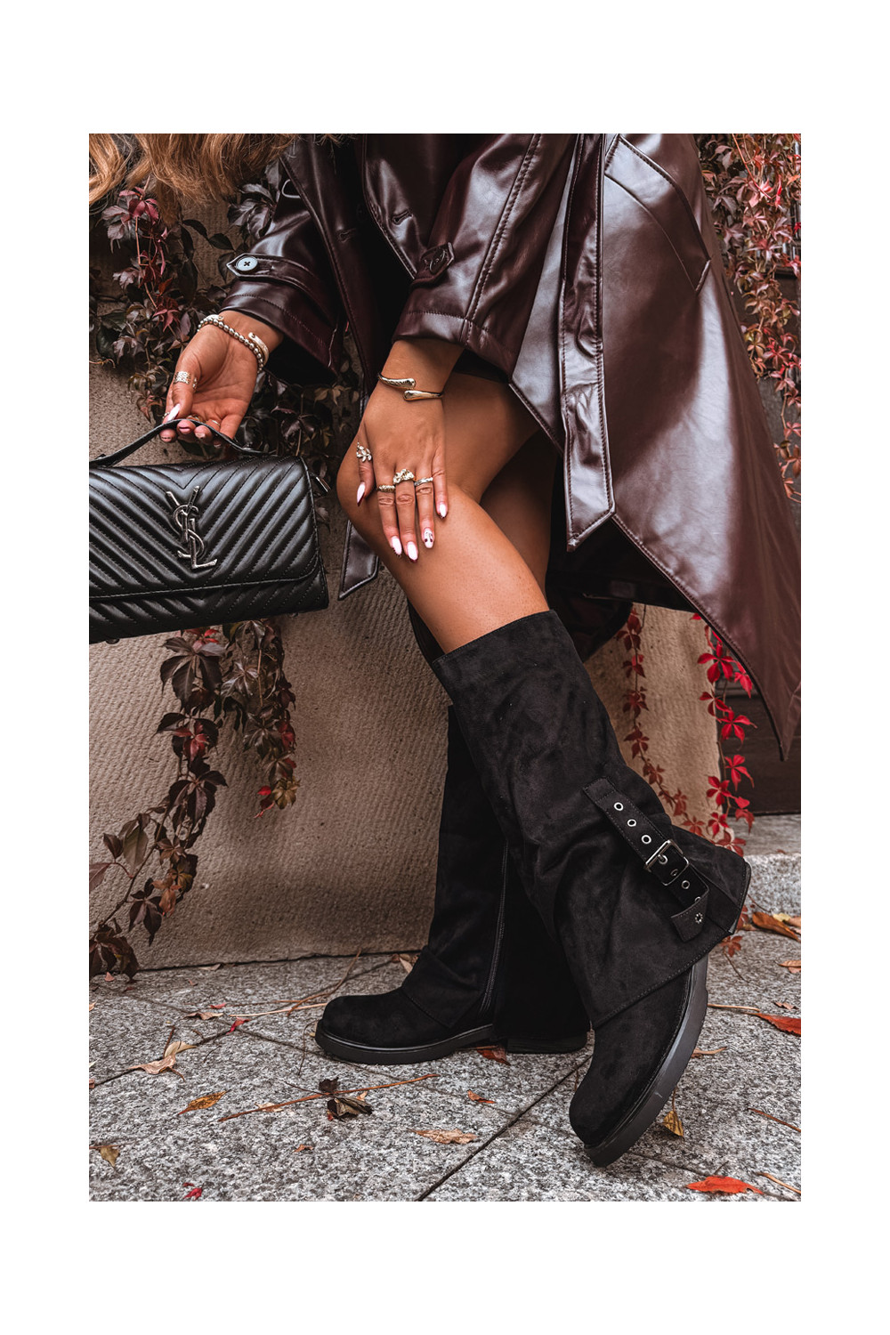 moteriški ilgaauliai batai Su riesta viršutine dalimi I su sagtimis juodos spalvos Ophelis