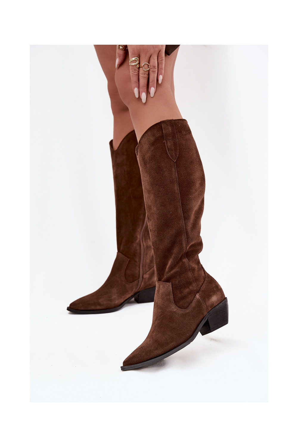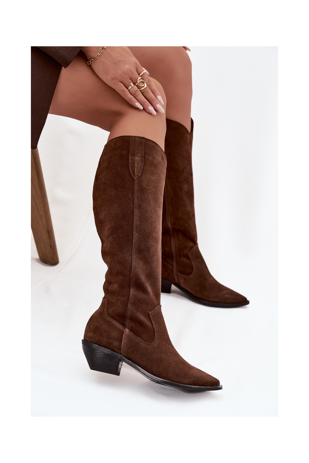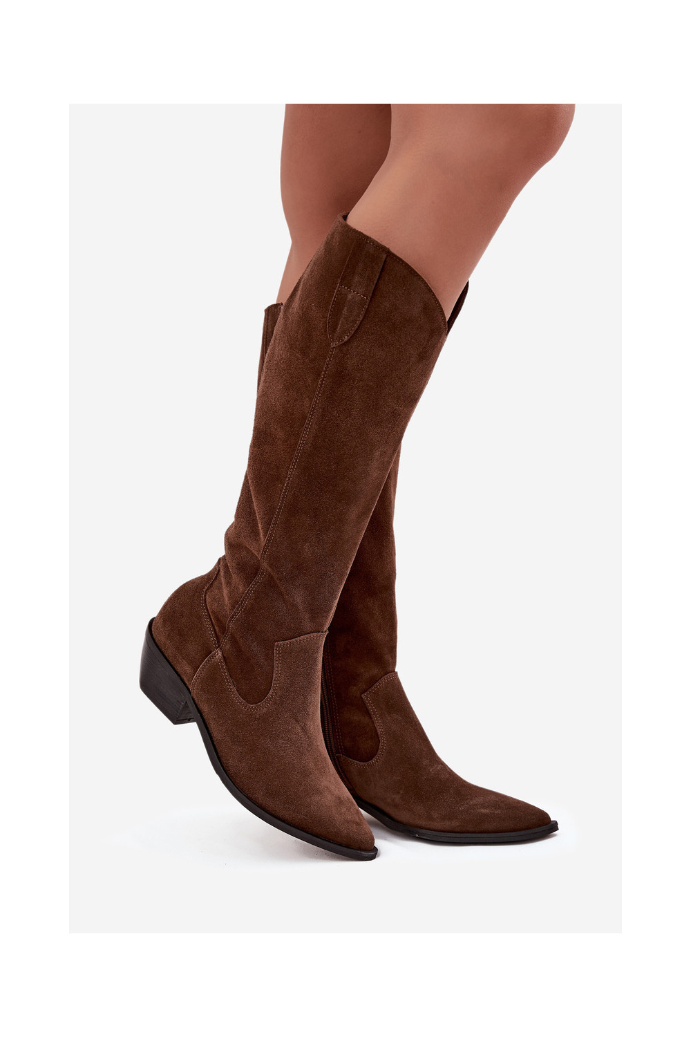 ilgaauliai batai kaubojiško stiliaussuĮjungtaturalnego iš zomšosu pašiltinti Zazoo 4225 rudos spalvos