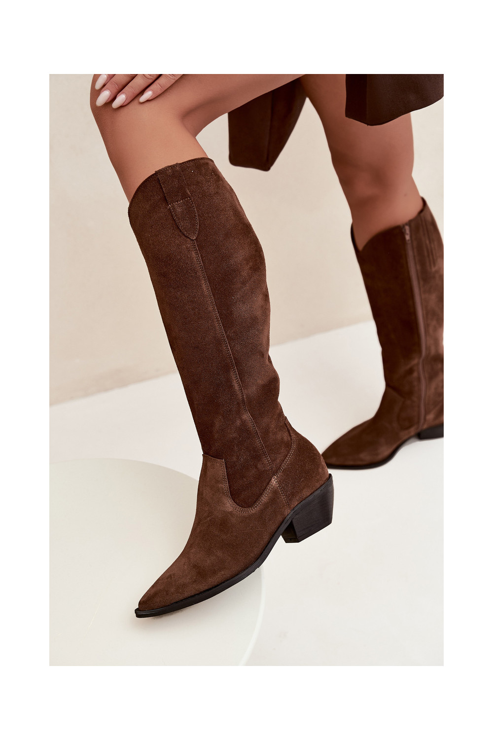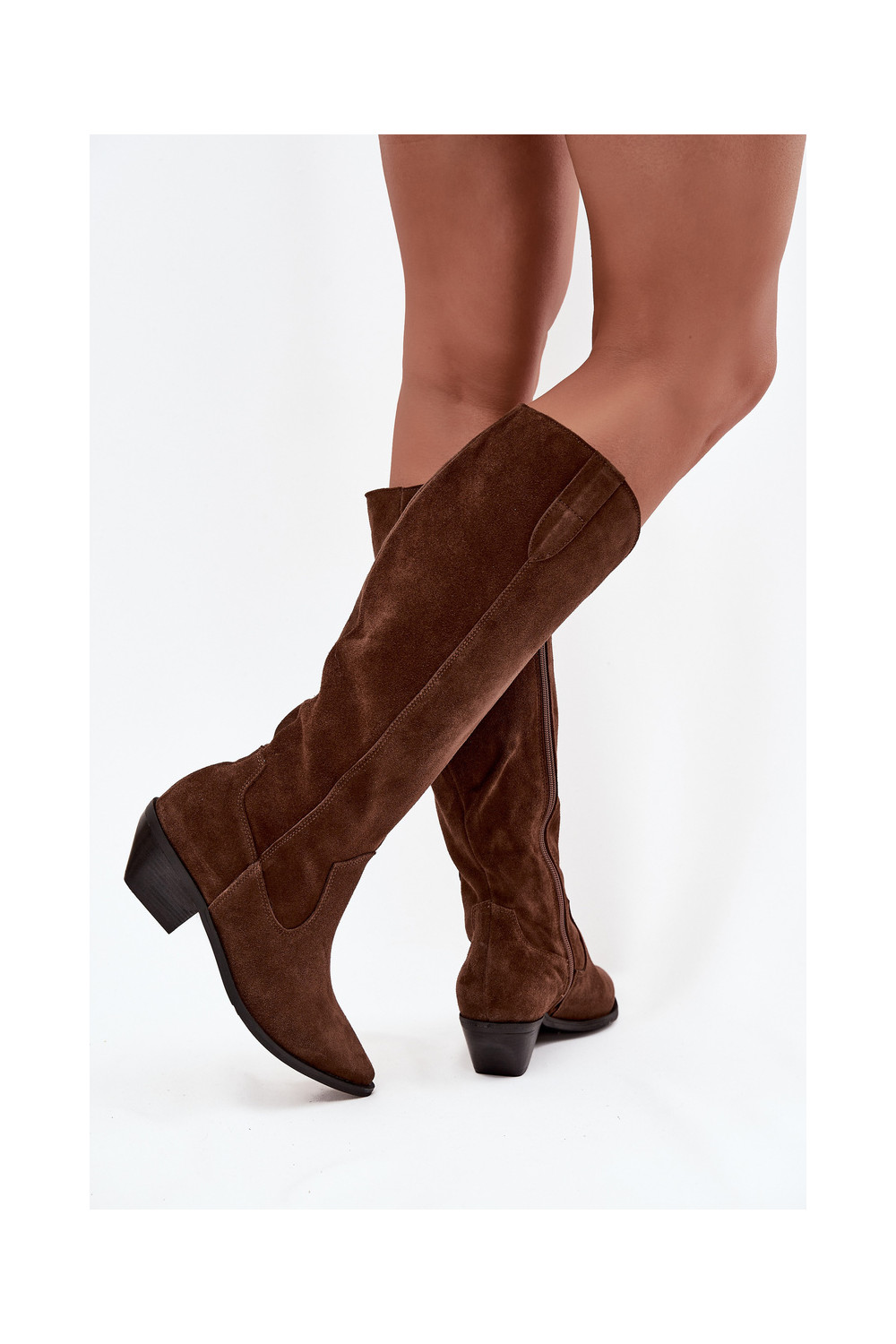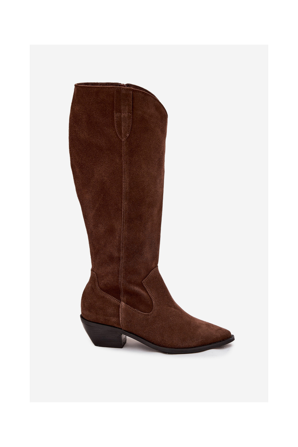 ilgaauliai batai kaubojiško stiliaussuĮjungtaturalnego iš zomšosu pašiltinti Zazoo 4225 rudos spalvos