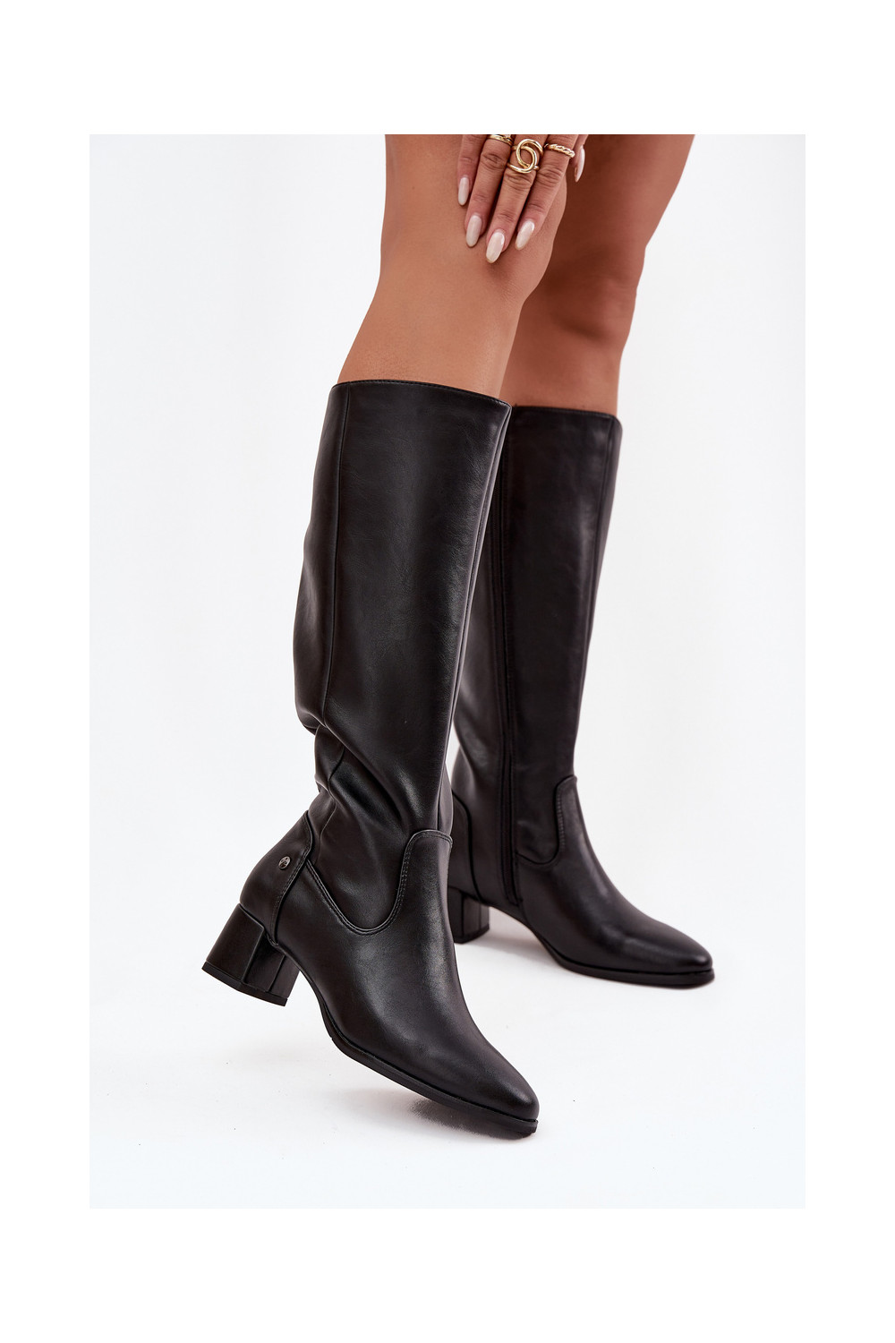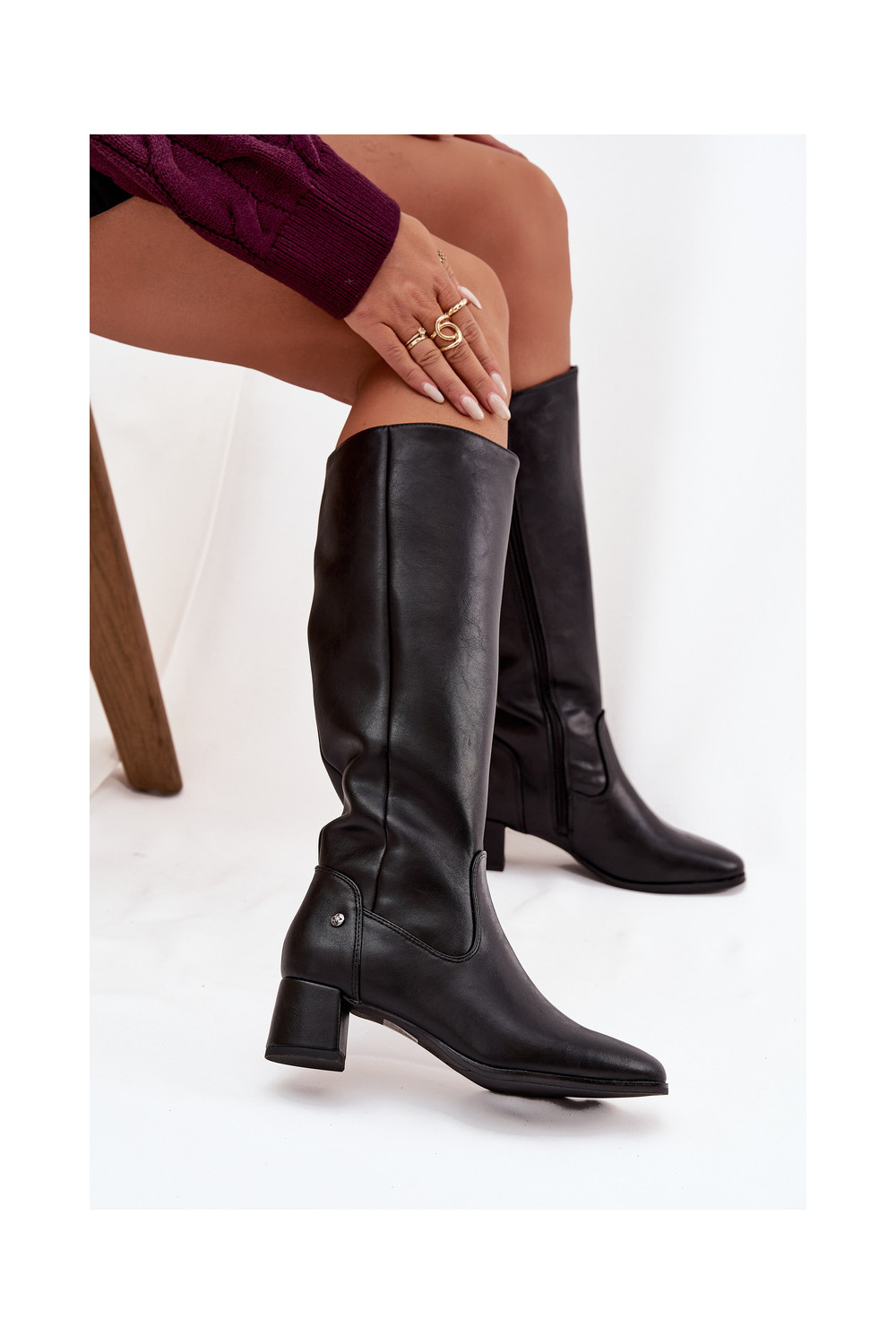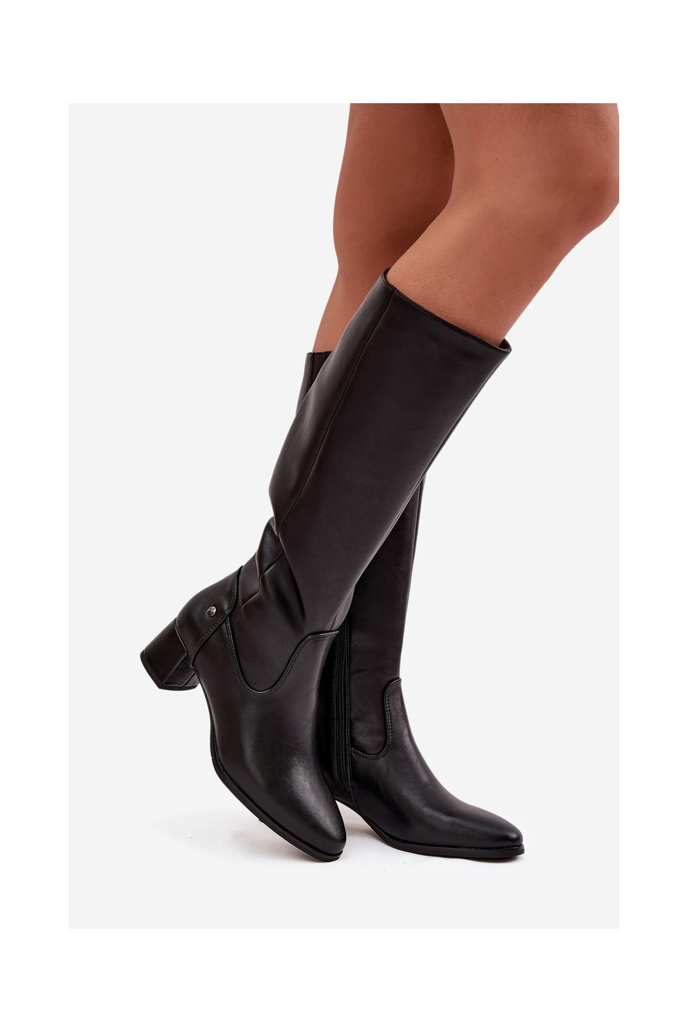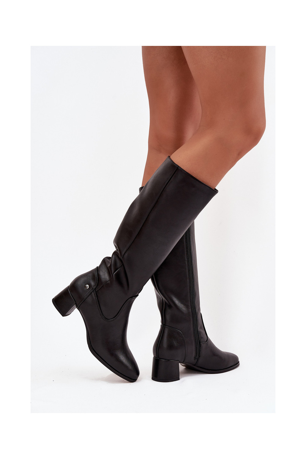 Oda pašiltinti moteriški ilgaauliai batai su kulniukais Tai turiciejka A7165-01 juodos spalvos