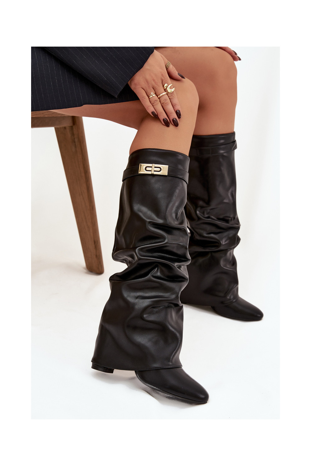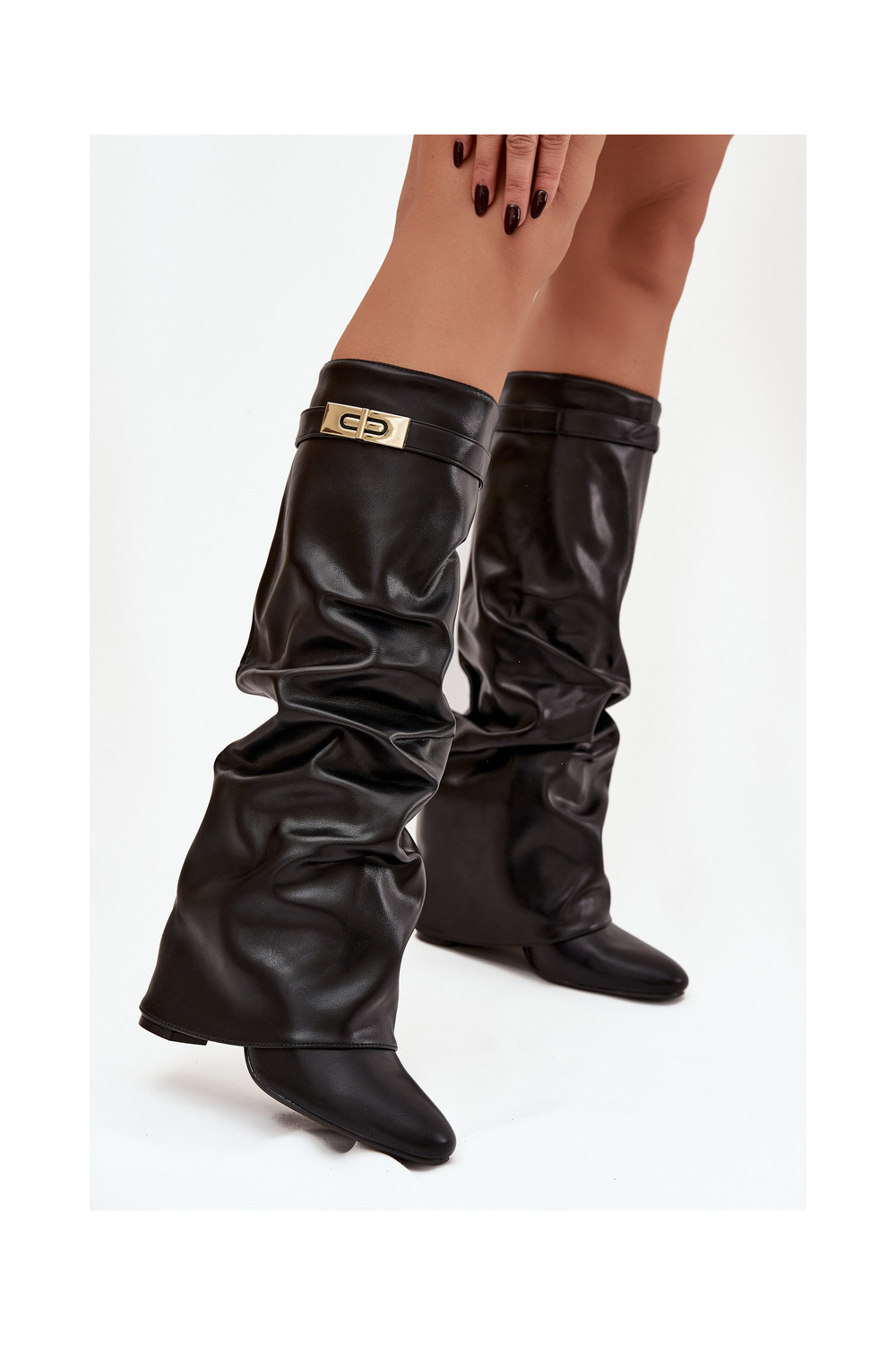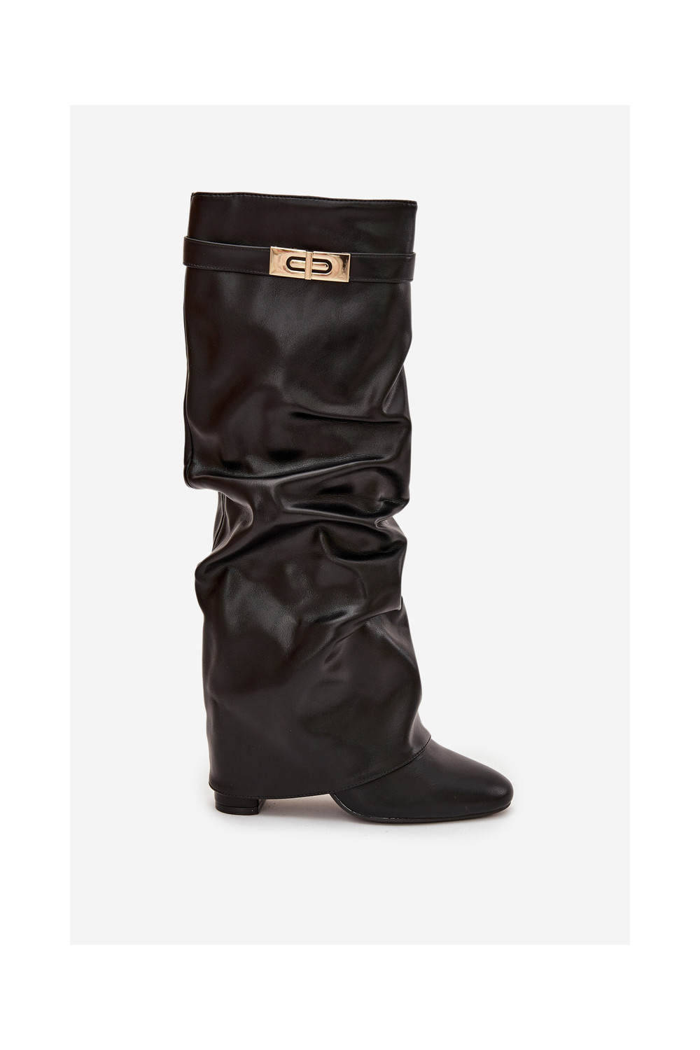 moteriški ilgaauliai batai su kulniukais Z Marszczoną Wywiniętą Cholewką Juodos spalvos Glorine