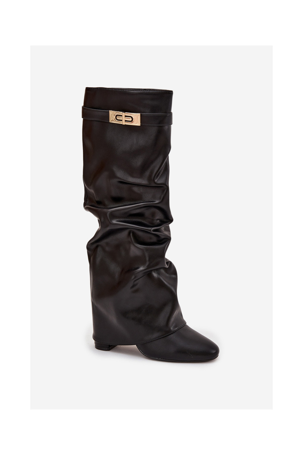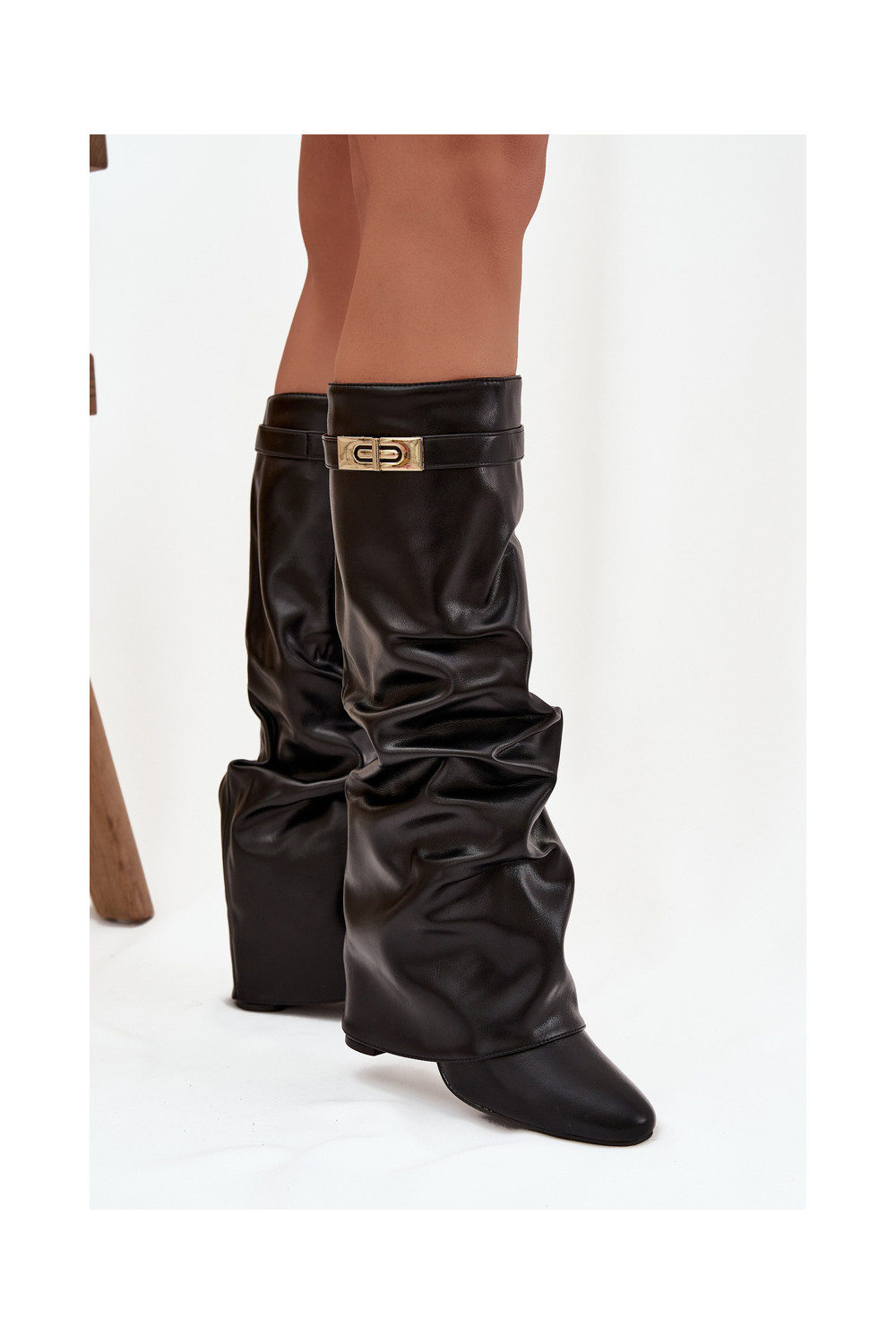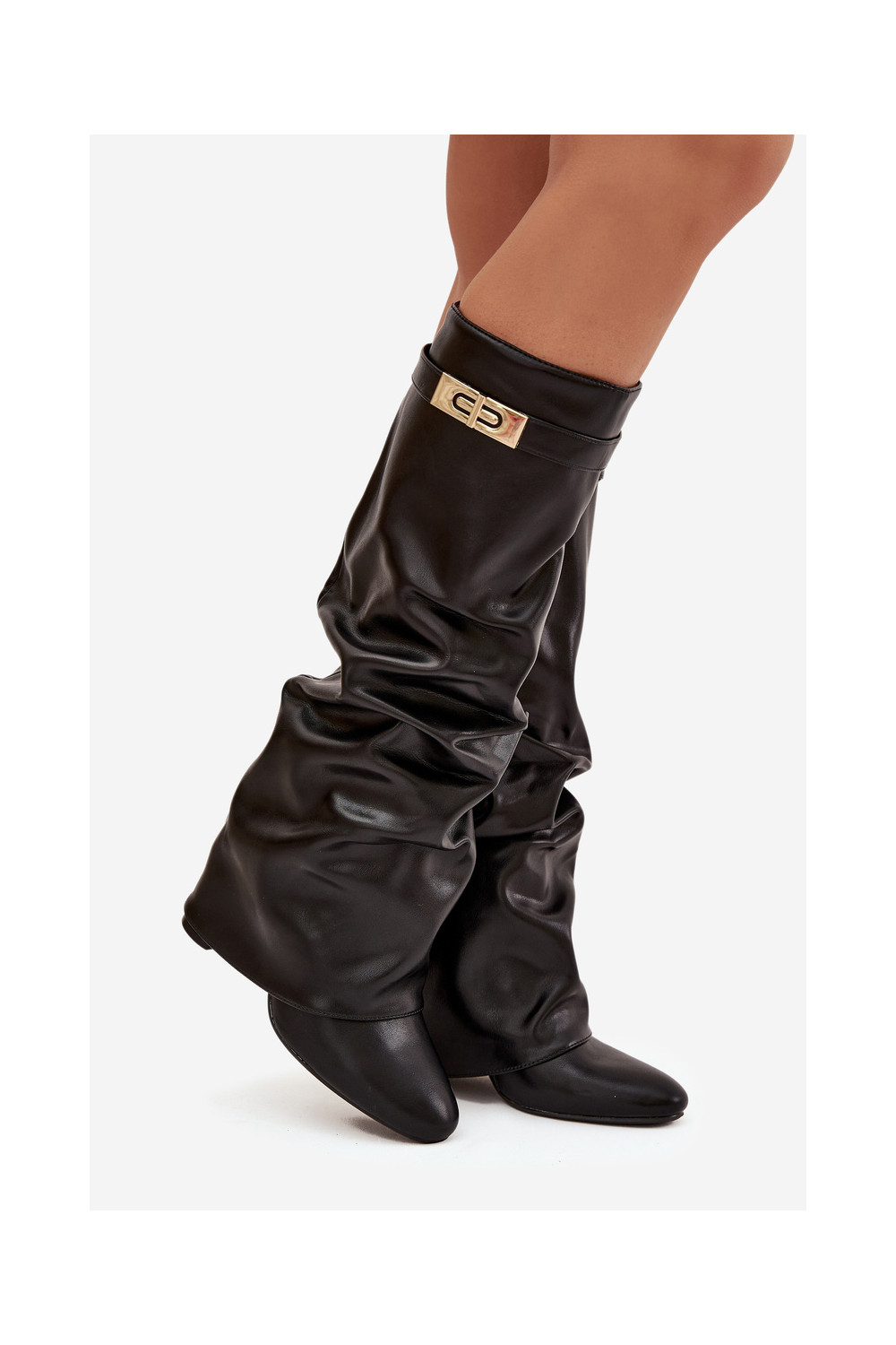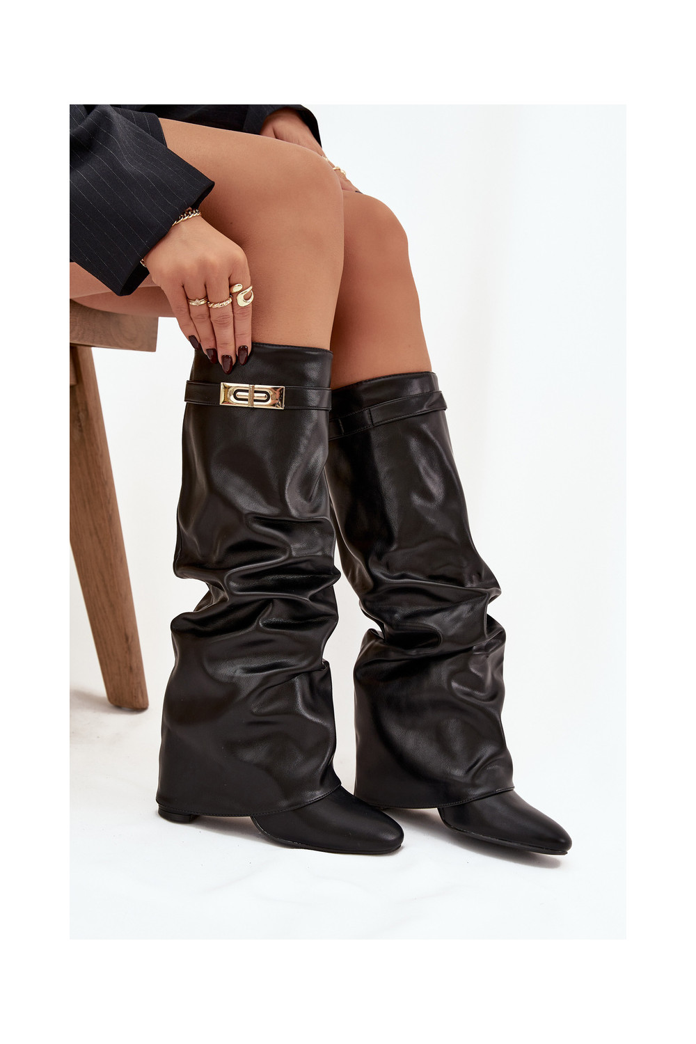 moteriški ilgaauliai batai su kulniukais Z Marszczoną Wywiniętą Cholewką Juodos spalvos Glorine