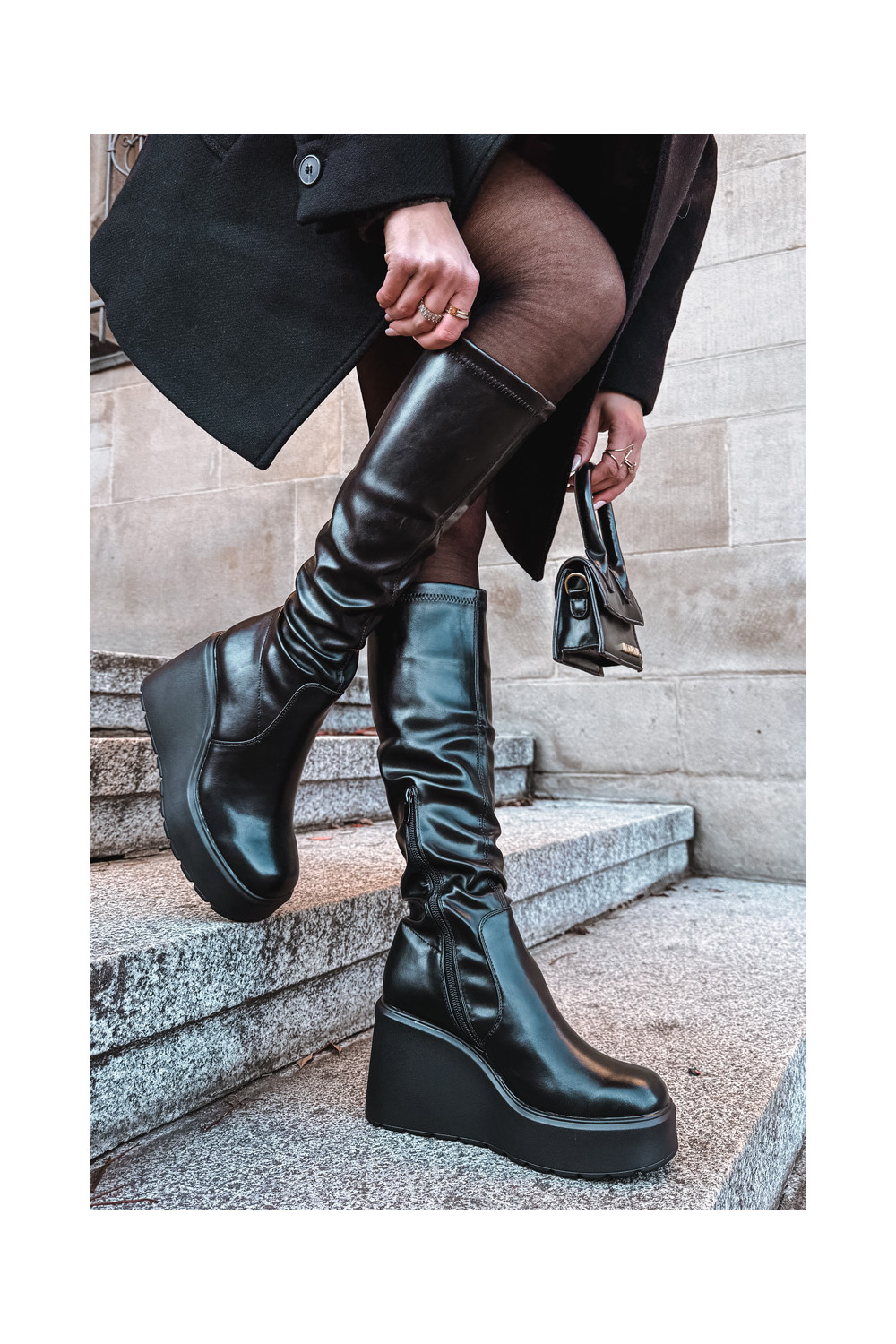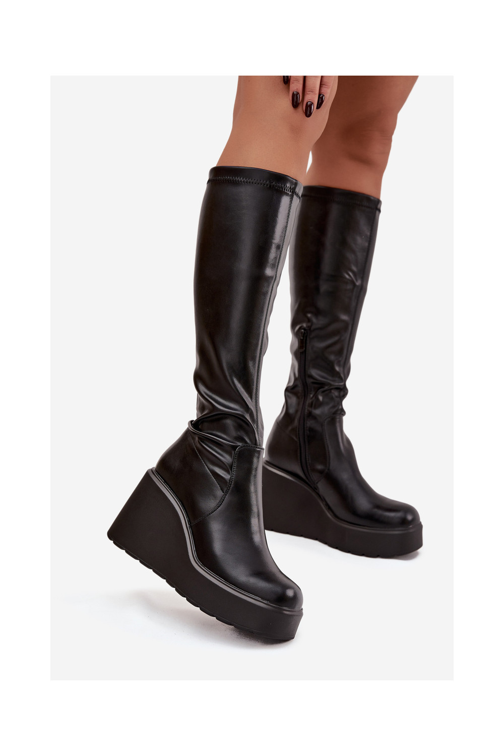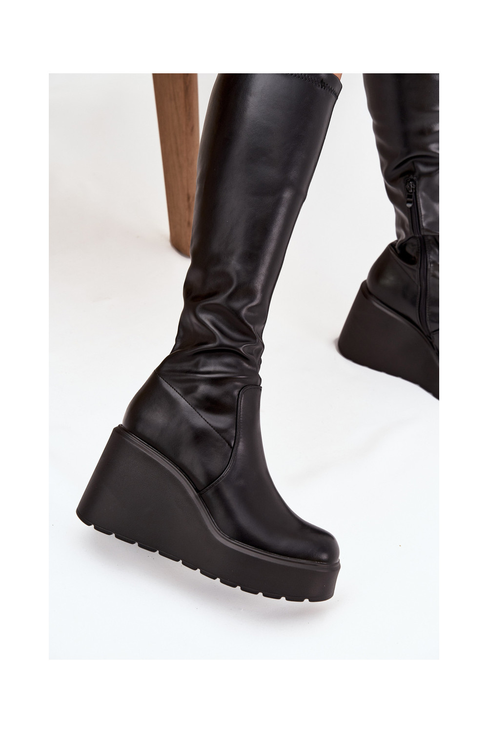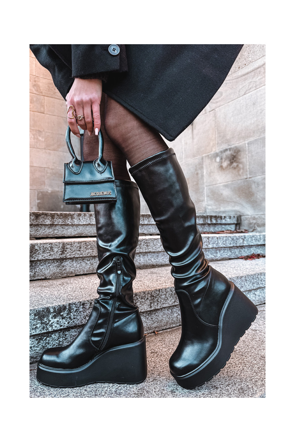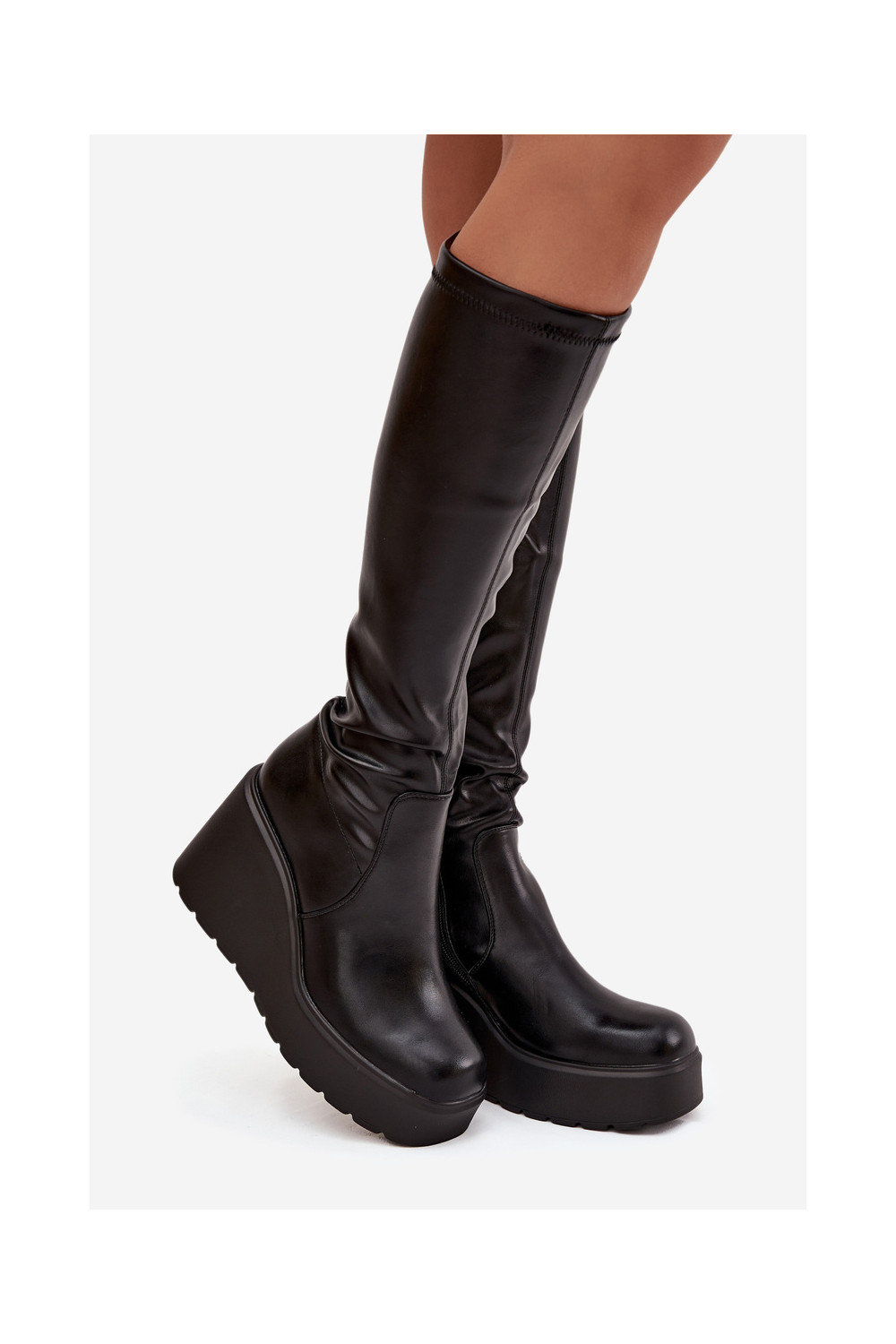 Moteriški ilgaauliai batai ant platformos juodos spalvos "Terisse"
