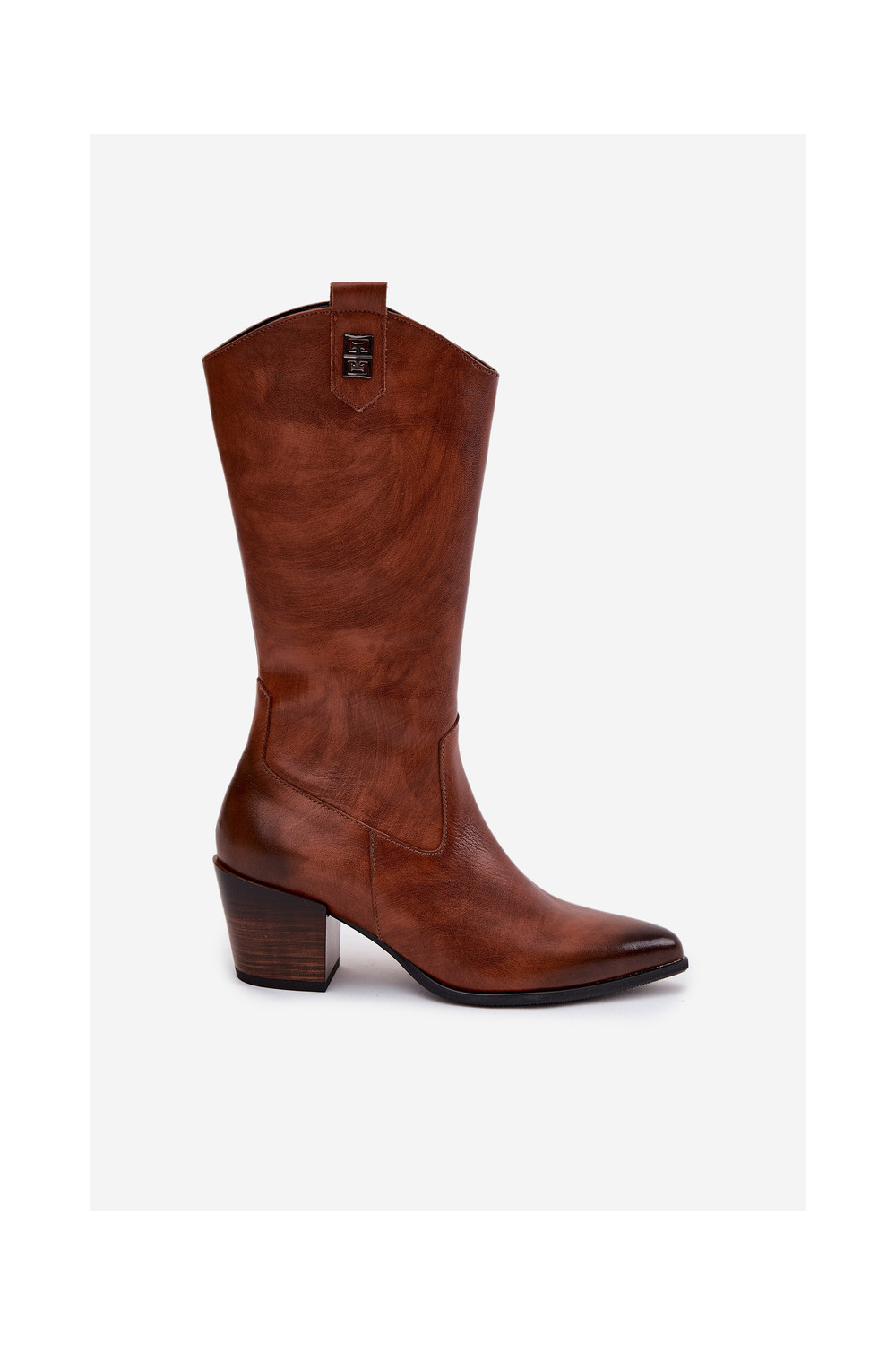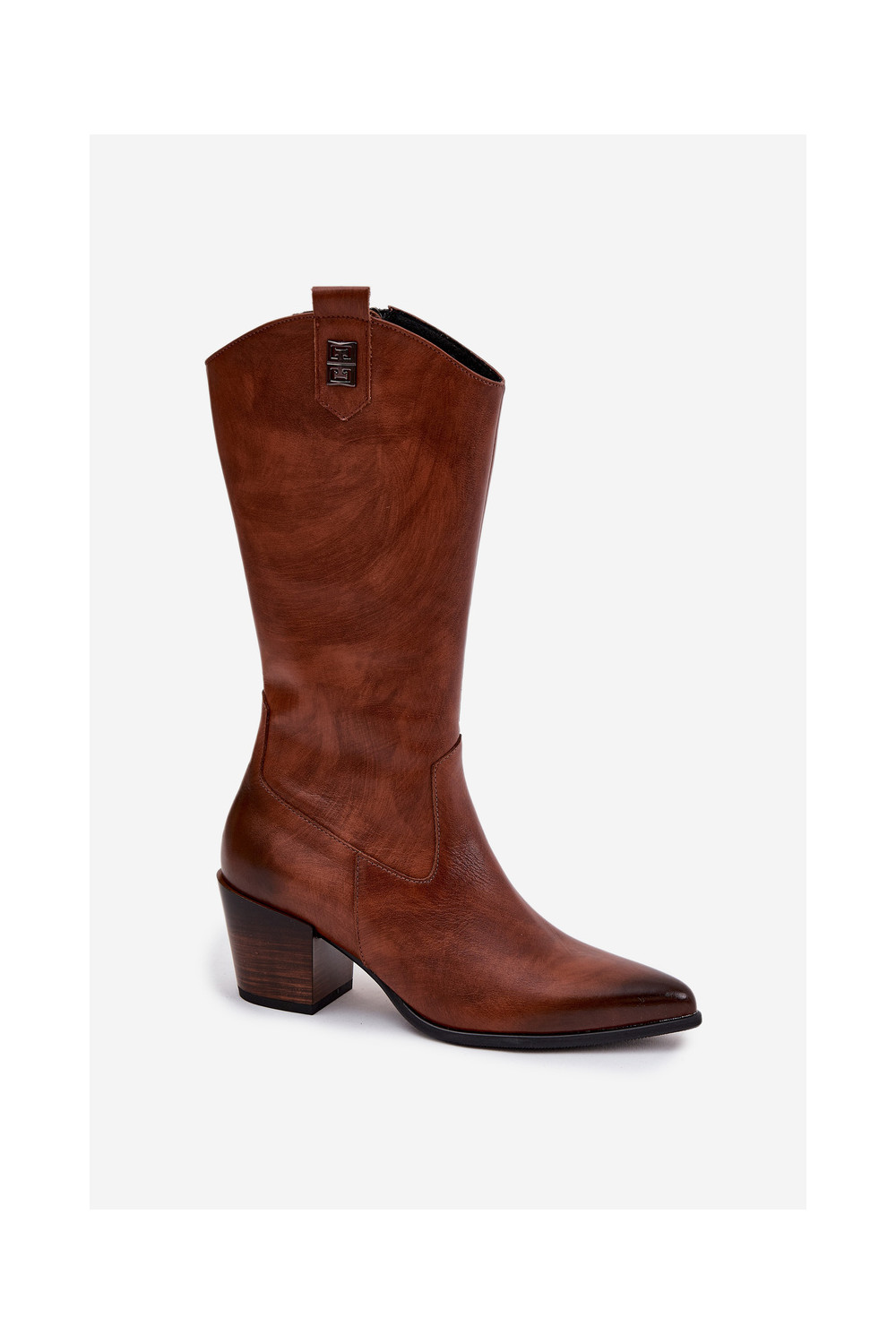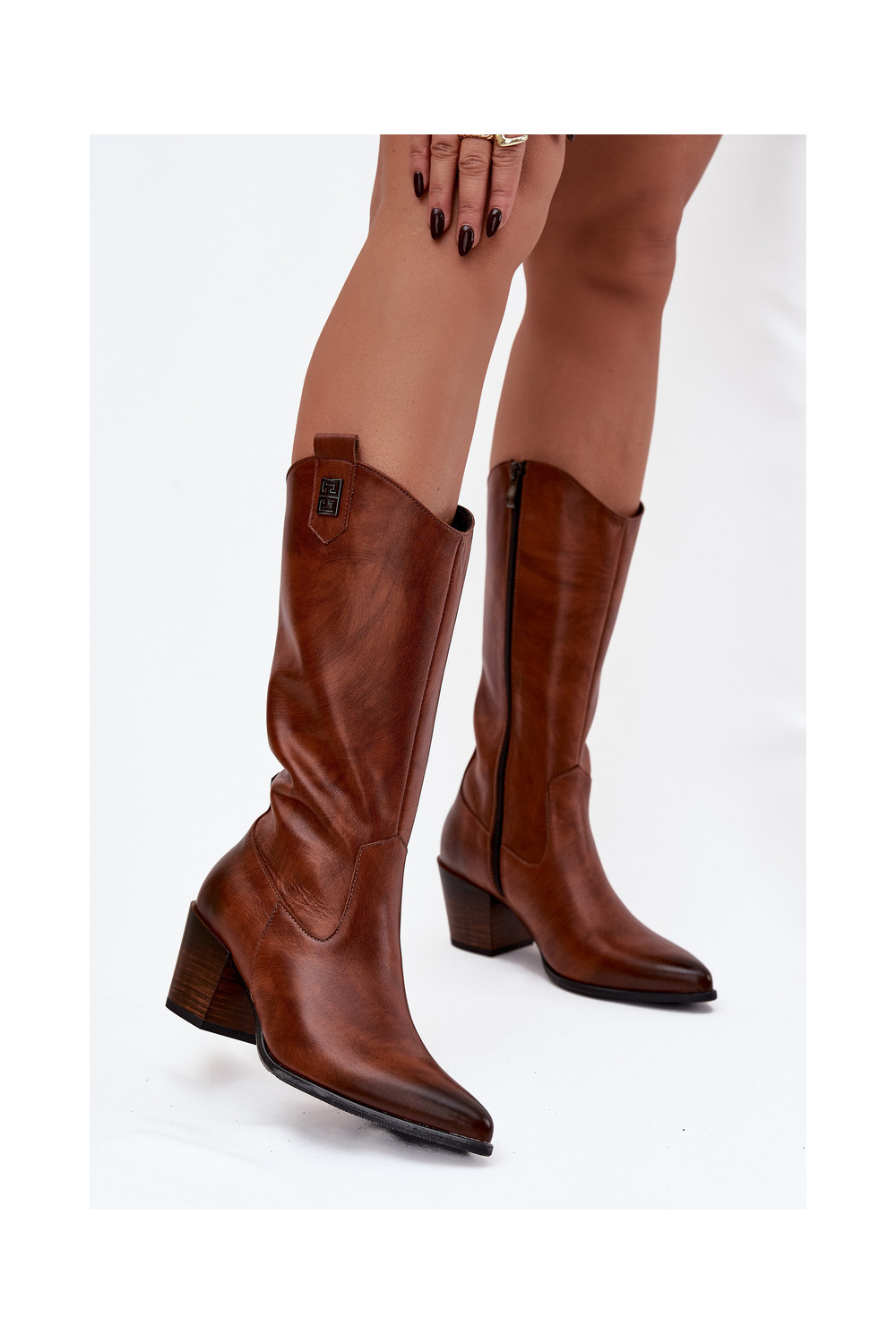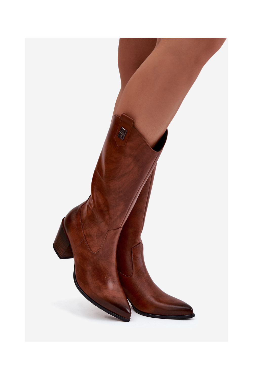 Oda ilgaauliai batai kaubojiško stiliaus su kulniukais pašiltinti Zazoo 70155 rudos spalvos