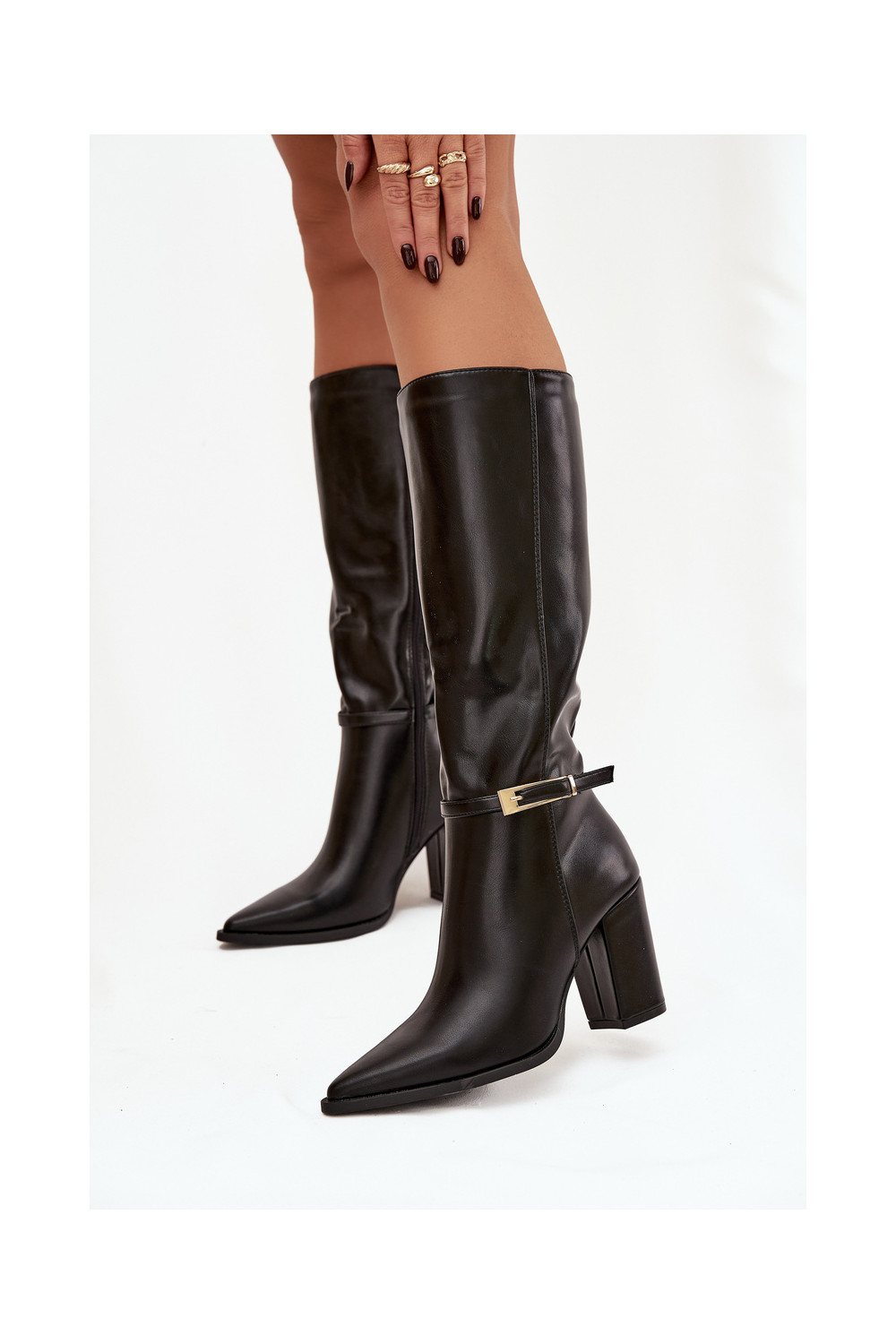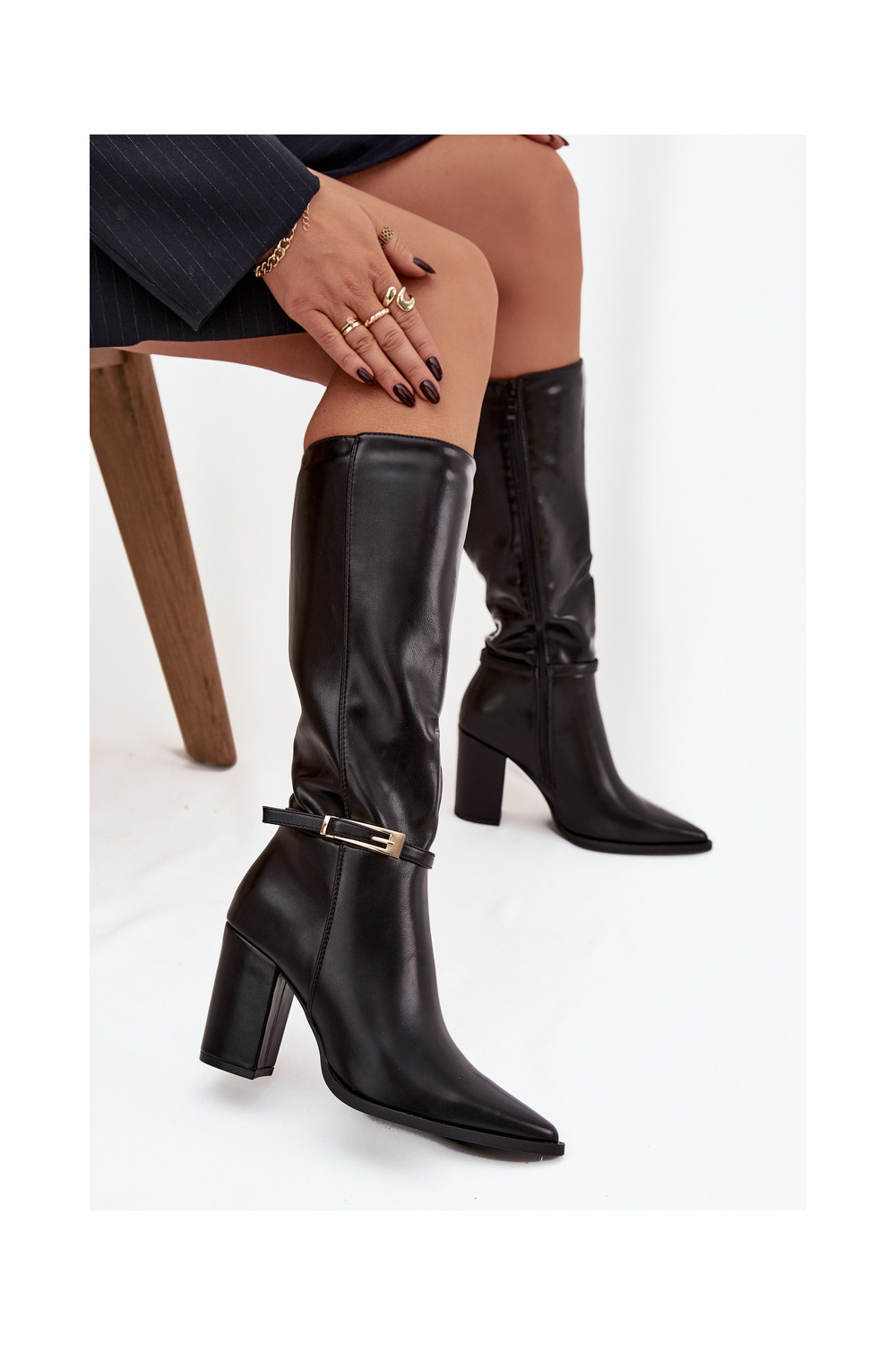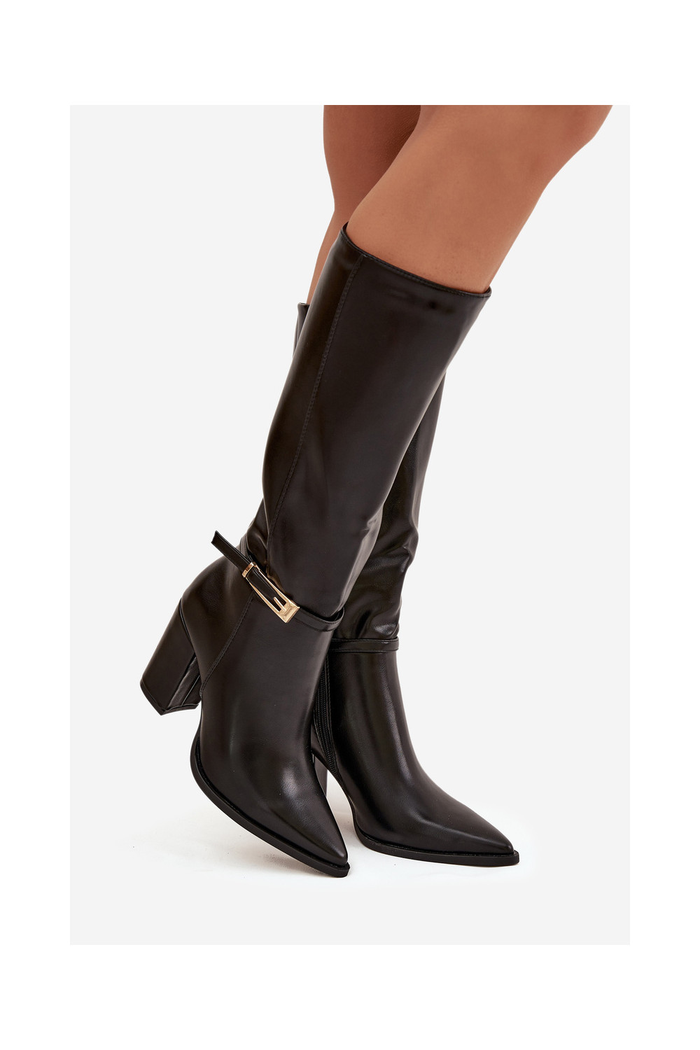moteriški ilgaauliai batai su kulniukais su sagtimis pašiltinti Juodos spalvos Cirella