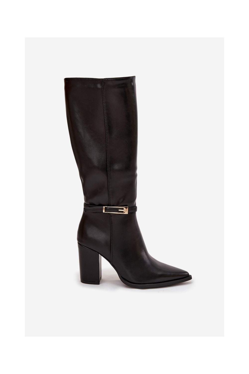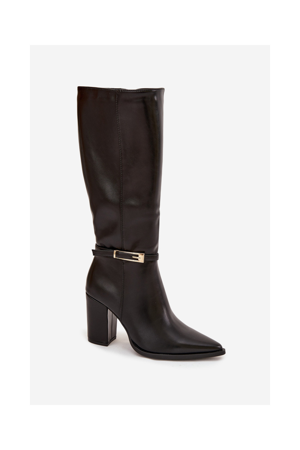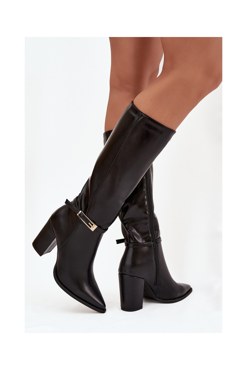 moteriški ilgaauliai batai su kulniukais su sagtimis pašiltinti Juodos spalvos Cirella