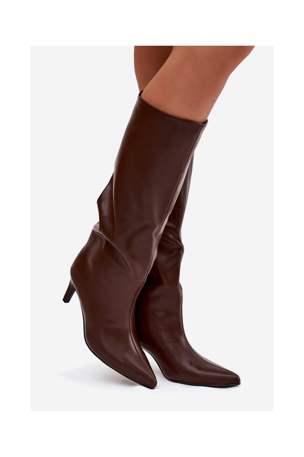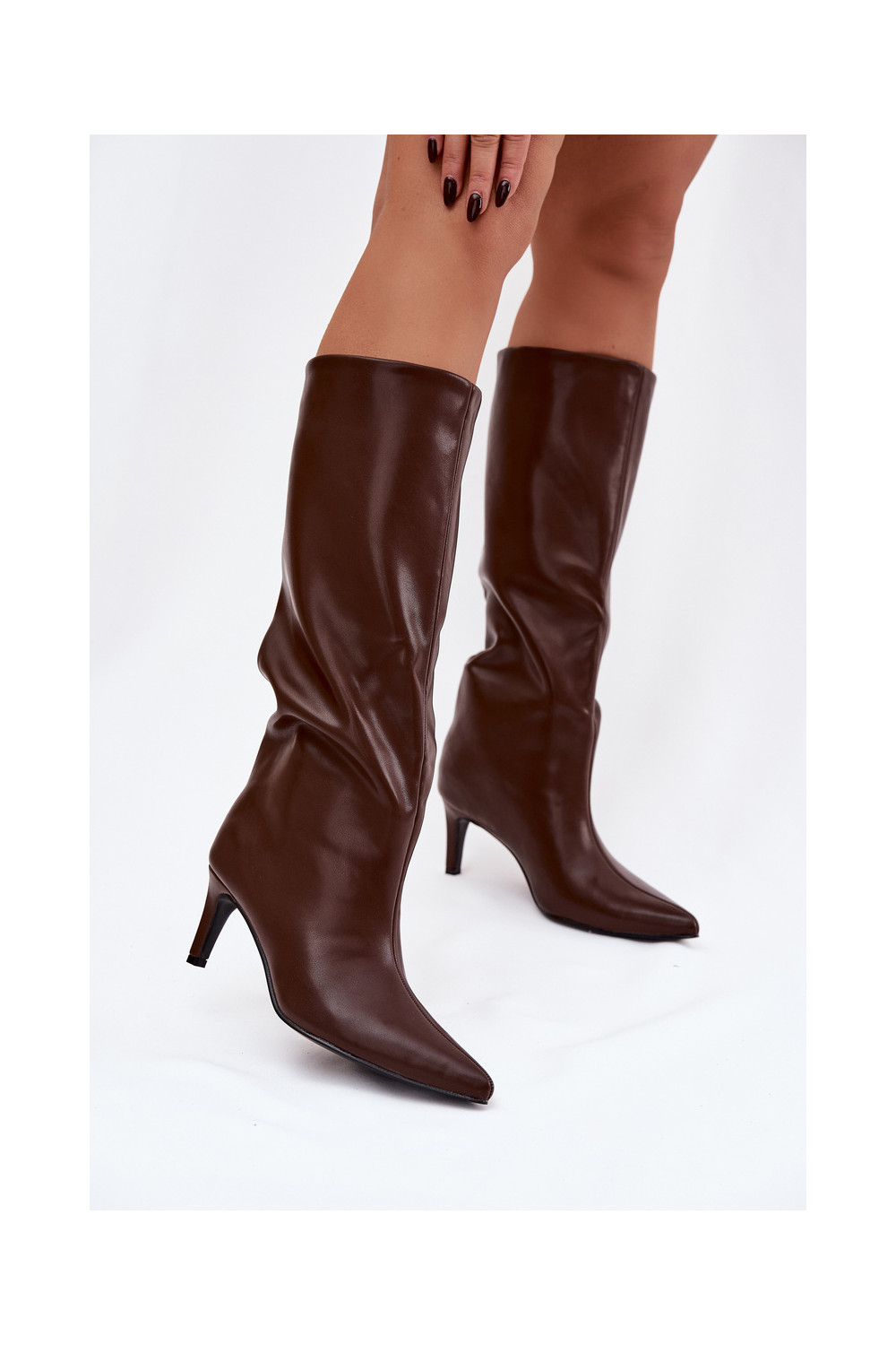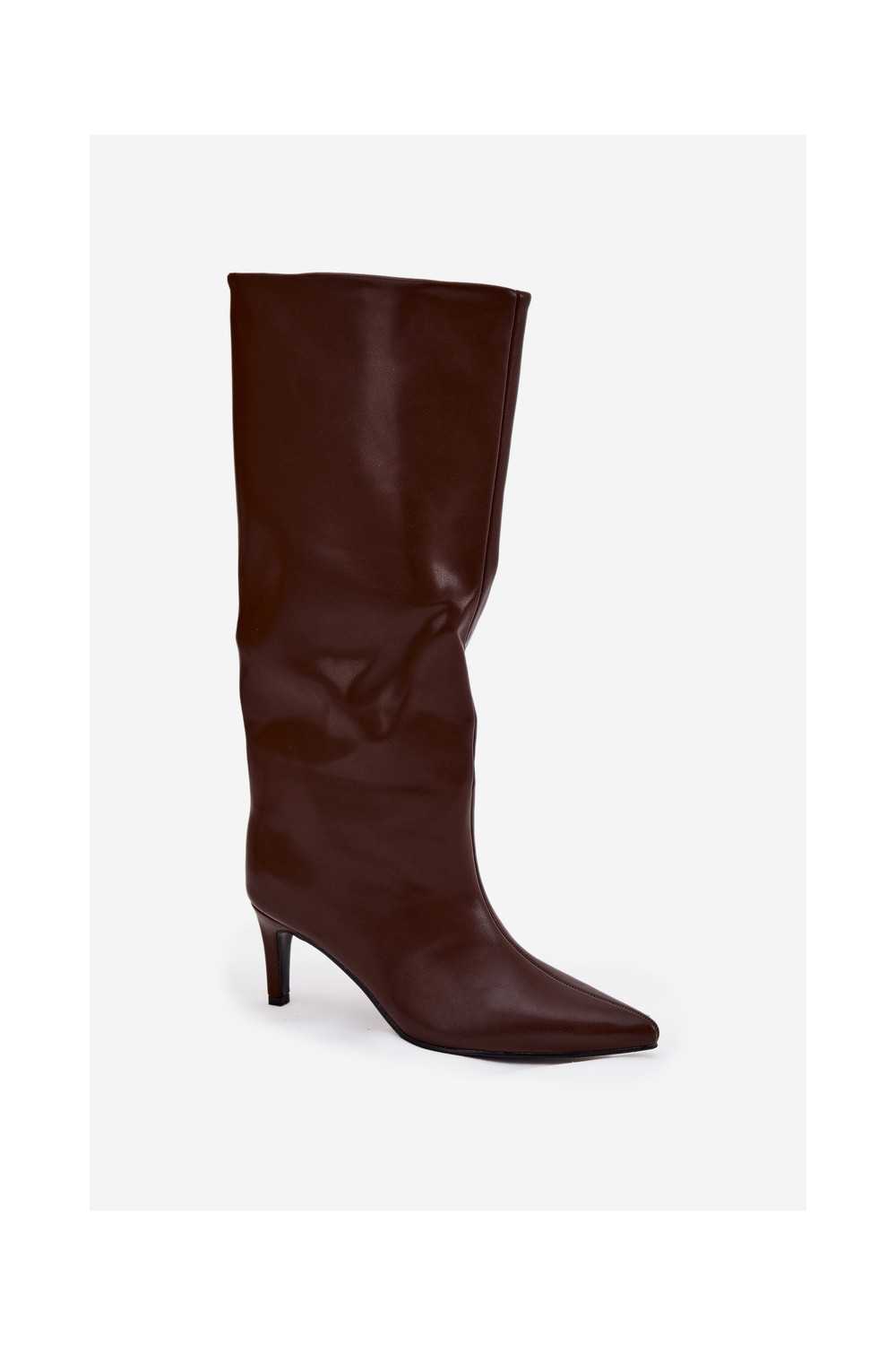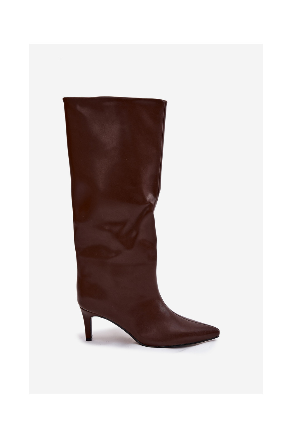 moteriški ilgaauliai batai Įsispiriamo modelio pašiltinti su plonais kulniukais rudos spalvos Olivienne