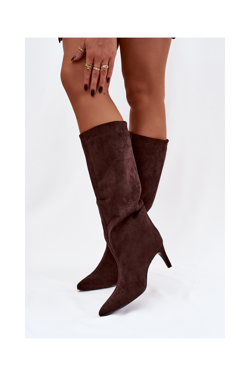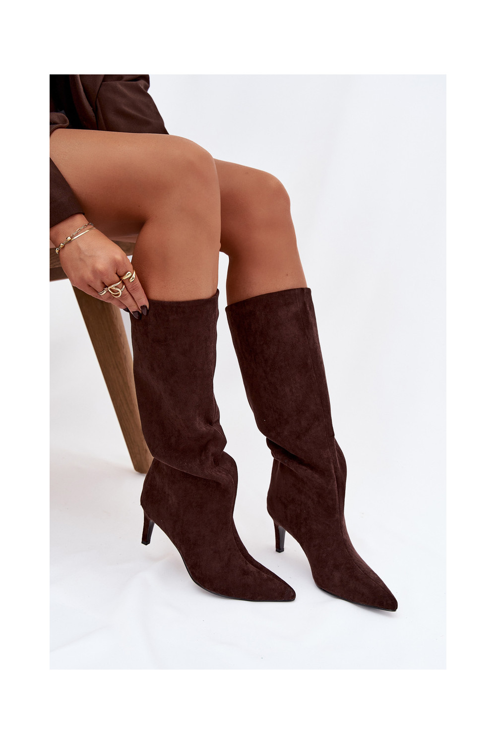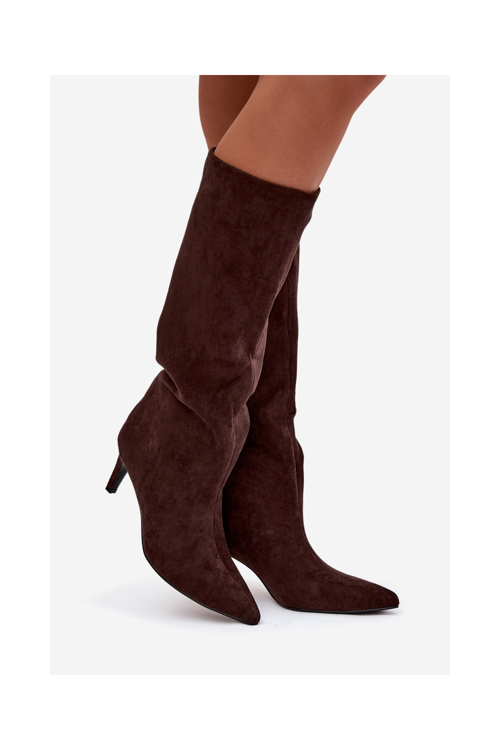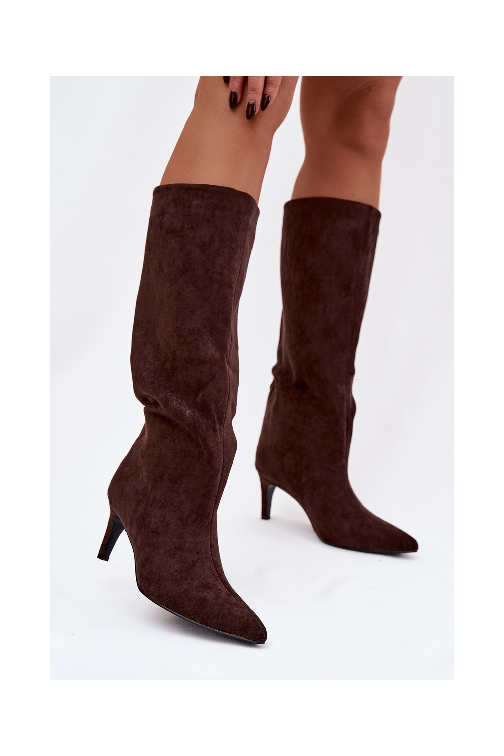 moteriški ilgaauliai batai Įsispiriamo modelio pašiltinti su plonais kulniukais CzekoladoĮe Olivienne