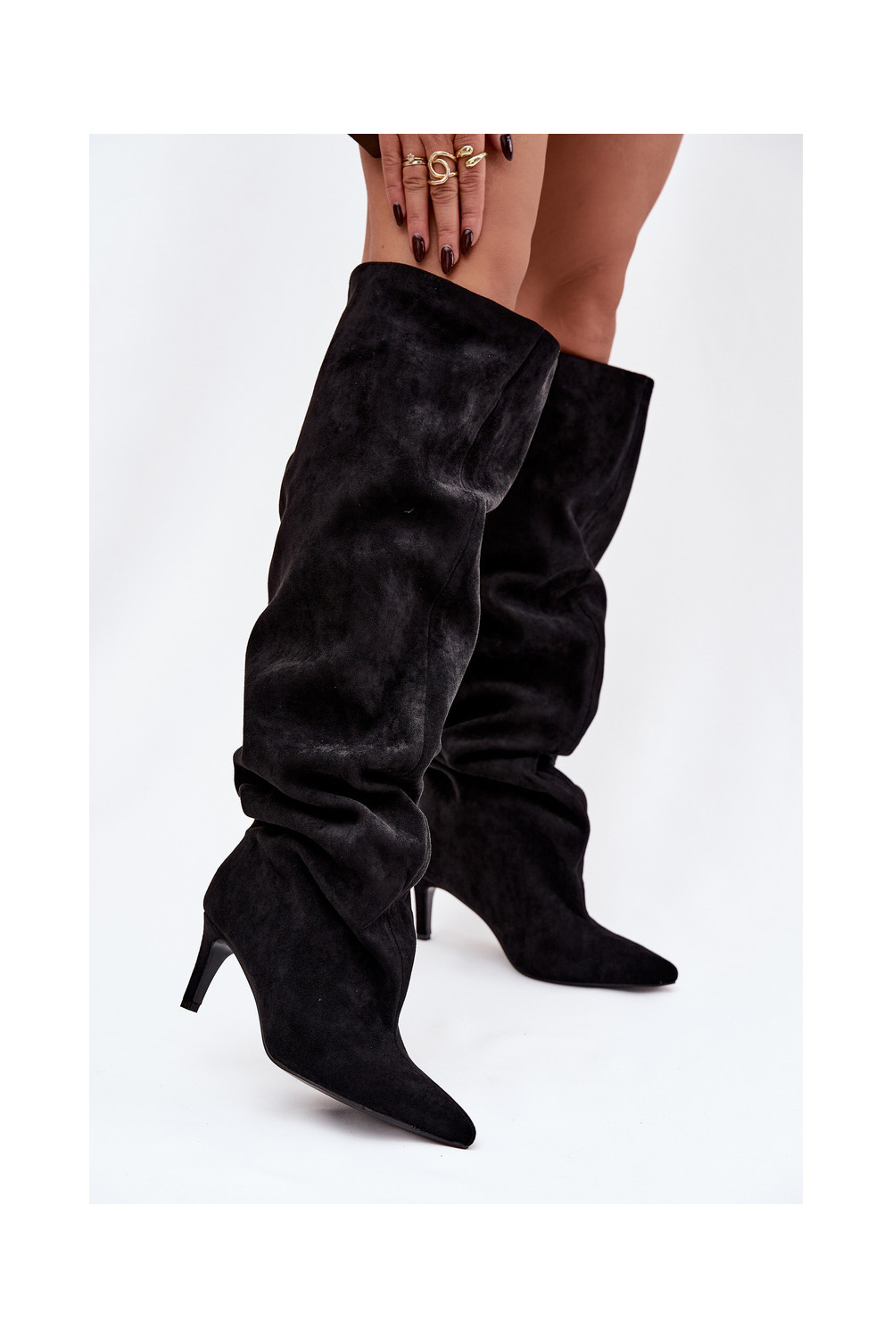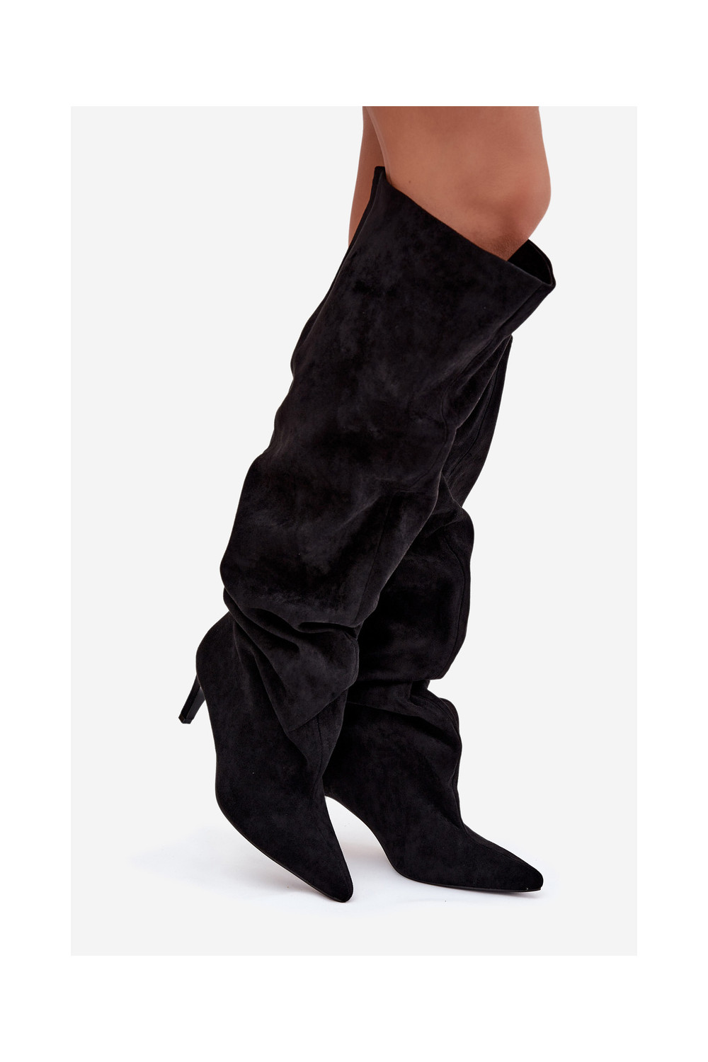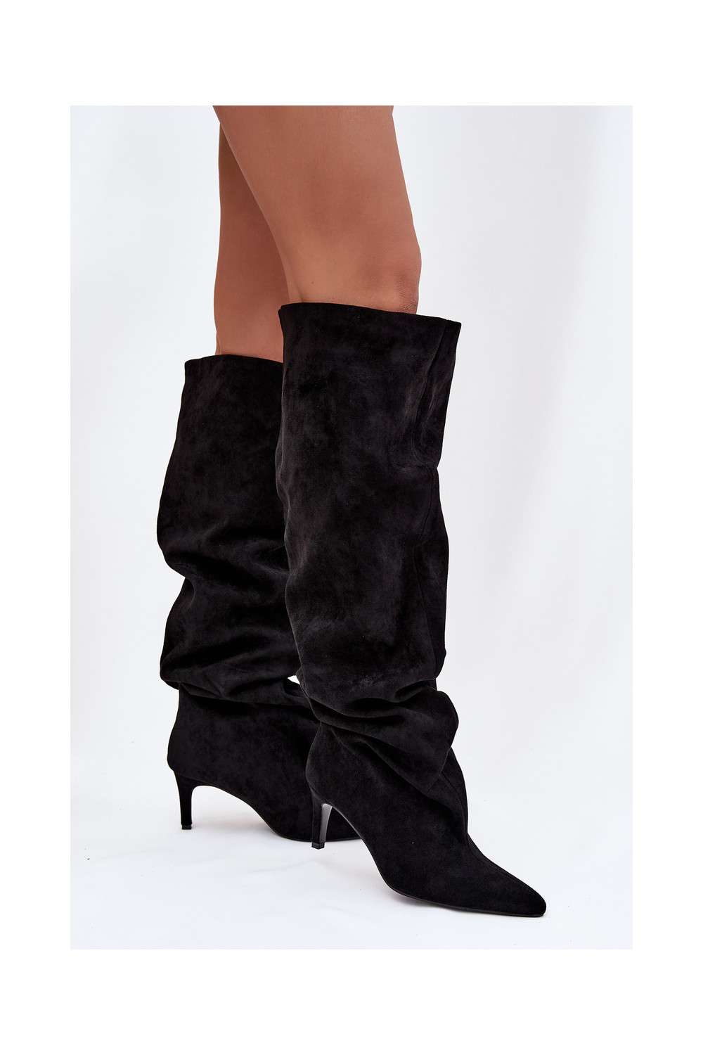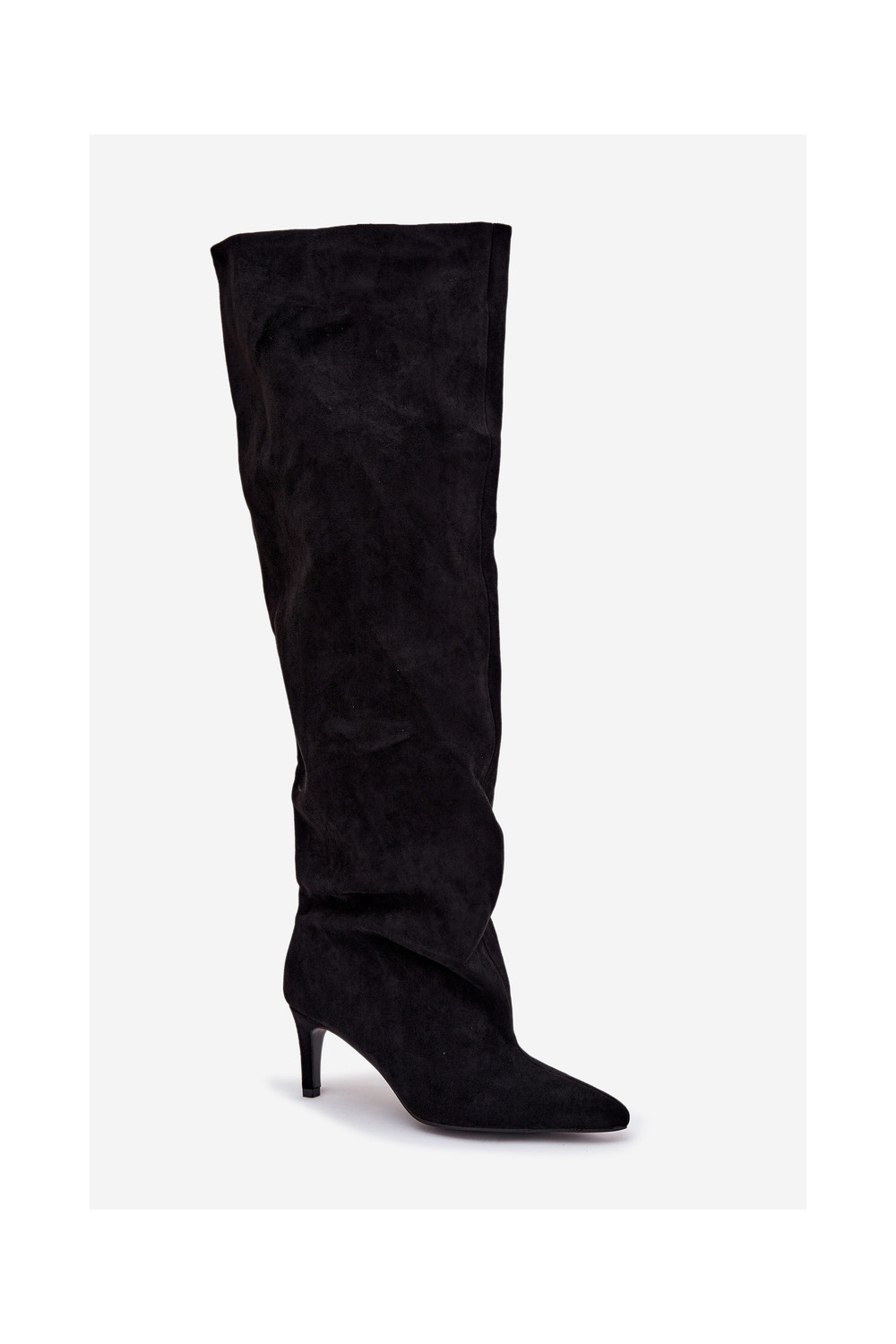 Moteriški ilgaauliai batai su plonais kulniukais įsispiriamo modelio juodos spalvos Taivilla