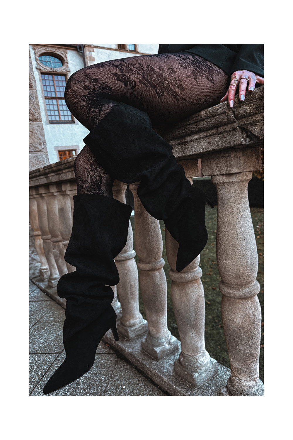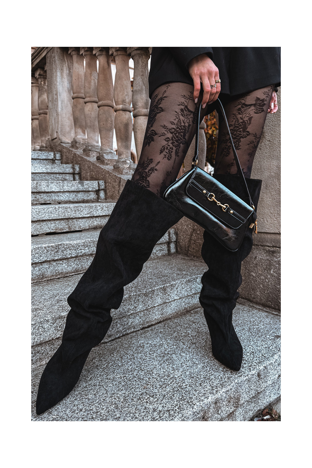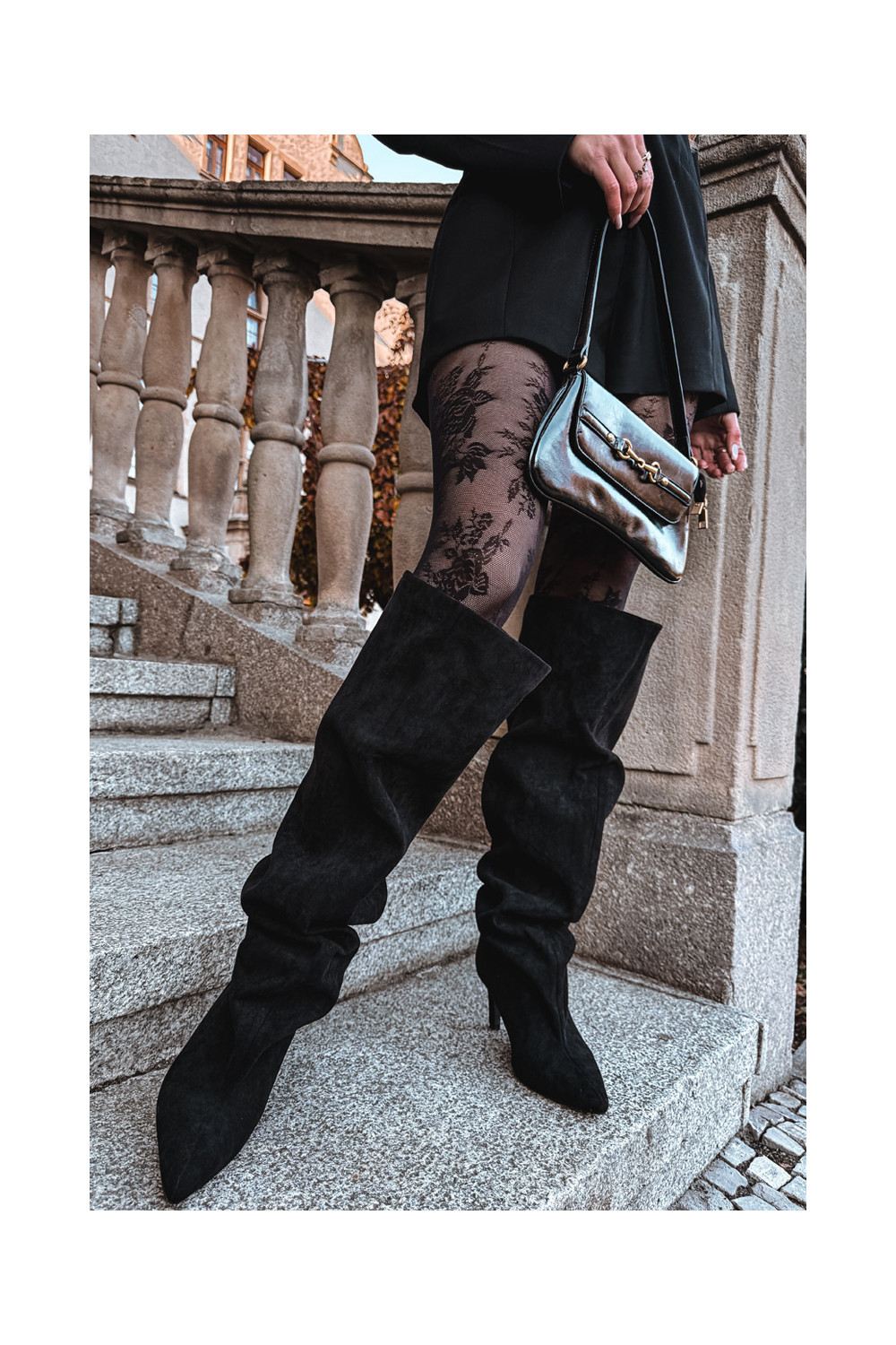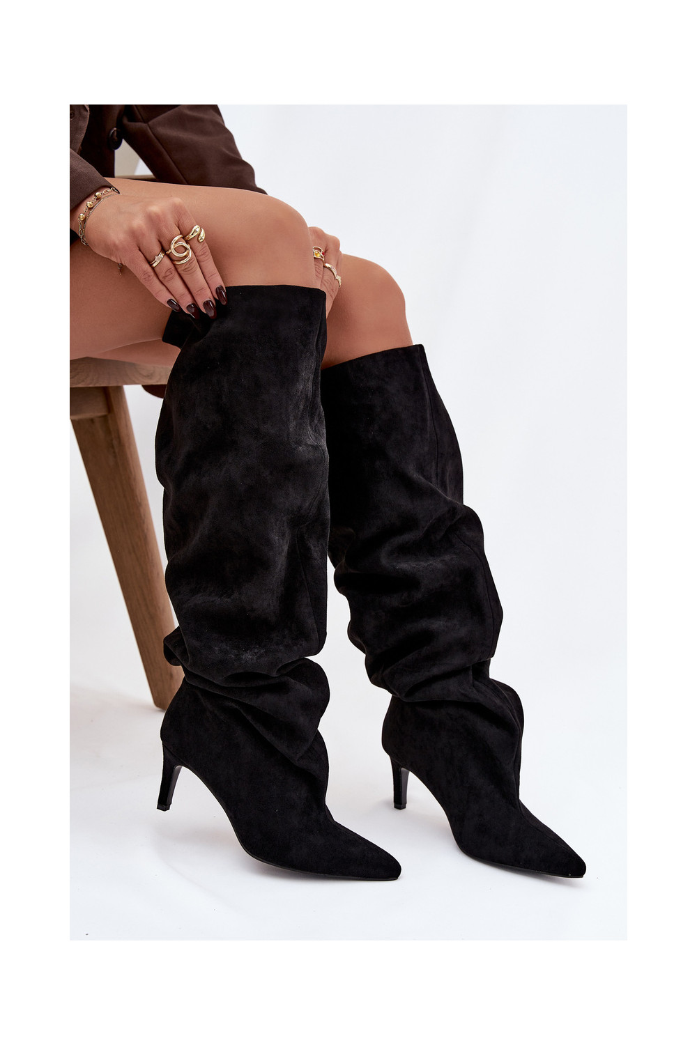 Moteriški ilgaauliai batai su plonais kulniukais įsispiriamo modelio juodos spalvos Taivilla