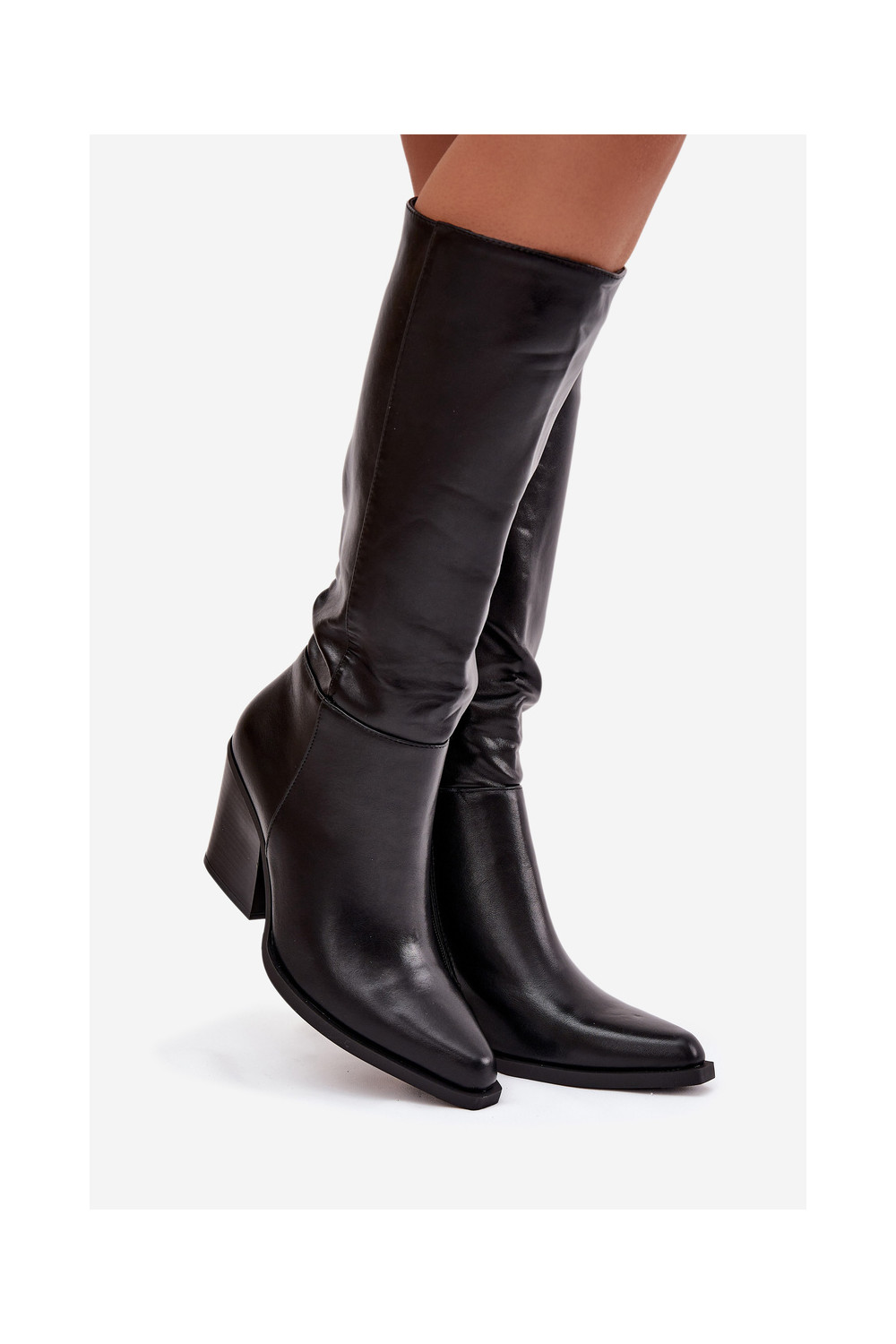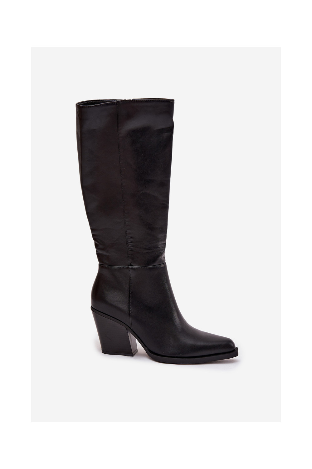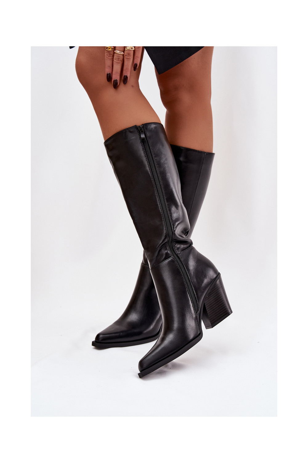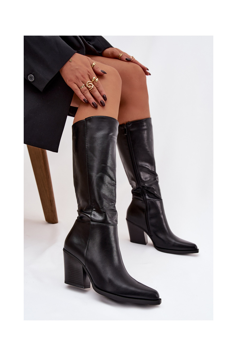 moteriški ilgaauliai batai su kulniukais pašiltinti juodos spalvos Katelle