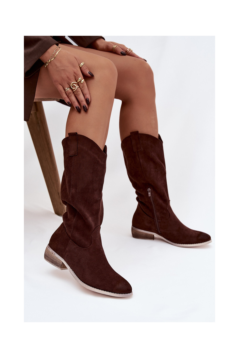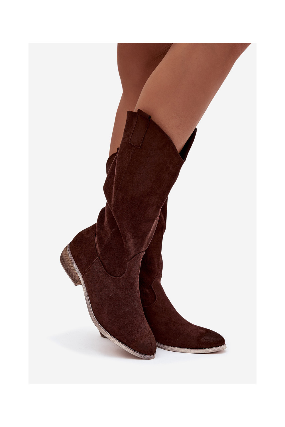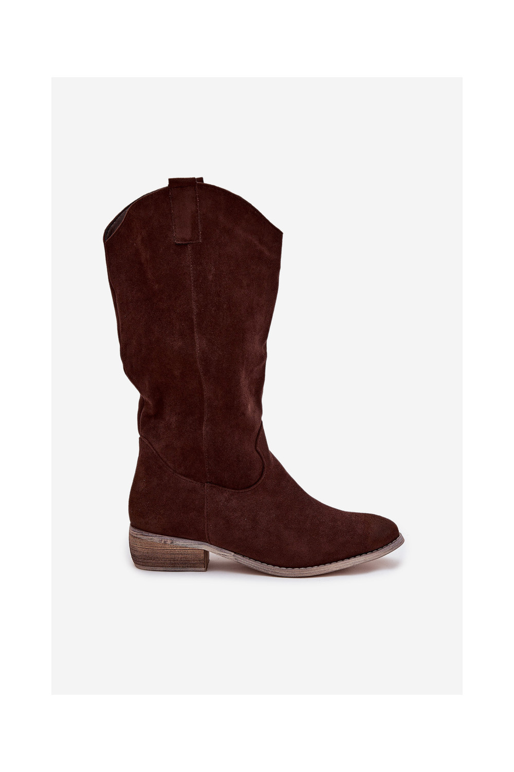 ilgaauliai batai kaubojiško stiliaus Ant žemo kulnosuiš eko zomšosu CzekoladoĮe Cherrie
