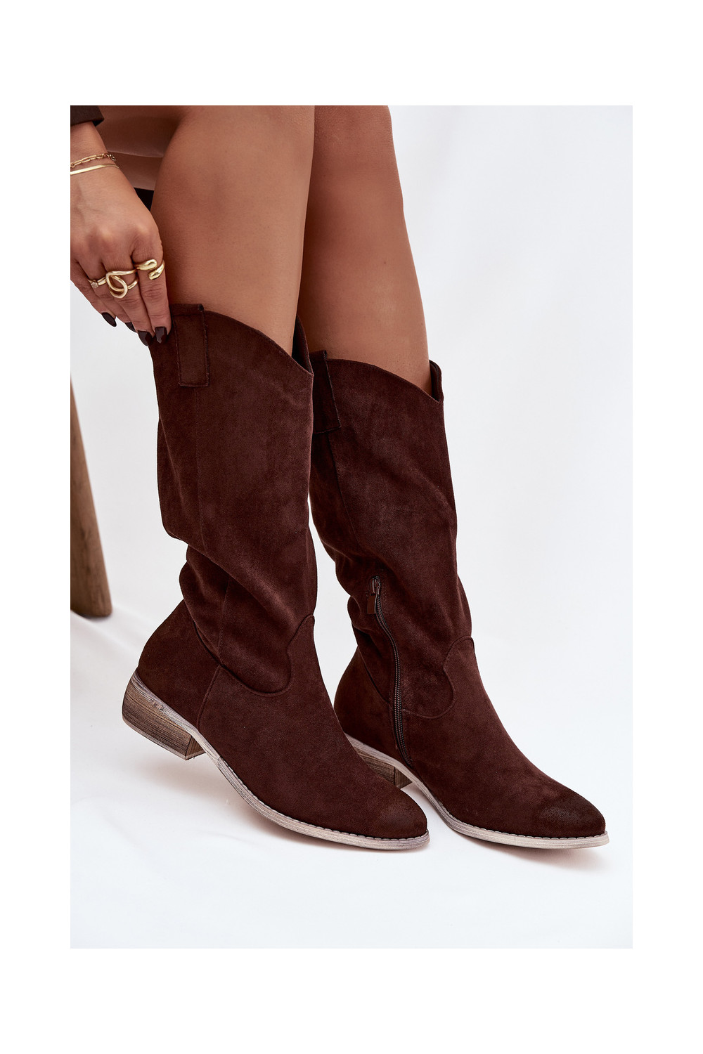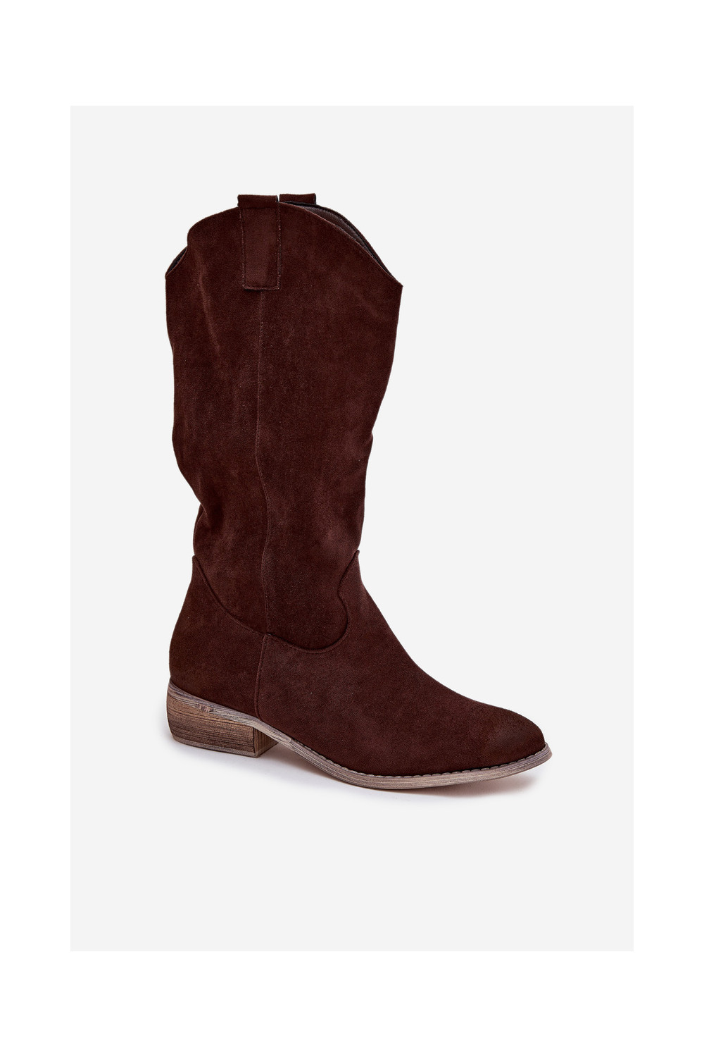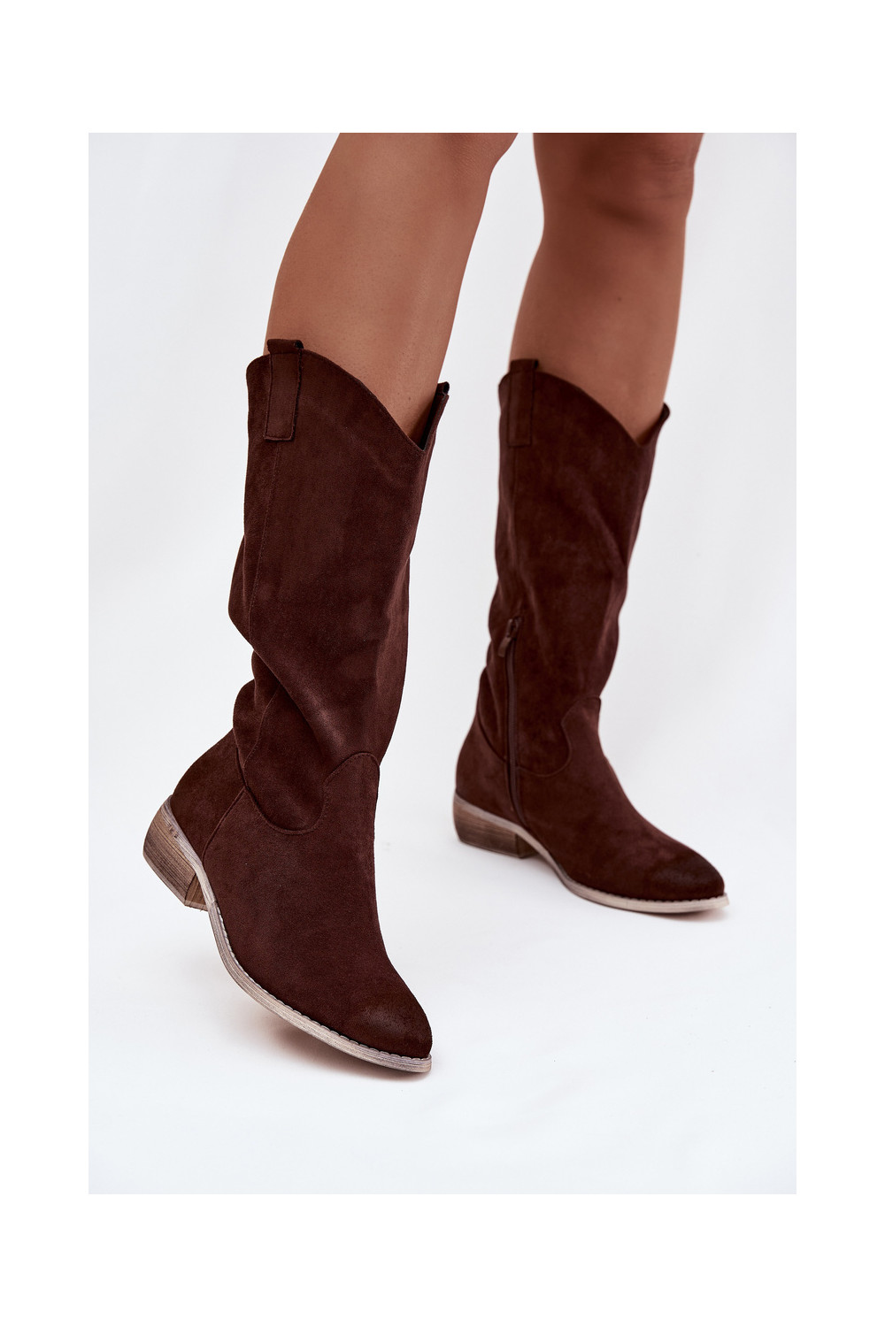 ilgaauliai batai kaubojiško stiliaus Ant žemo kulnosuiš eko zomšosu CzekoladoĮe Cherrie
