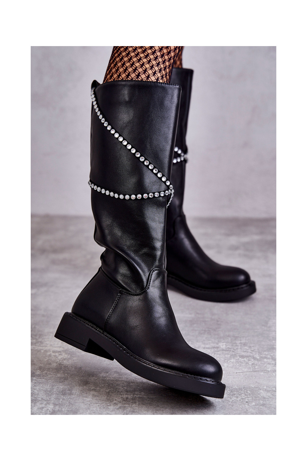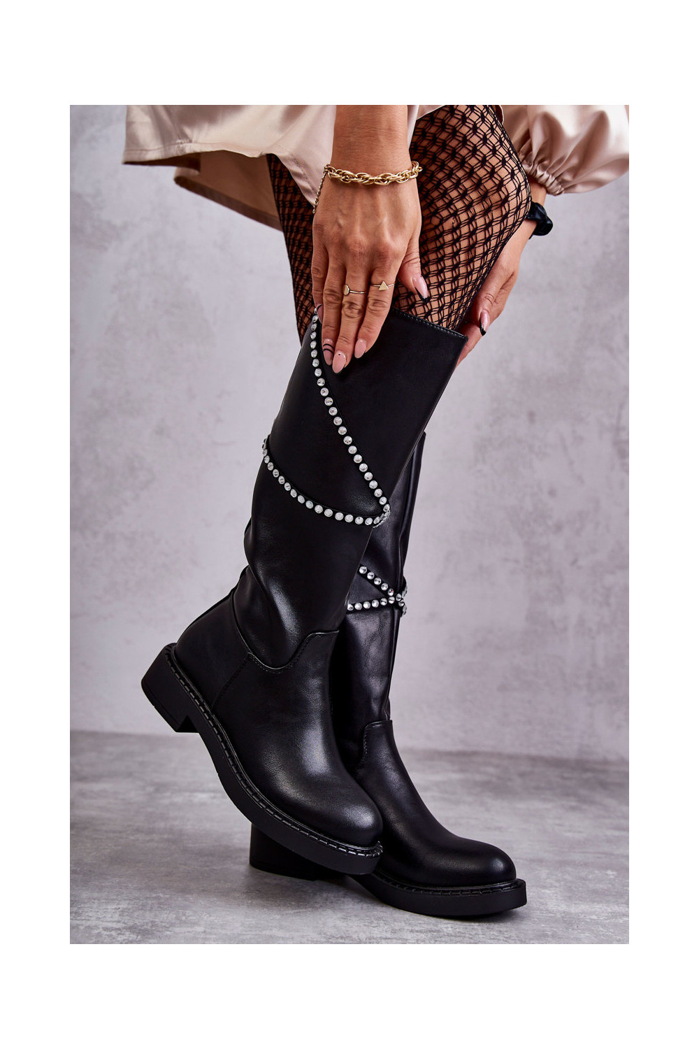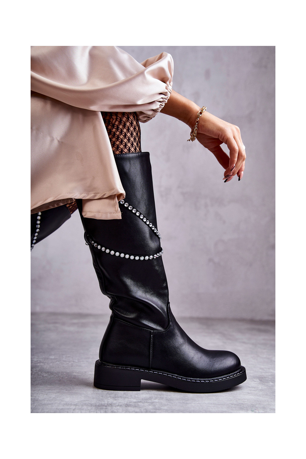 Moteriškas ilgaauliai batai su gražiomis detalėmis juodos spalvos Finlay