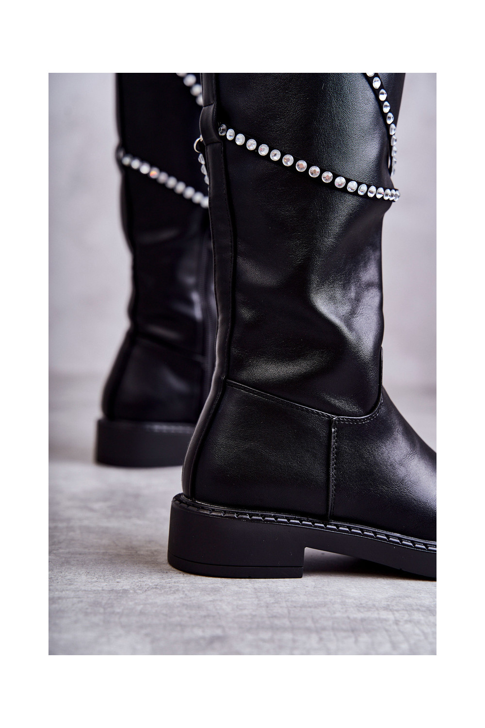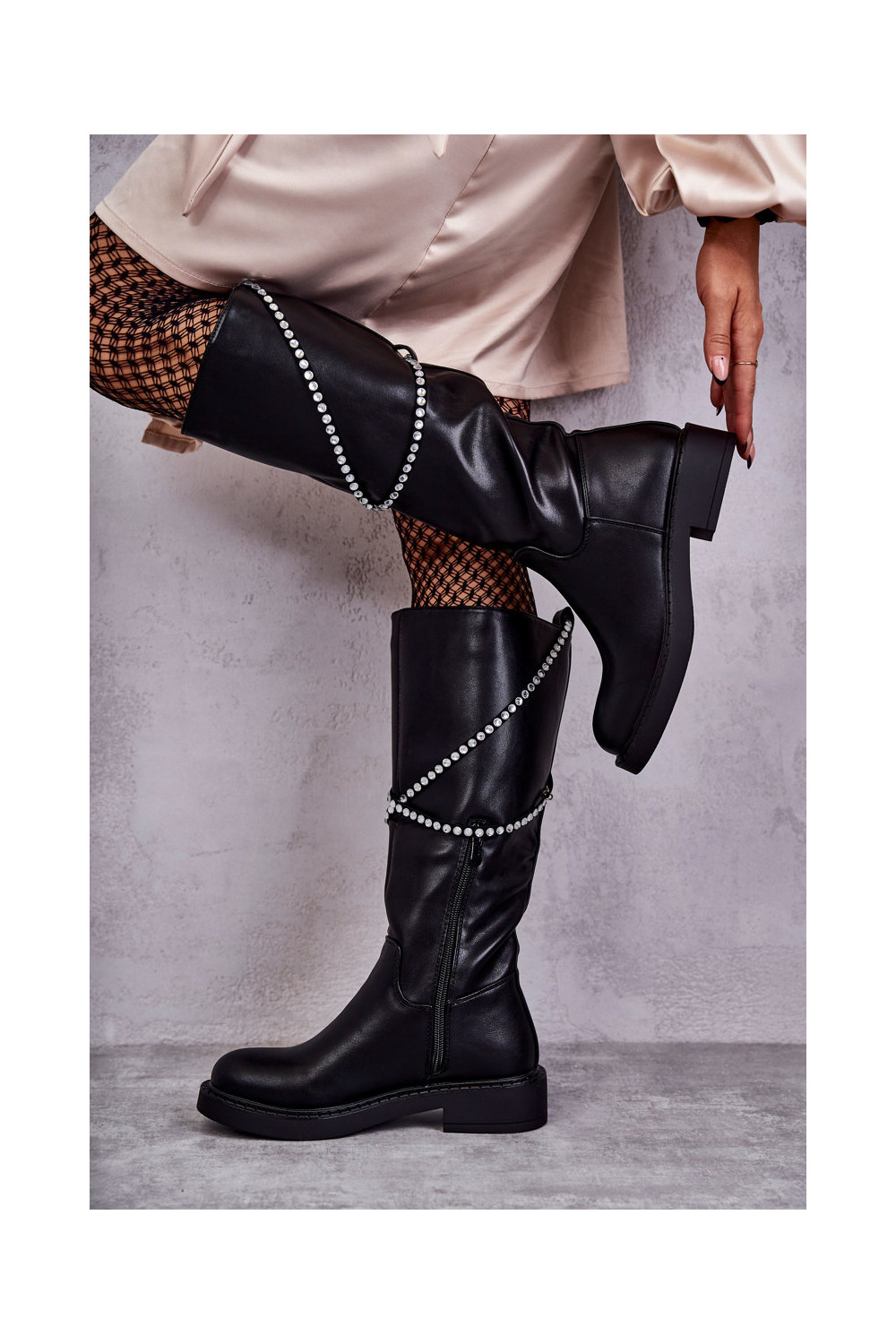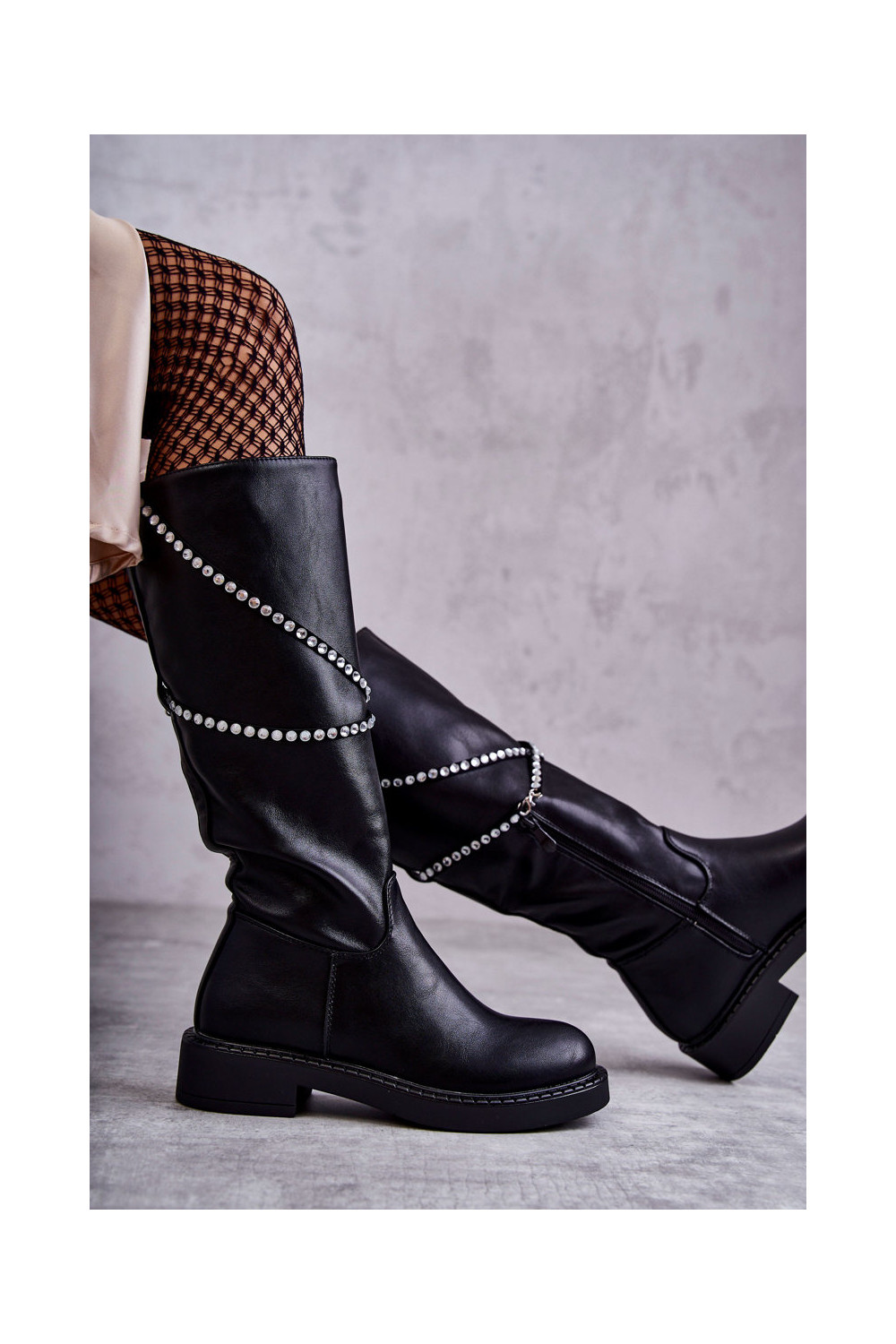 Moteriškas ilgaauliai batai su gražiomis detalėmis juodos spalvos Finlay