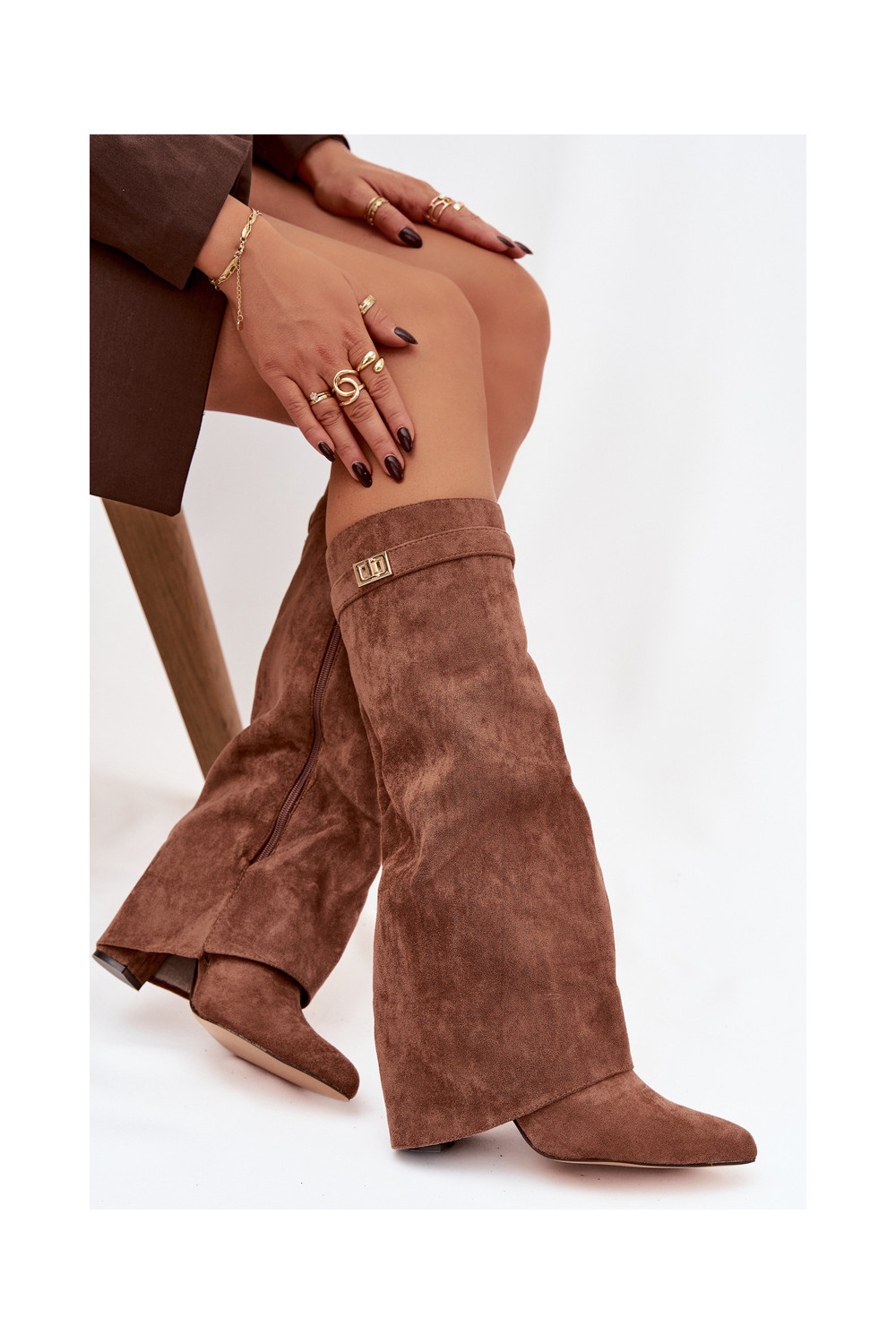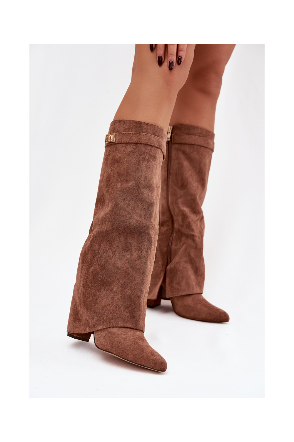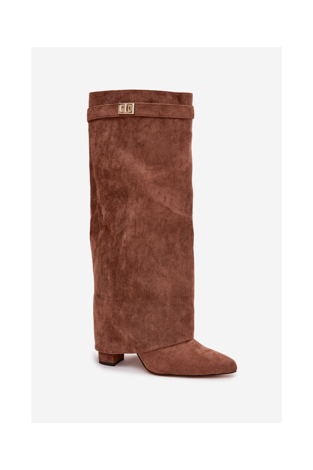 ilgaauliai batai iš eko zomšosowe Obcas Słupek pašiltinti Wywinięta Cholewka smėlio spalvos Evyra