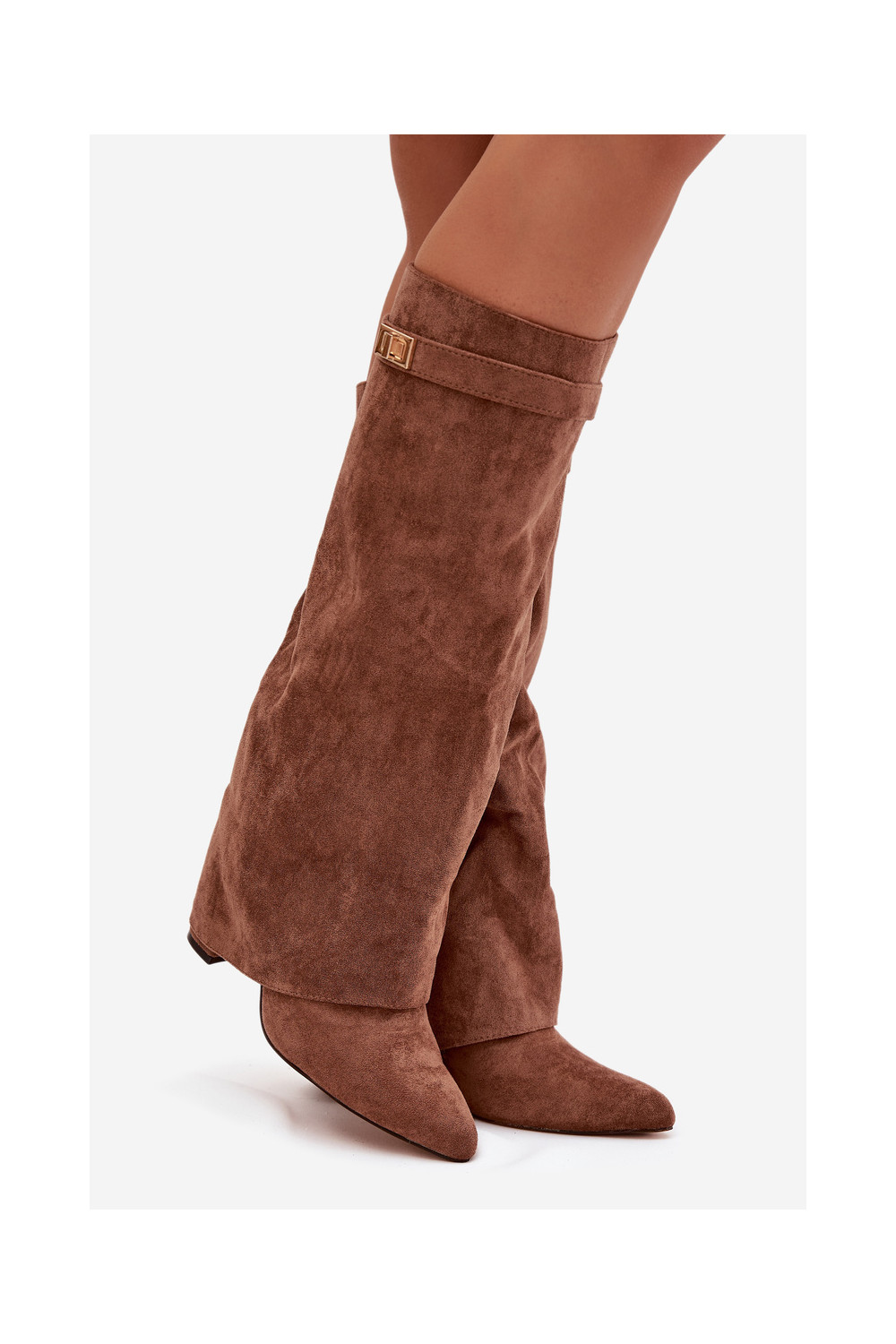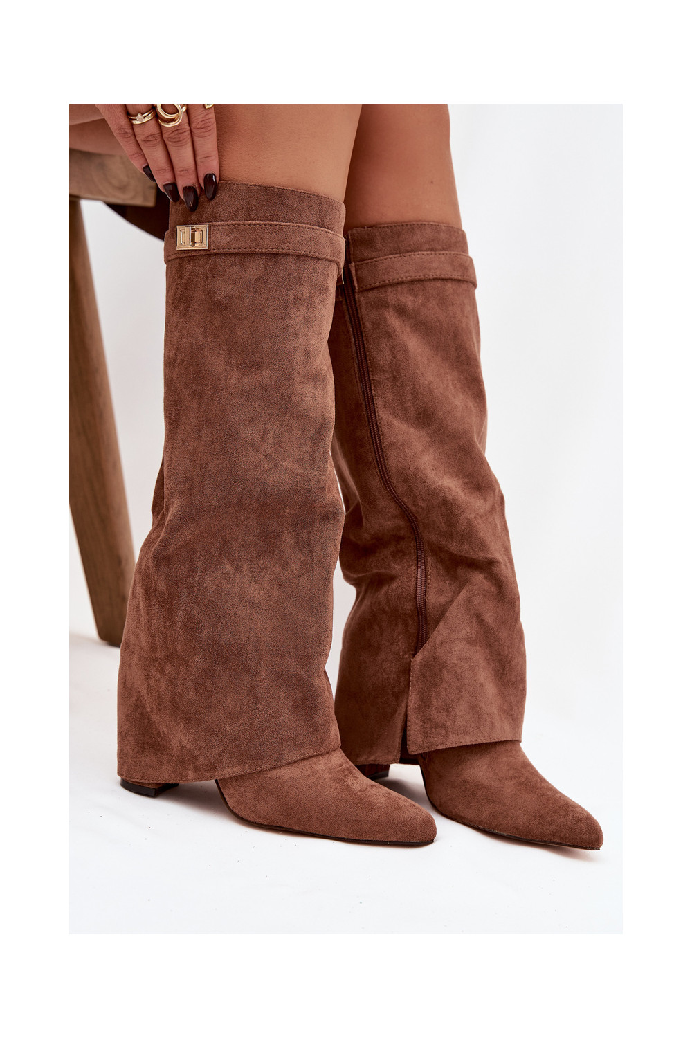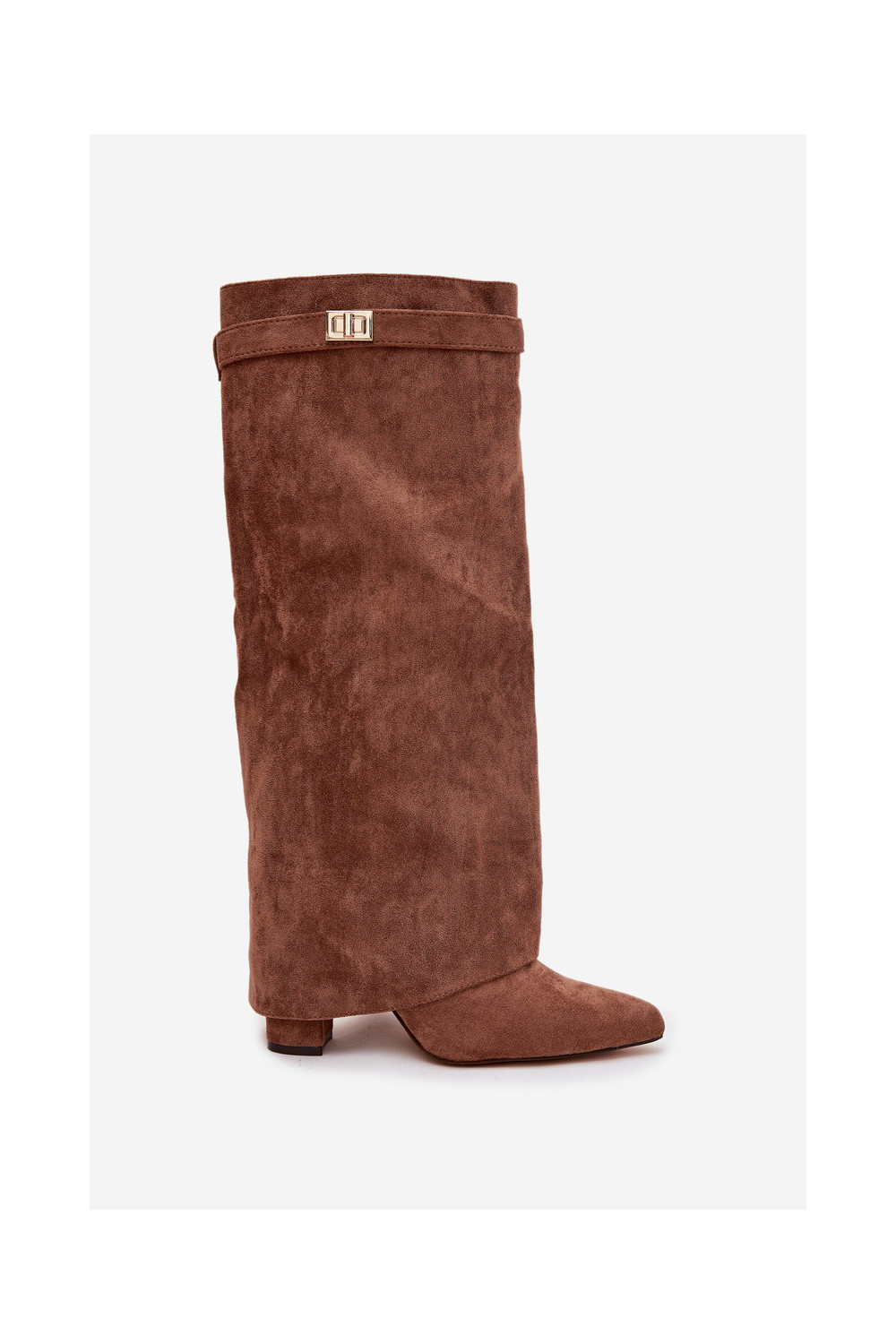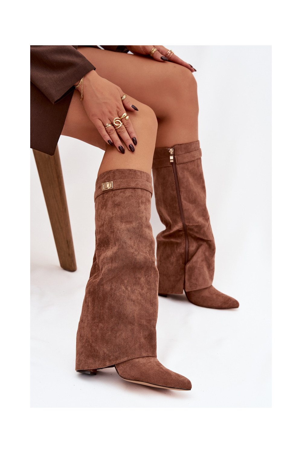 ilgaauliai batai iš eko zomšosowe Obcas Słupek pašiltinti Wywinięta Cholewka smėlio spalvos Evyra