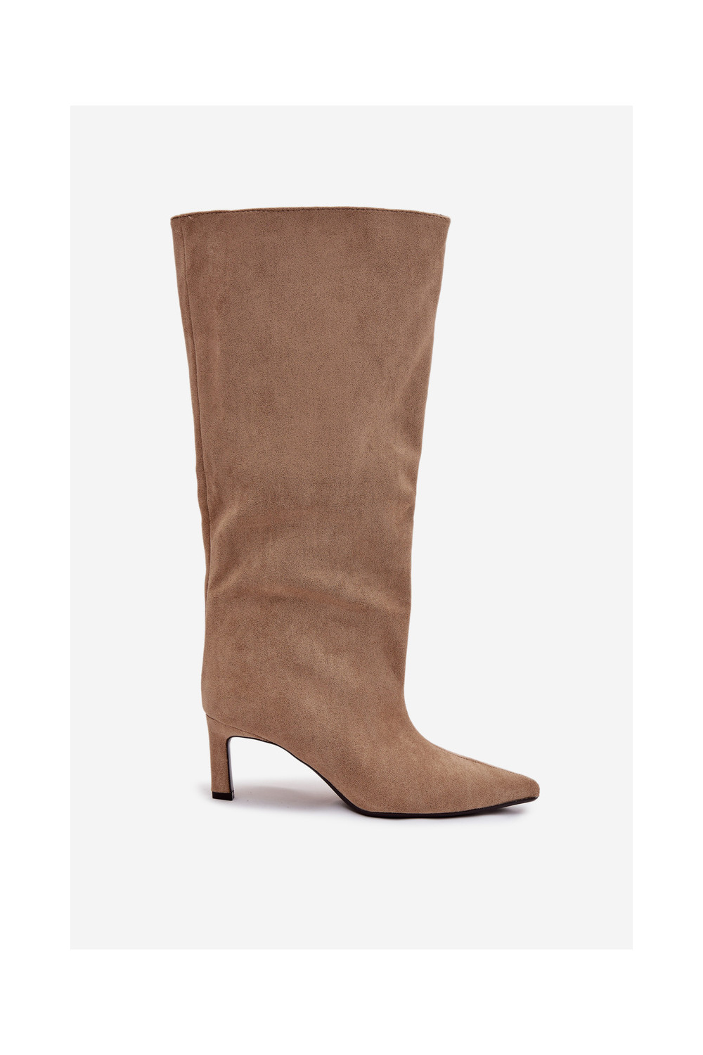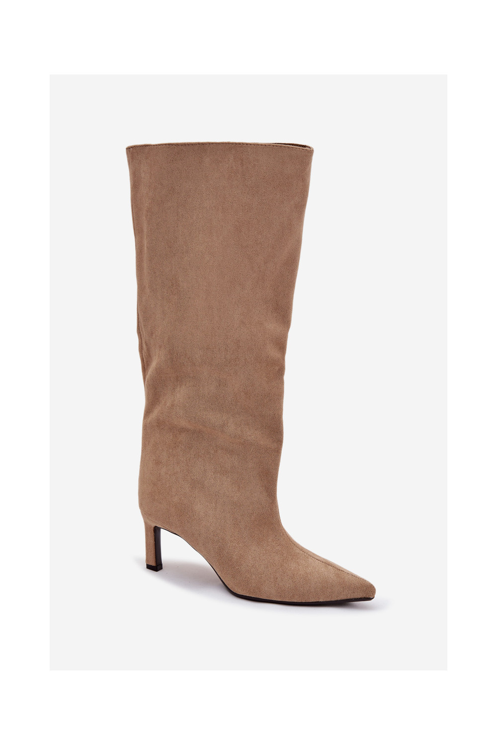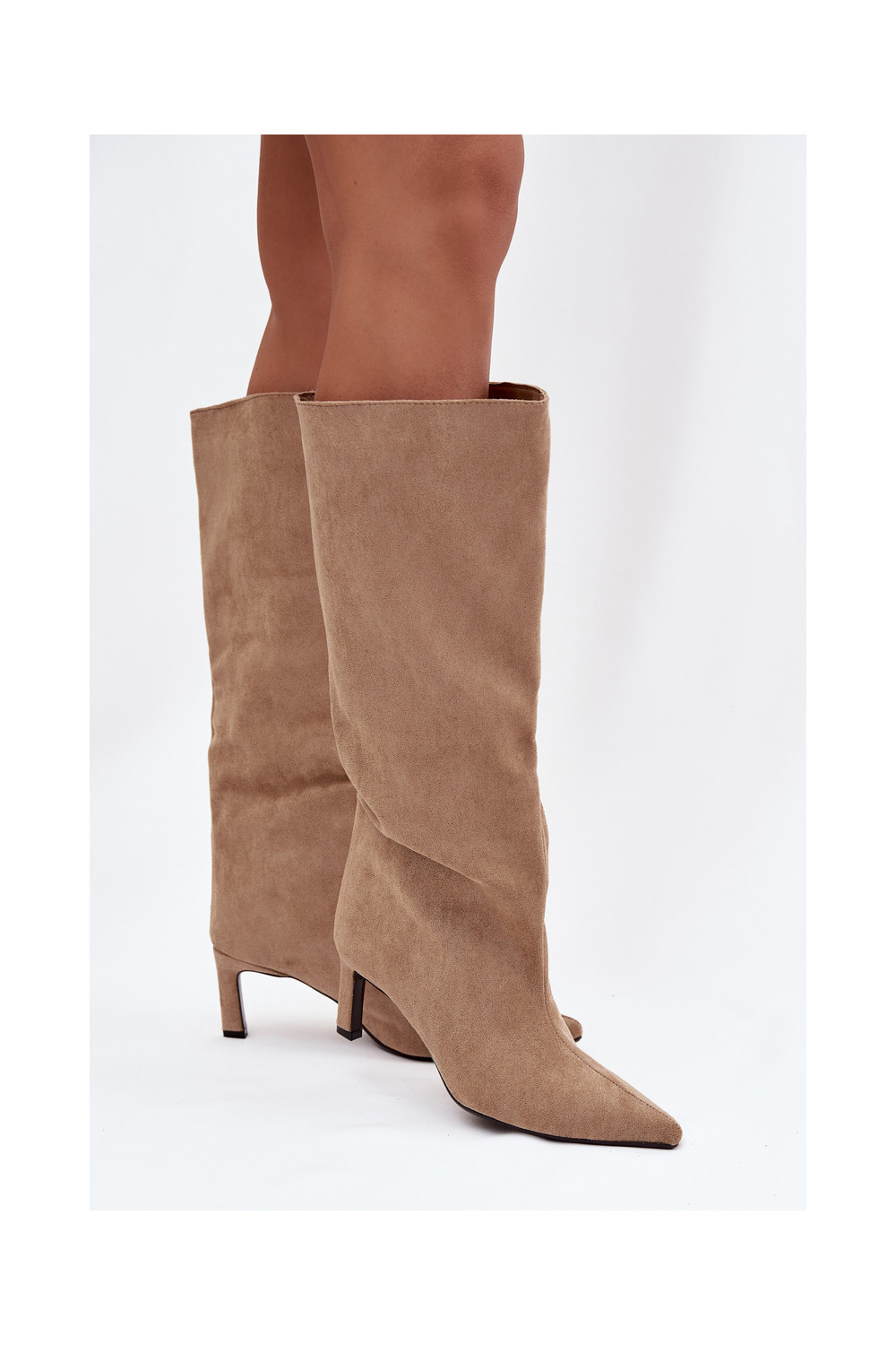 moteriški ilgaauliai batai Z iš eko zomšosu Įsispiriamo modelio su plonais kulniukais smėlio spalvos Phelin