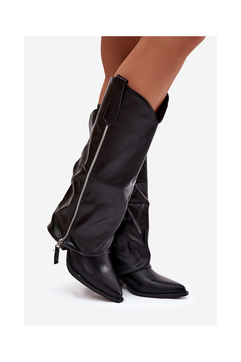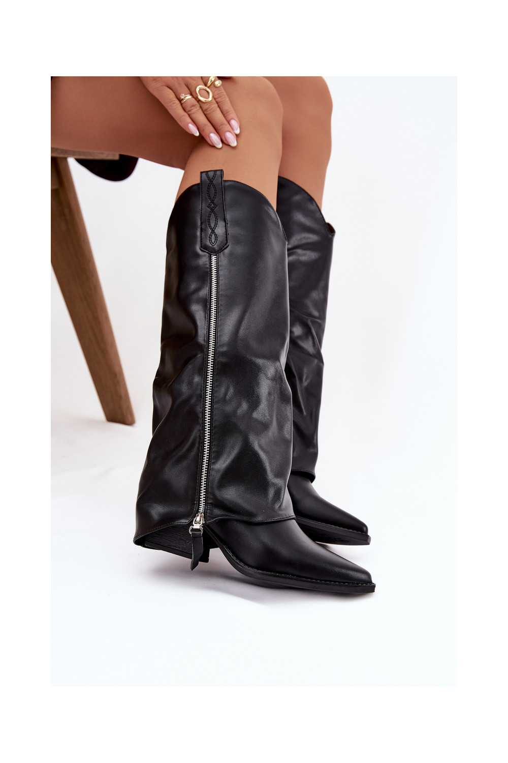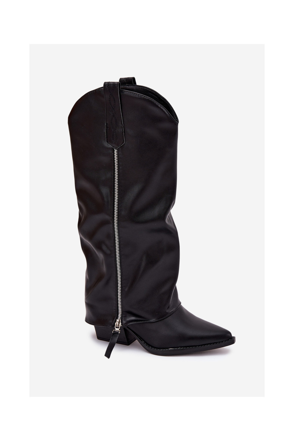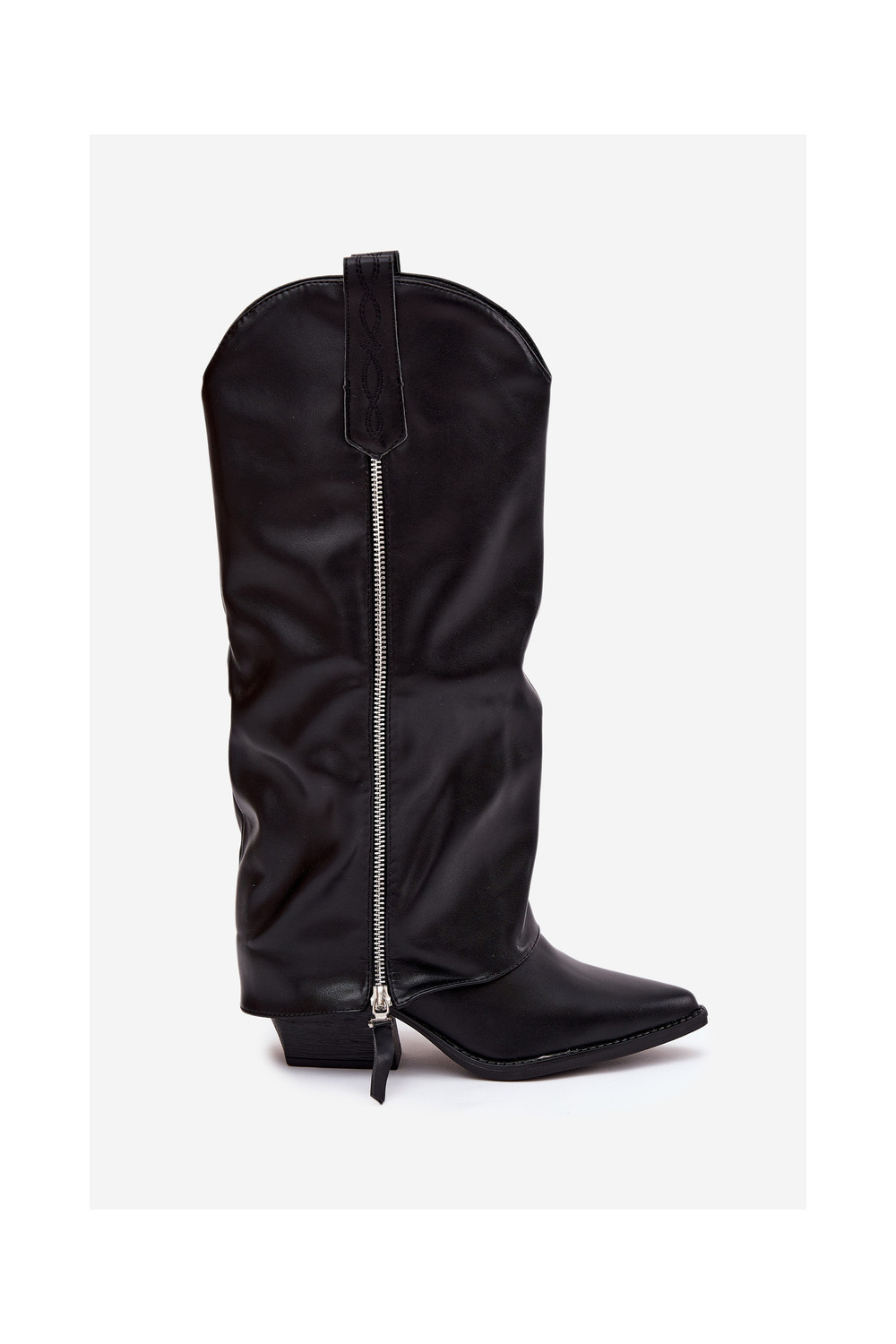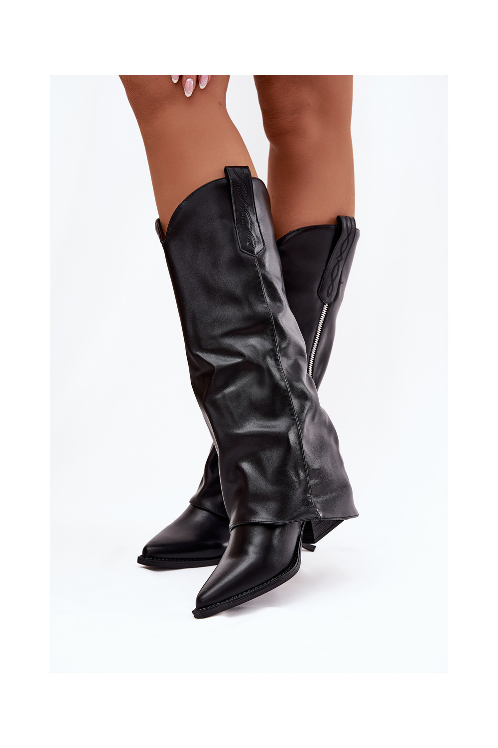 ilgaauliai batai kaubojiško stiliaus su kulniukais iš eko odos juodos spalvos Palira