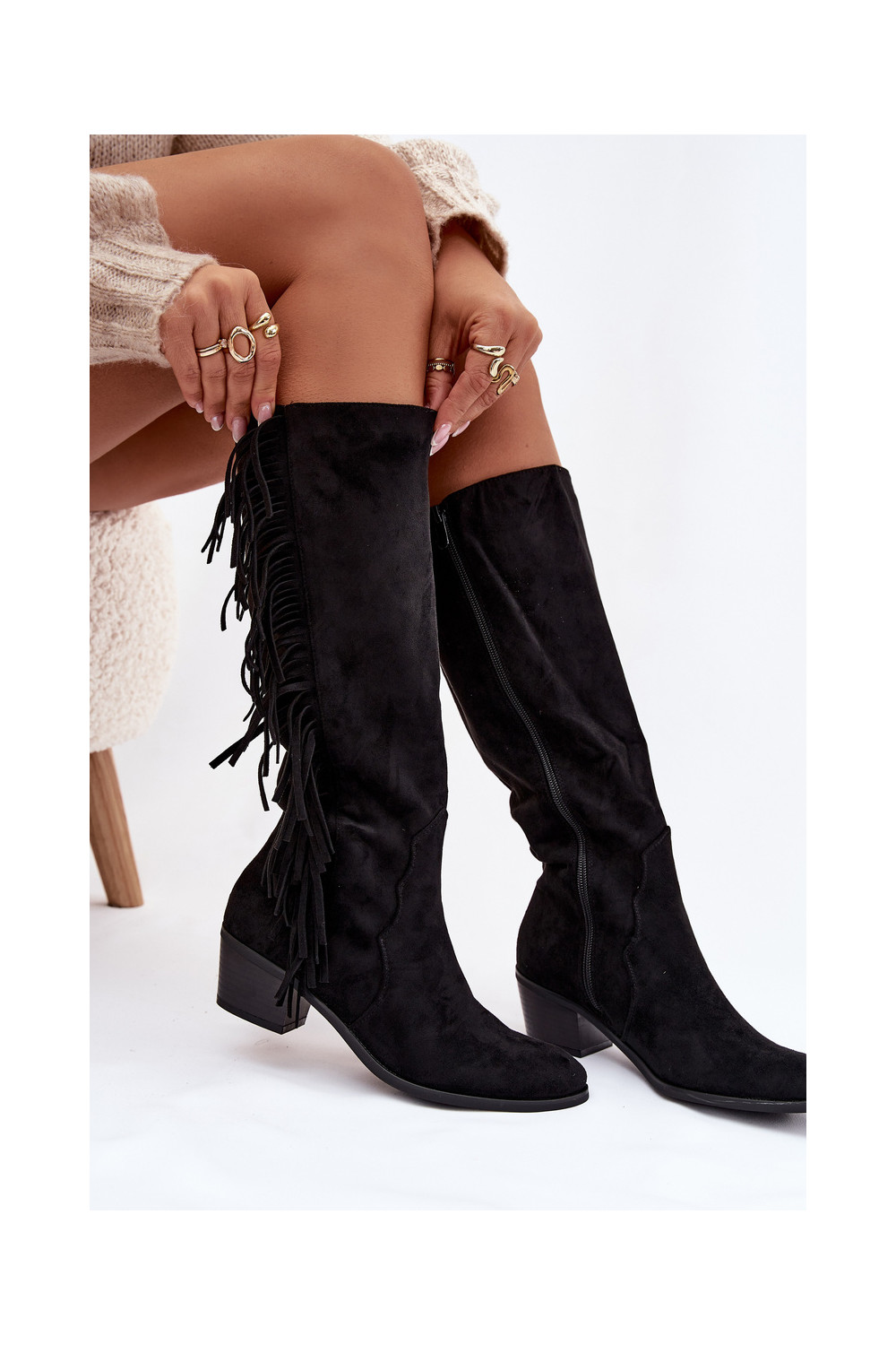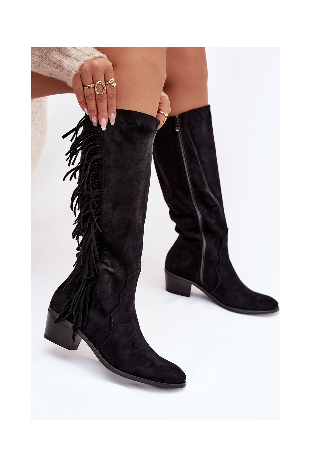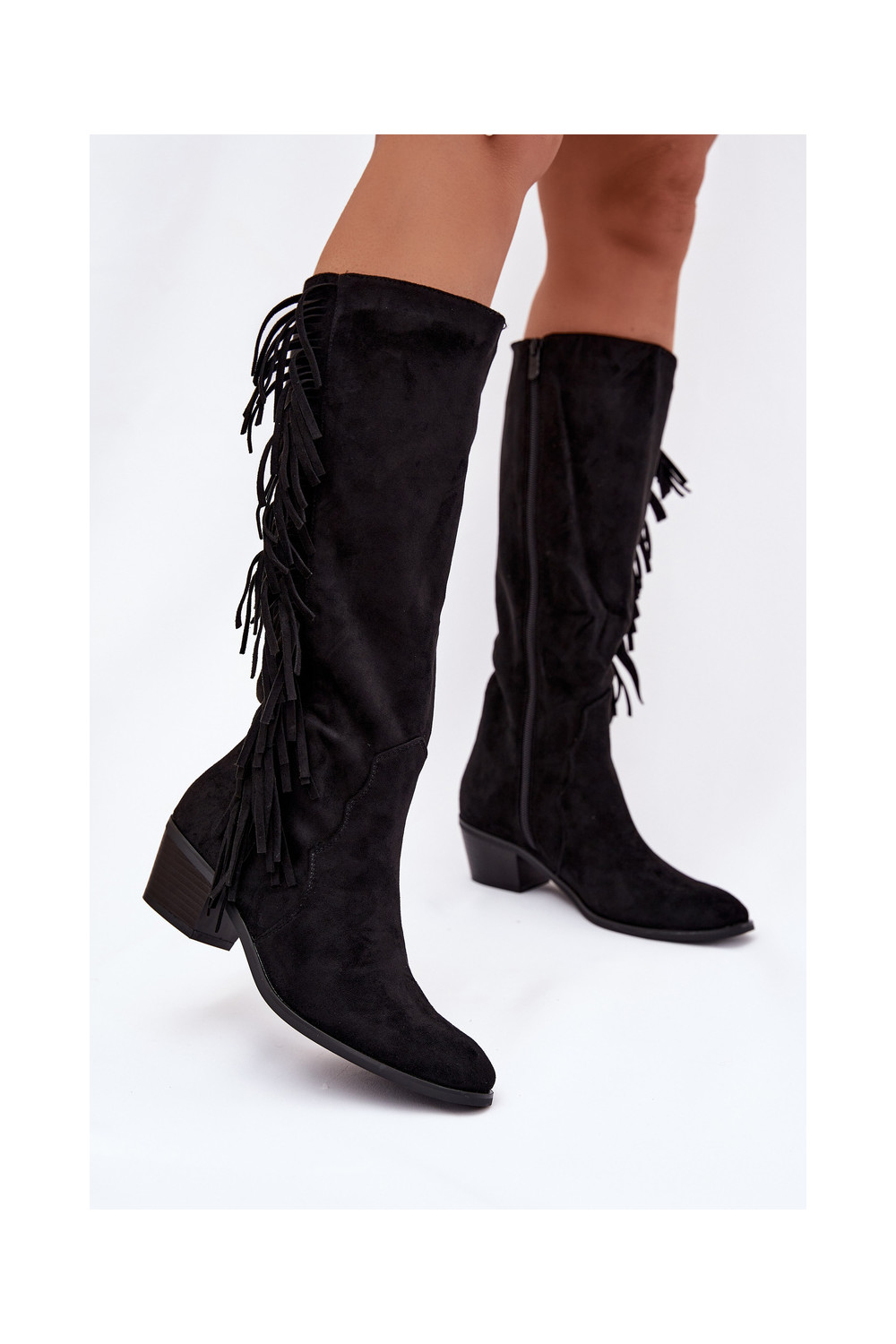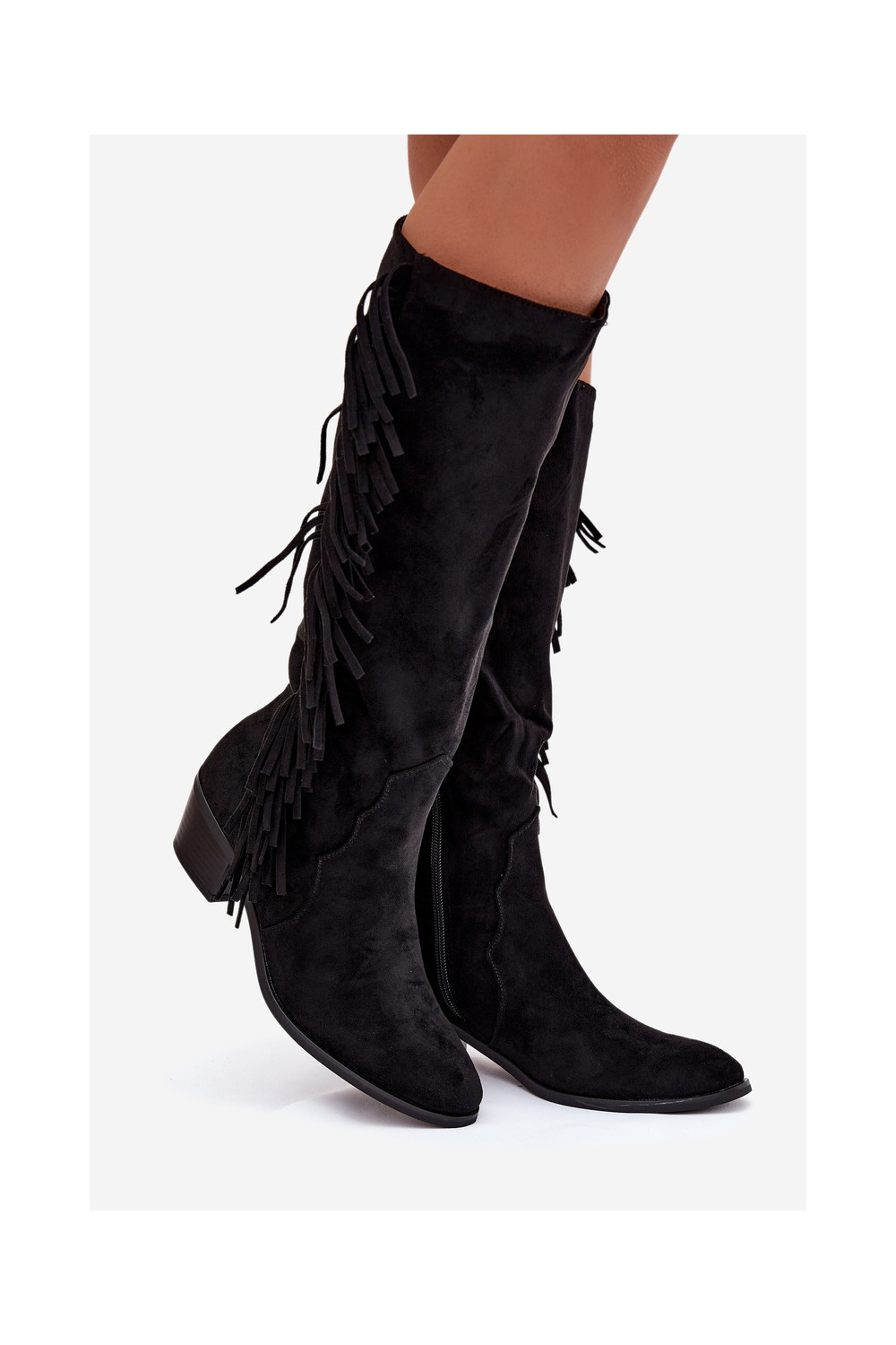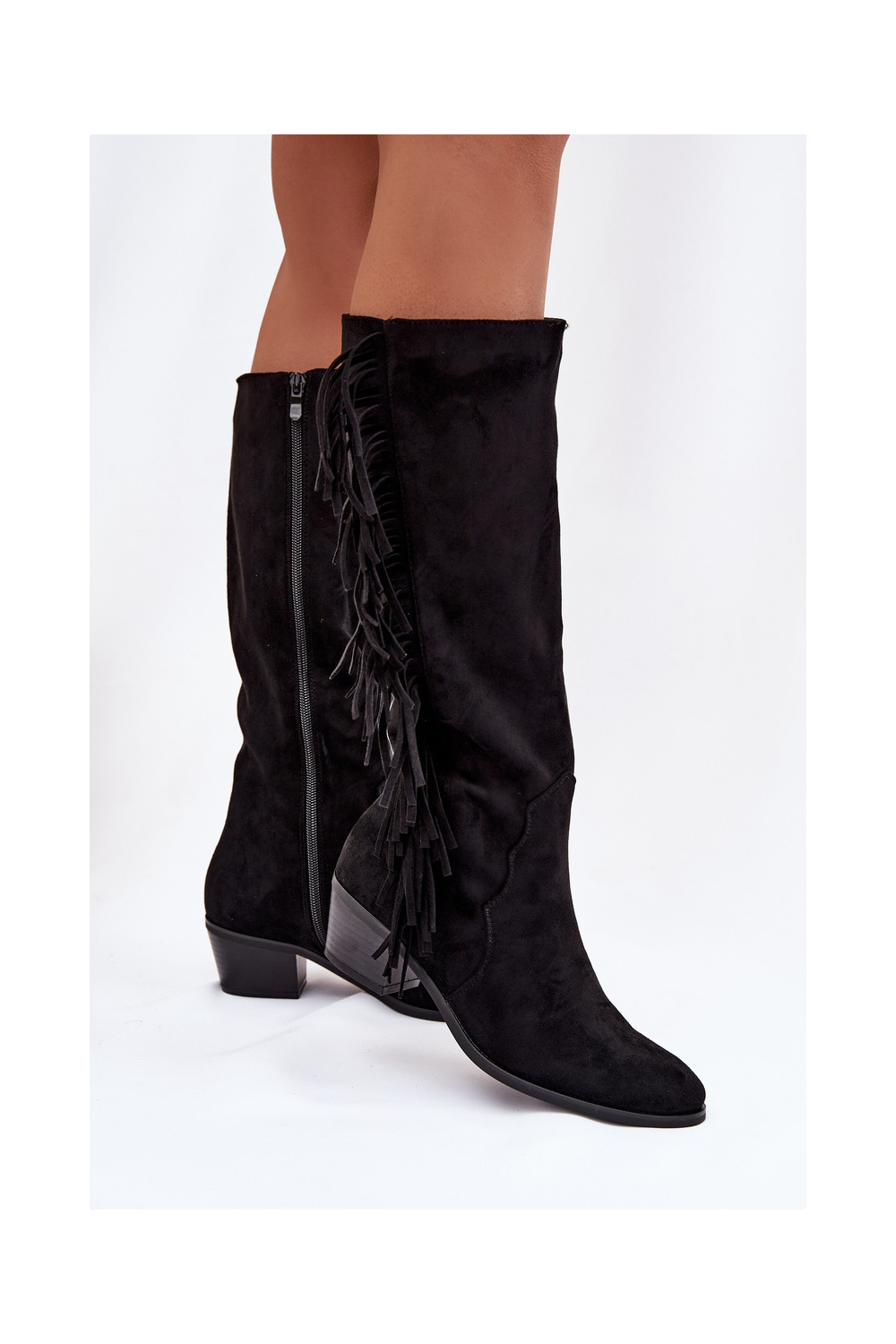ilgaauliai batai kaubojiško stiliaus Moteriškas su kulniukais su kutais pašiltinti juodos spalvos Firlina
