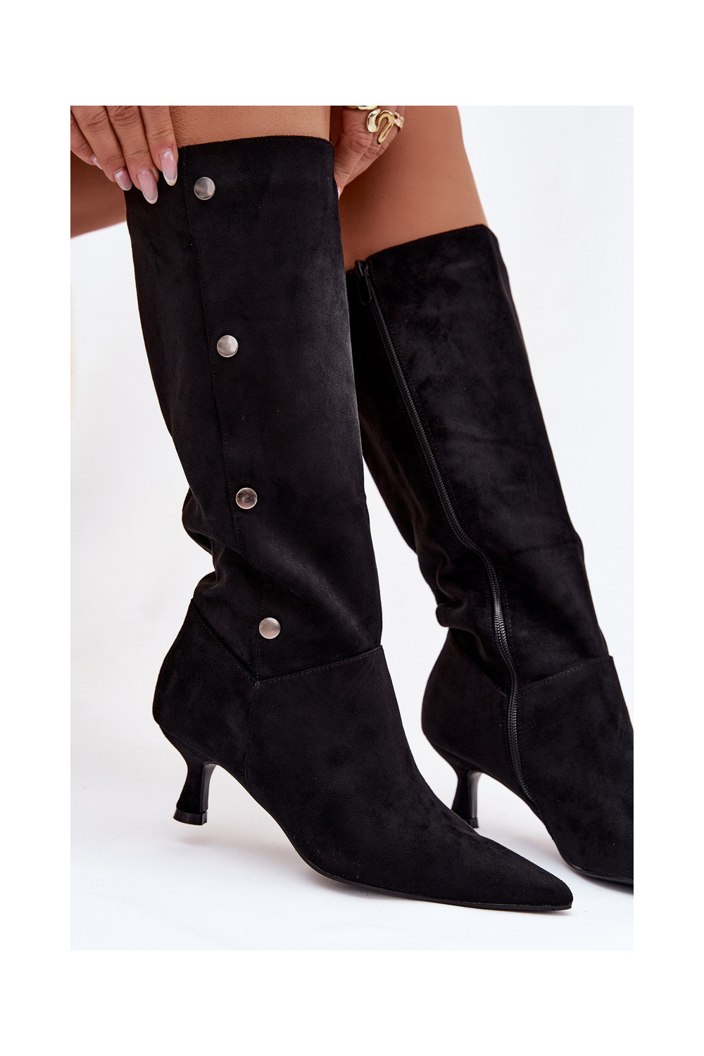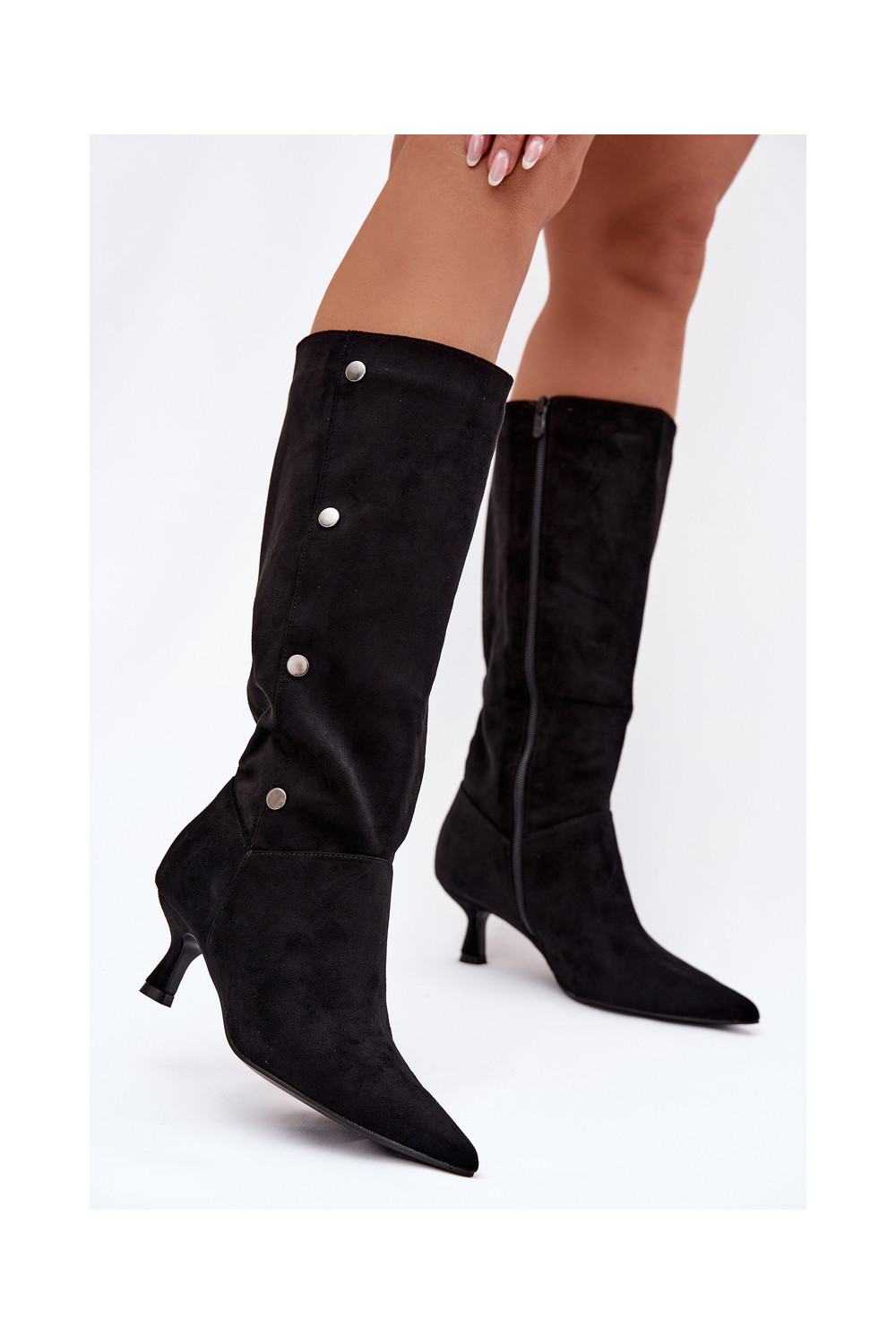 moteriški ilgaauliai batai su kulniukais Su puošniaisi Detalami juodos spalvos Hovelle