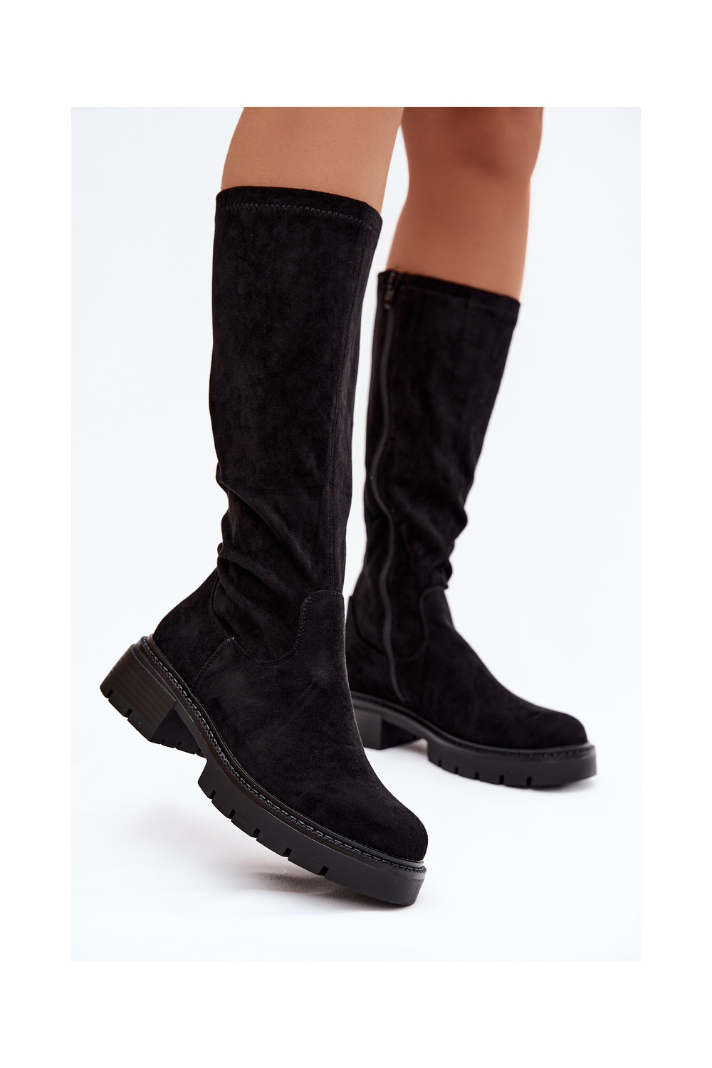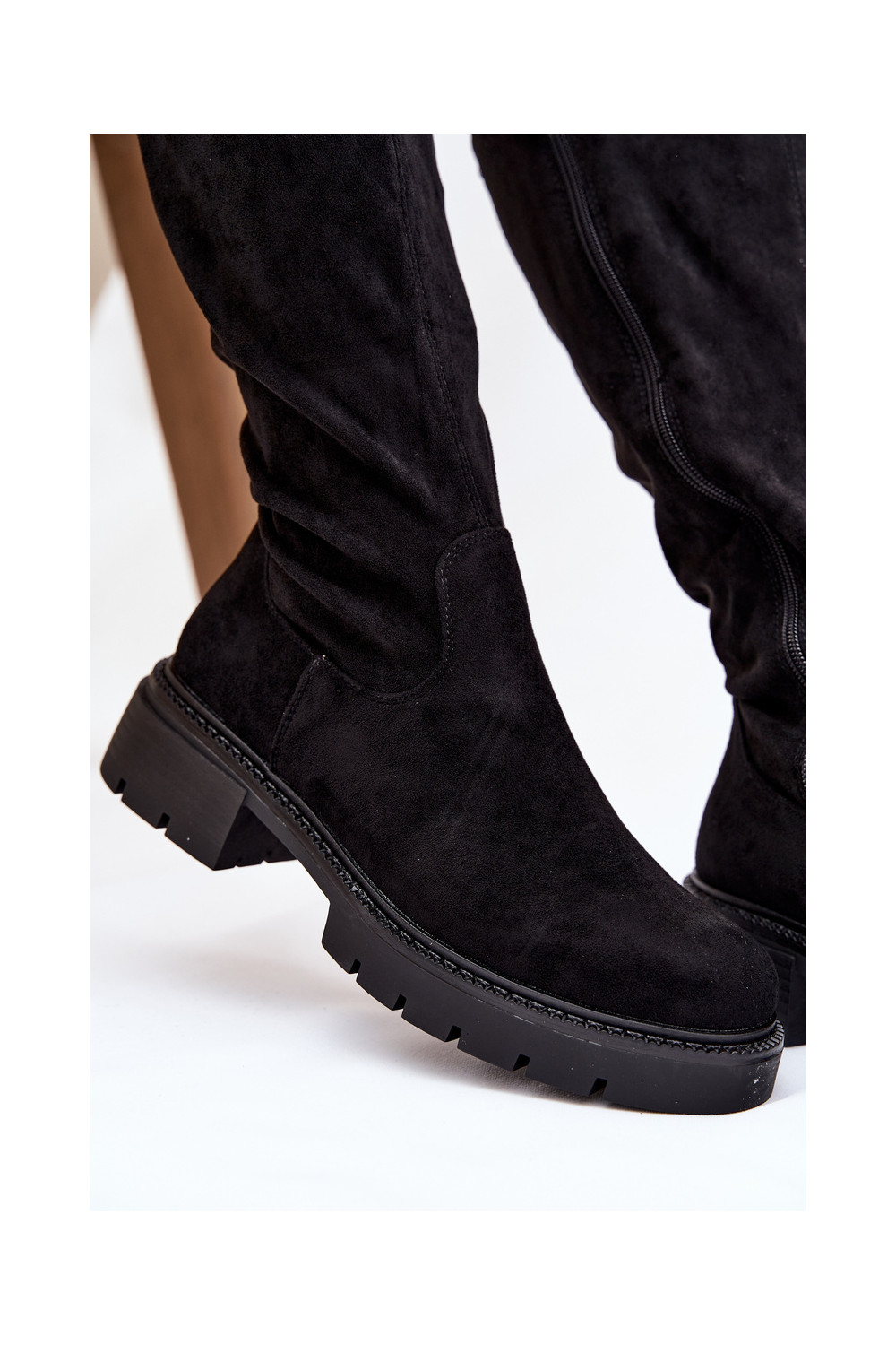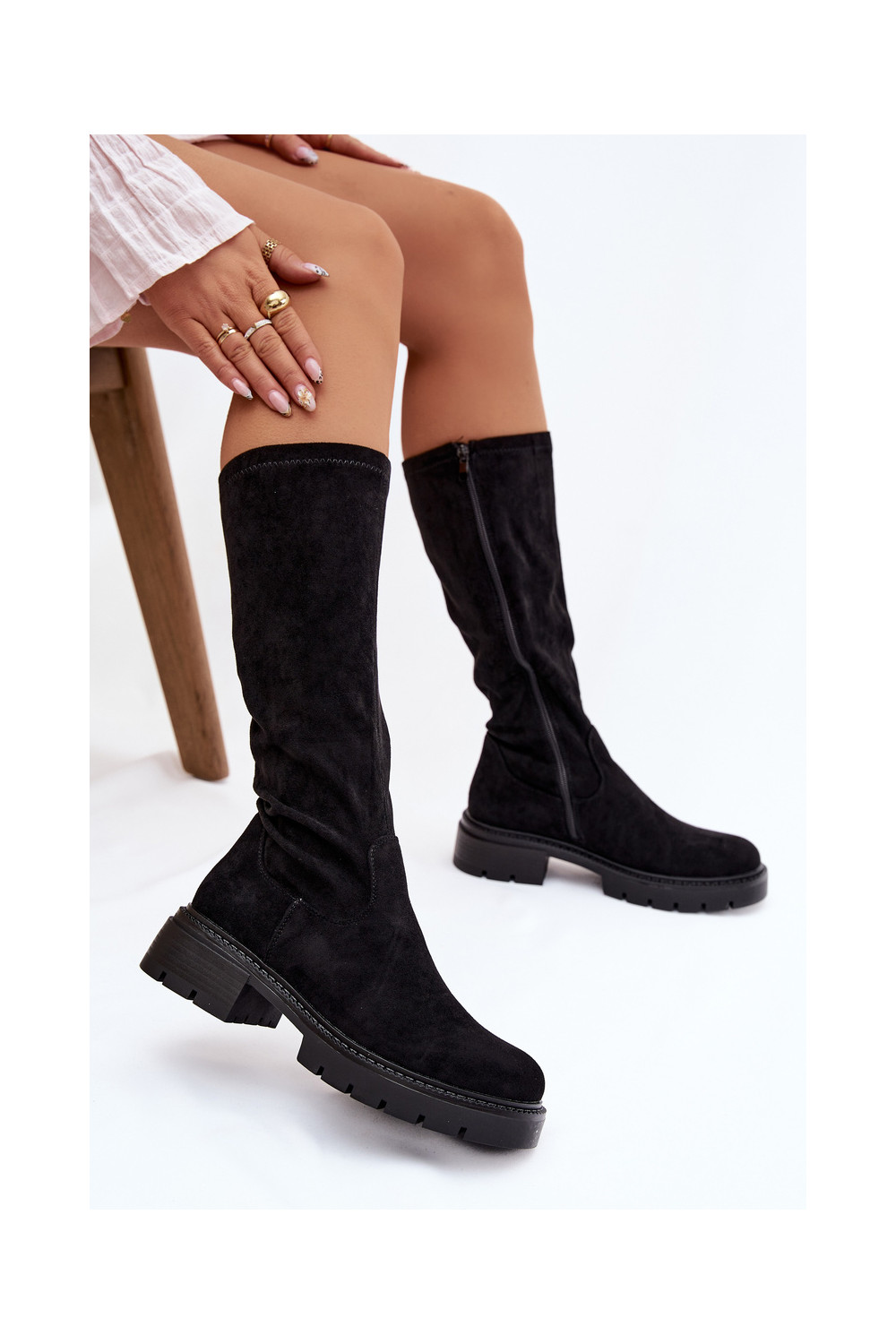 moteriški ilgaauliai batai Z iš eko zomšosu Juodos spalvos Oceana
