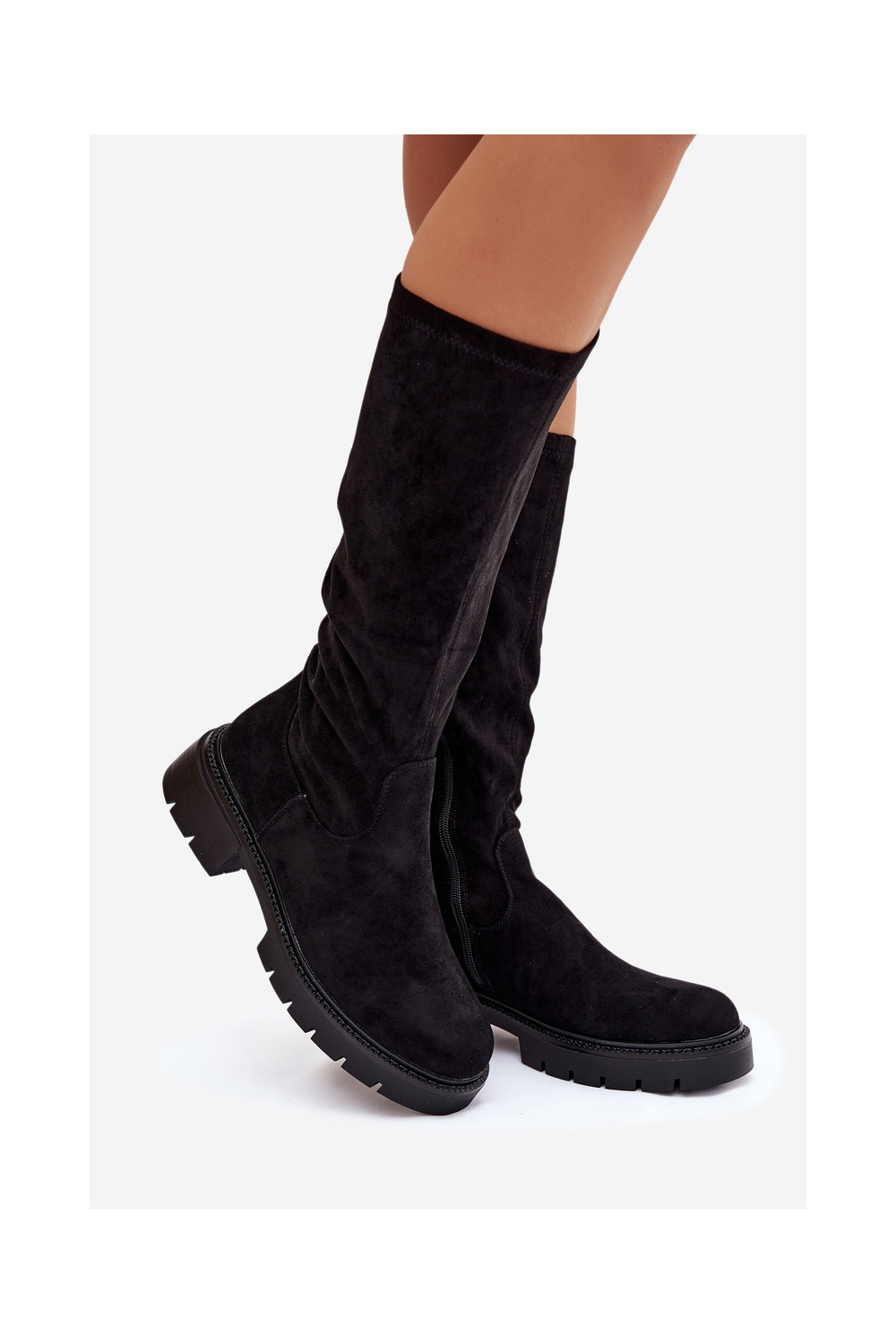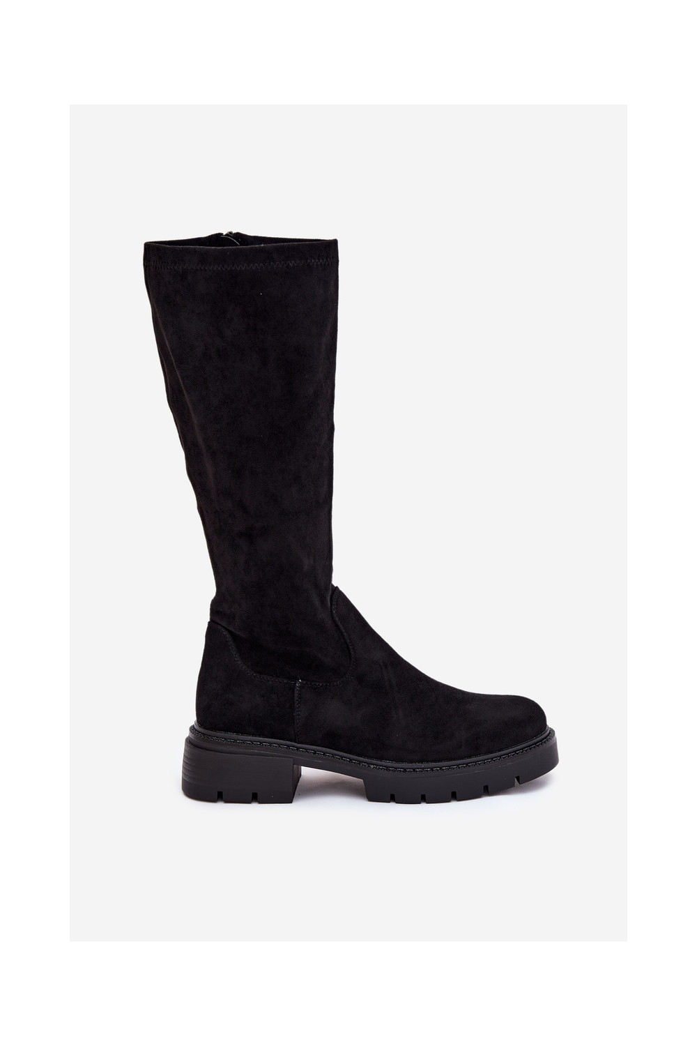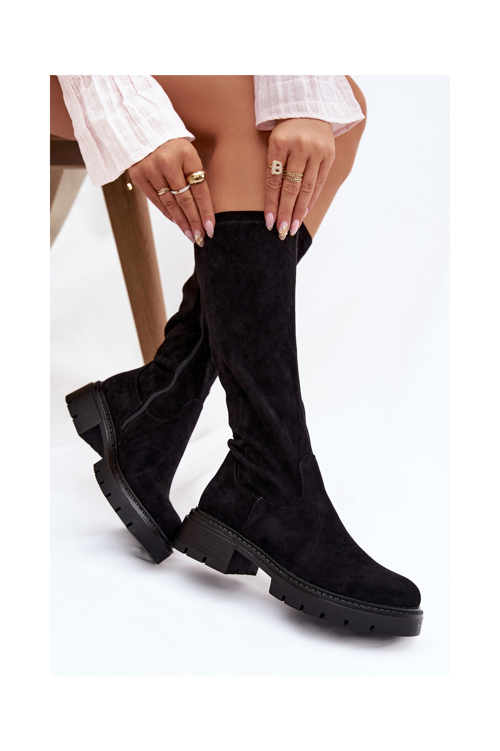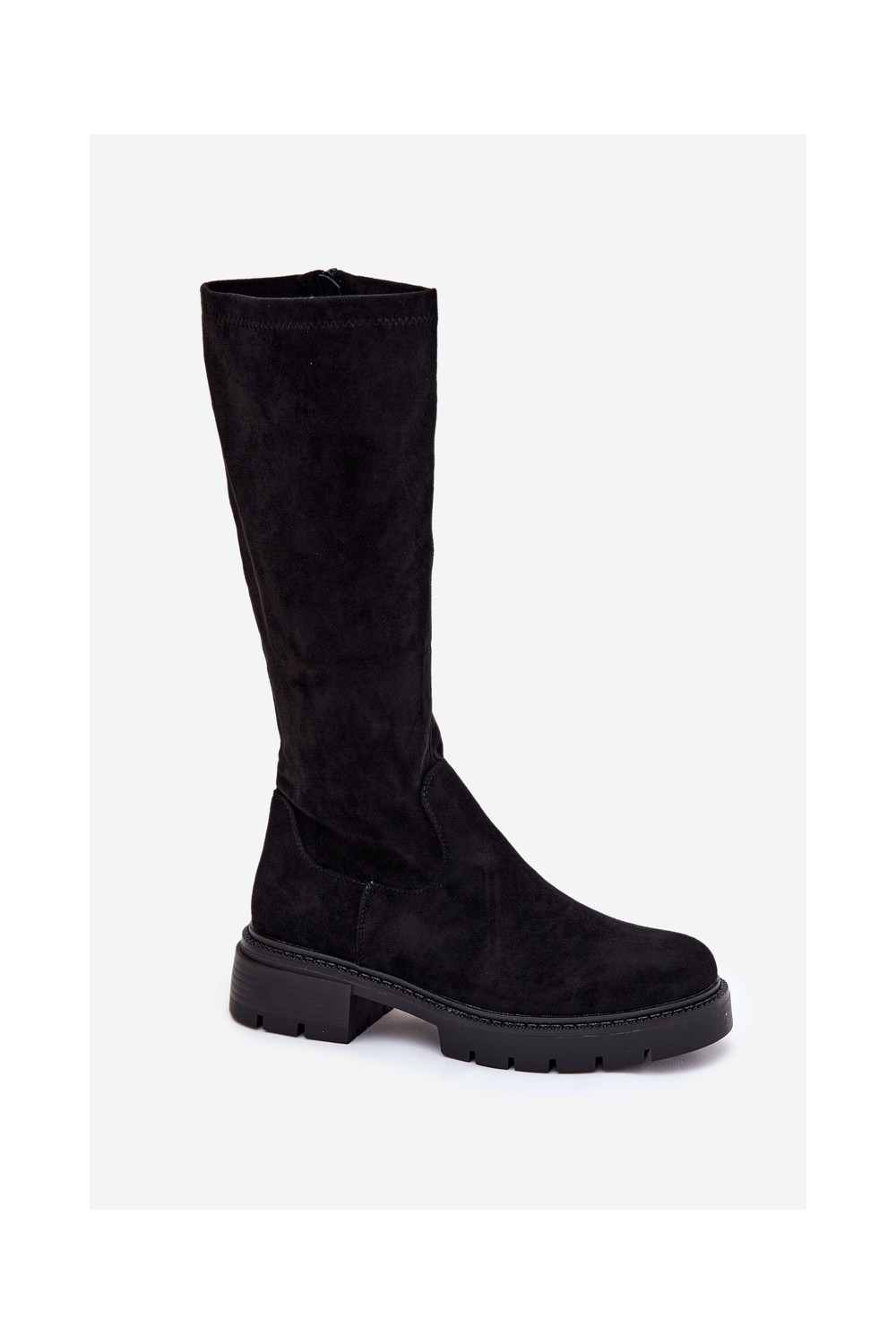 moteriški ilgaauliai batai Z iš eko zomšosu Juodos spalvos Oceana