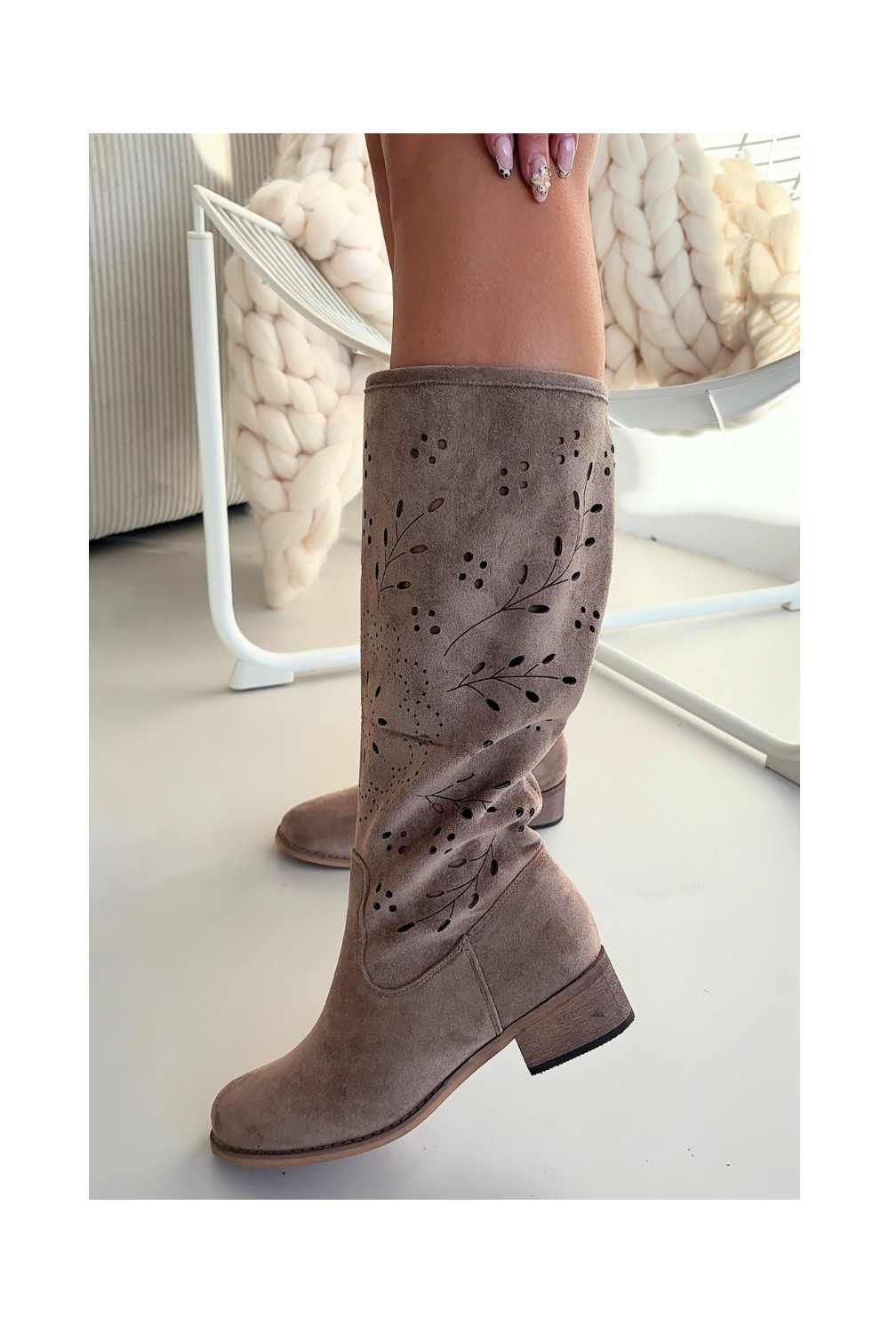 Mėgstami moteriški batai. Nėriniuoti batai iš zomšos imitacijos - idealus šio sezono pasiūlymas! Jie yra ant storo pado. Modelis nėra apšiltintas. Puikiai tinka rudens ir žiemos stilizacijai.