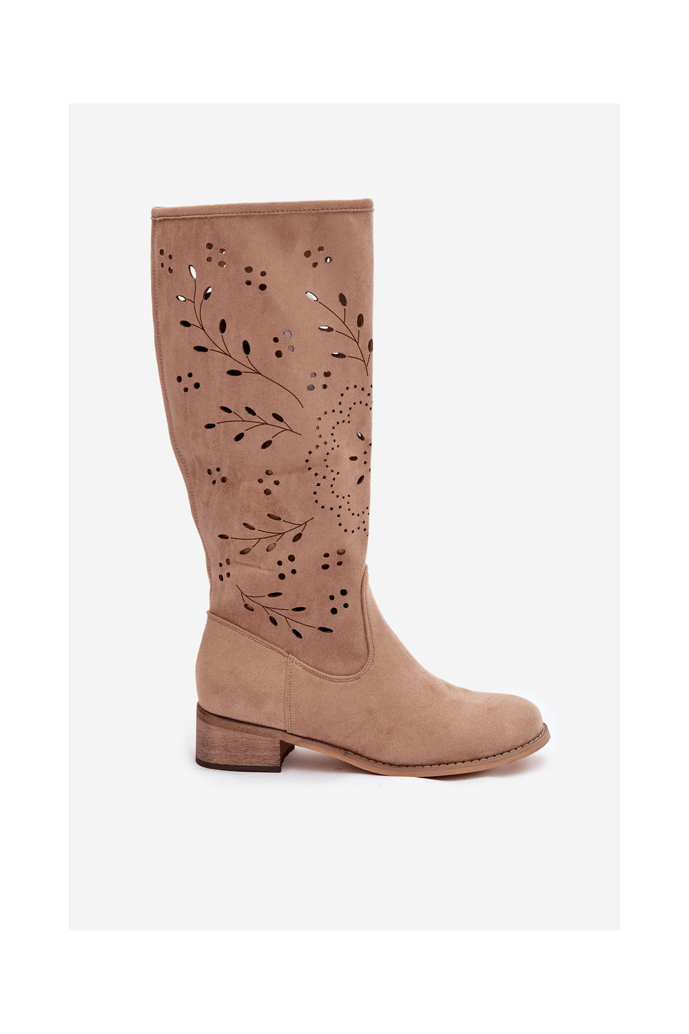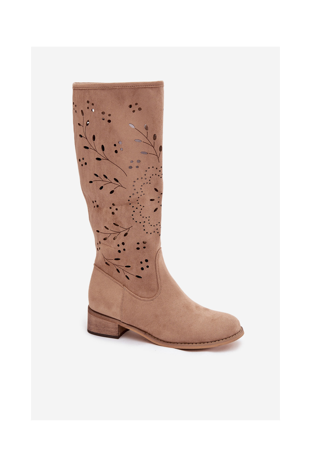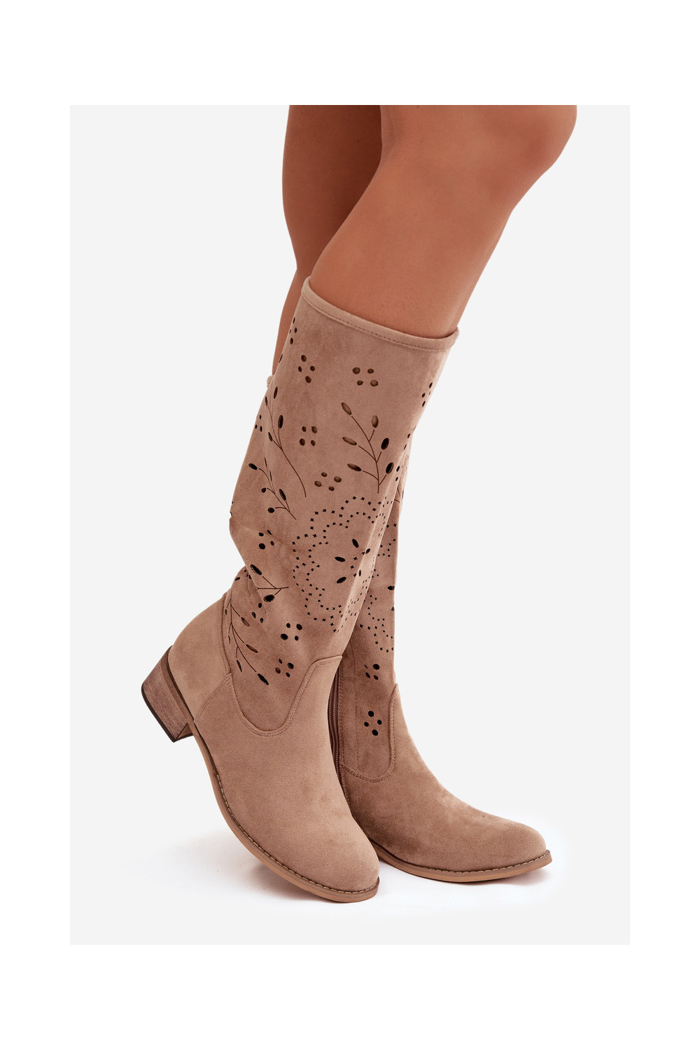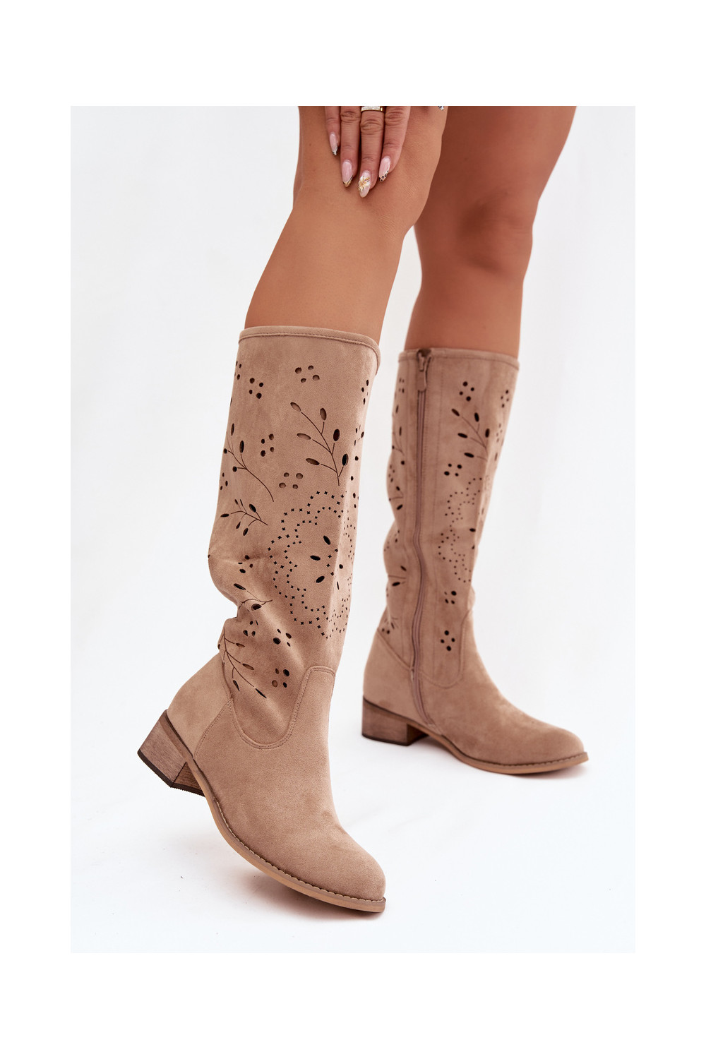 su aužūro elementais moteriški ilgaauliai batai chaki spalvos Helinna