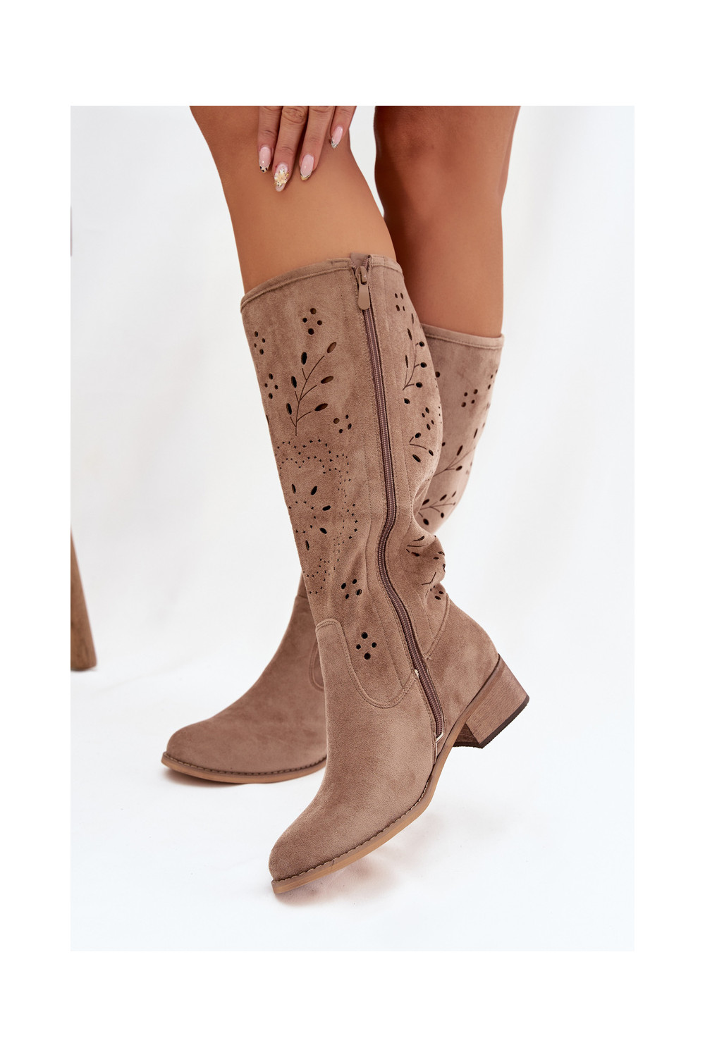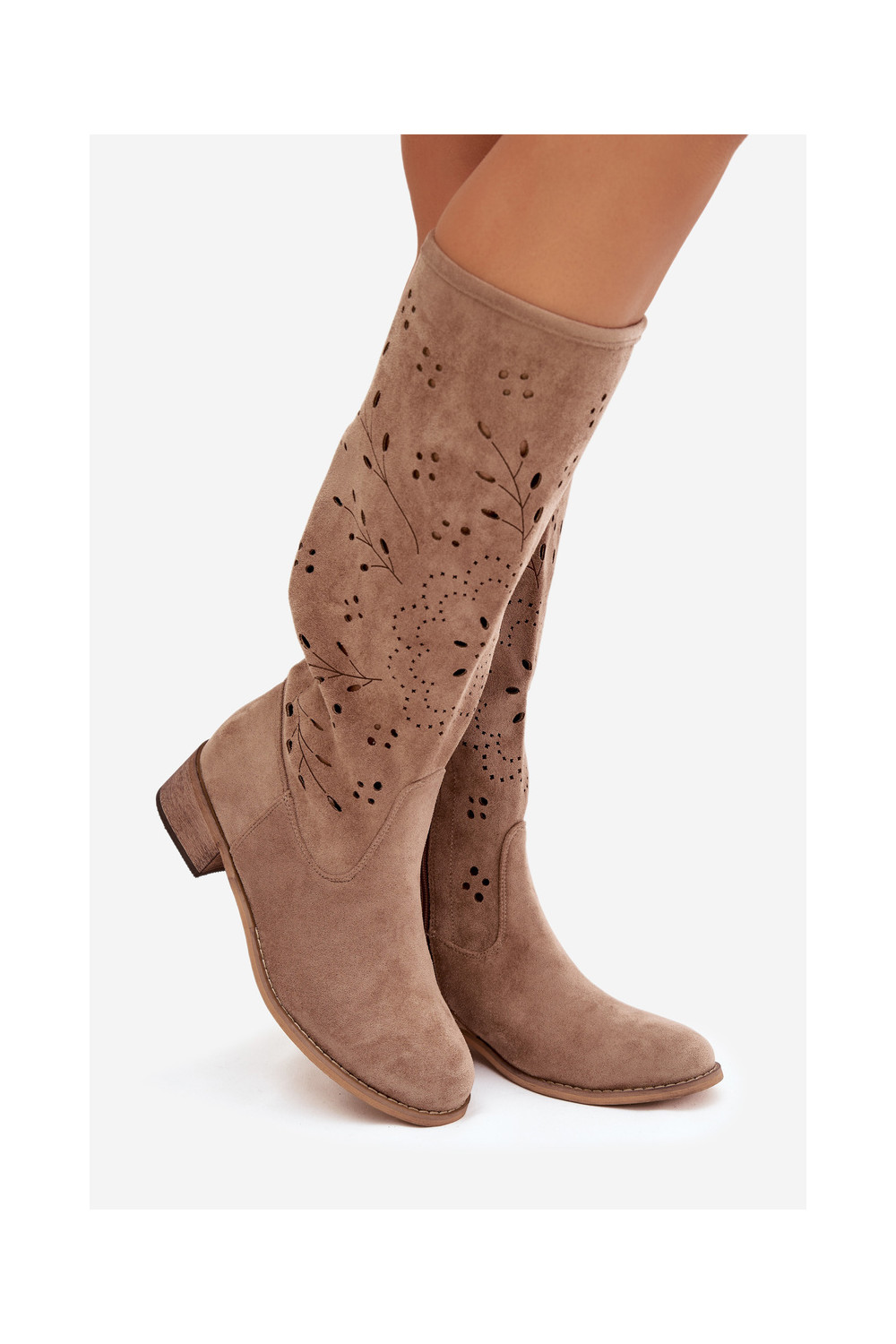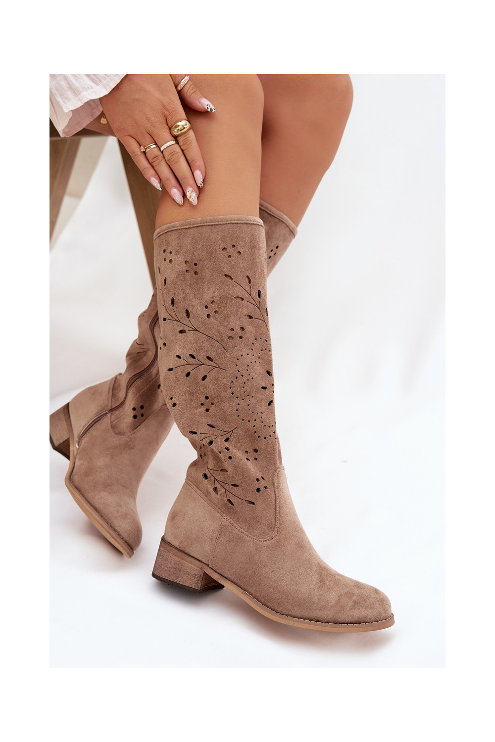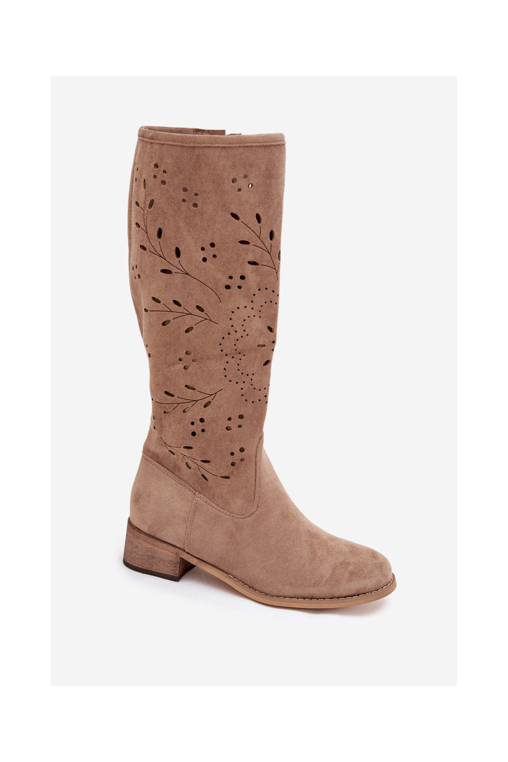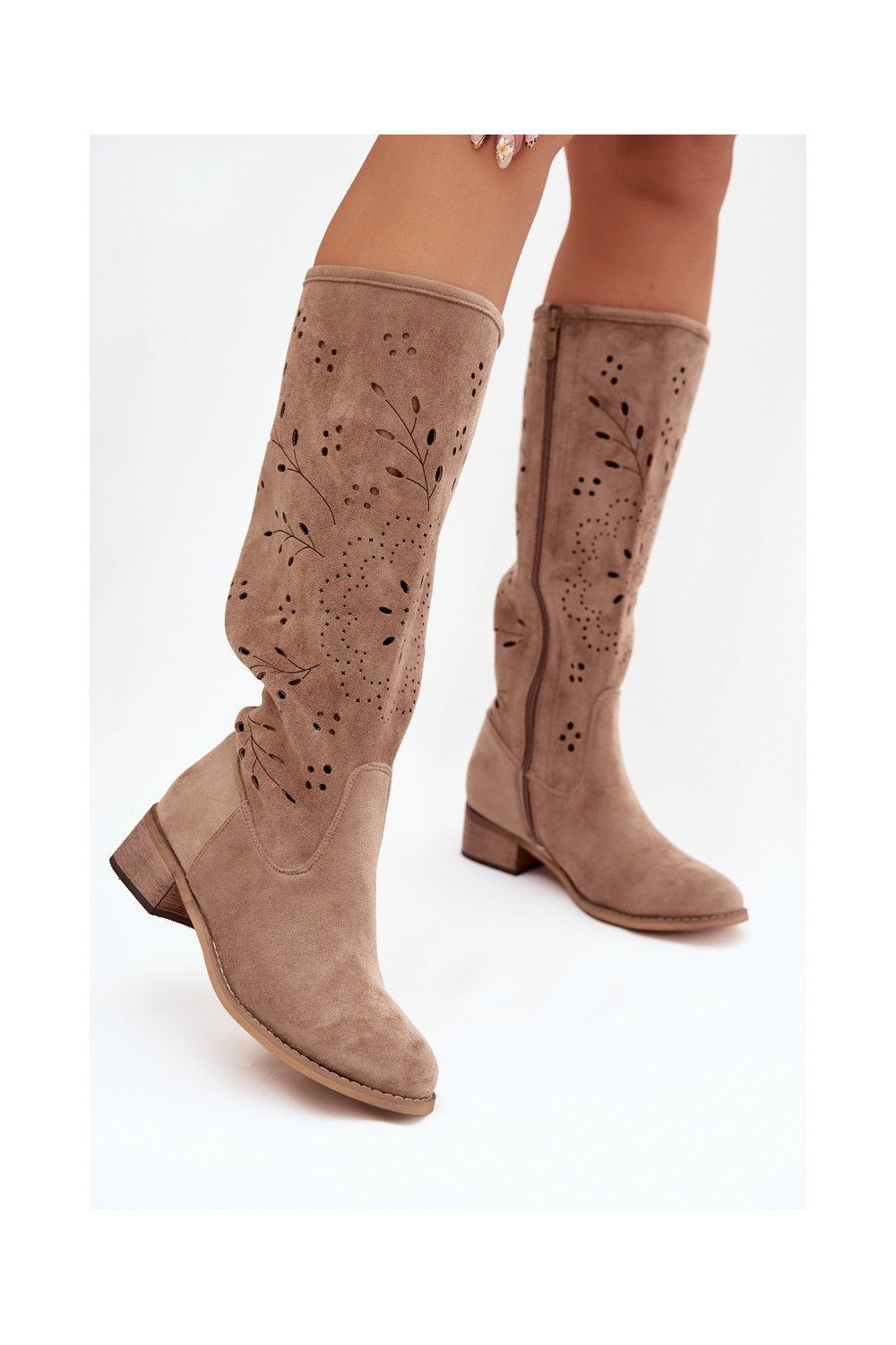 Smėlio spalvos moteriški ilgaauliai batai su ažūro elementais Helinna