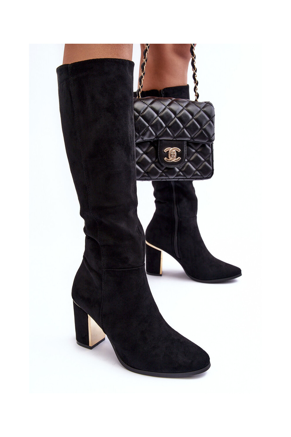 ilgaauliai batai Prieš Kelį su kulniukais iš zomšos juodos spalvos Kilrenita