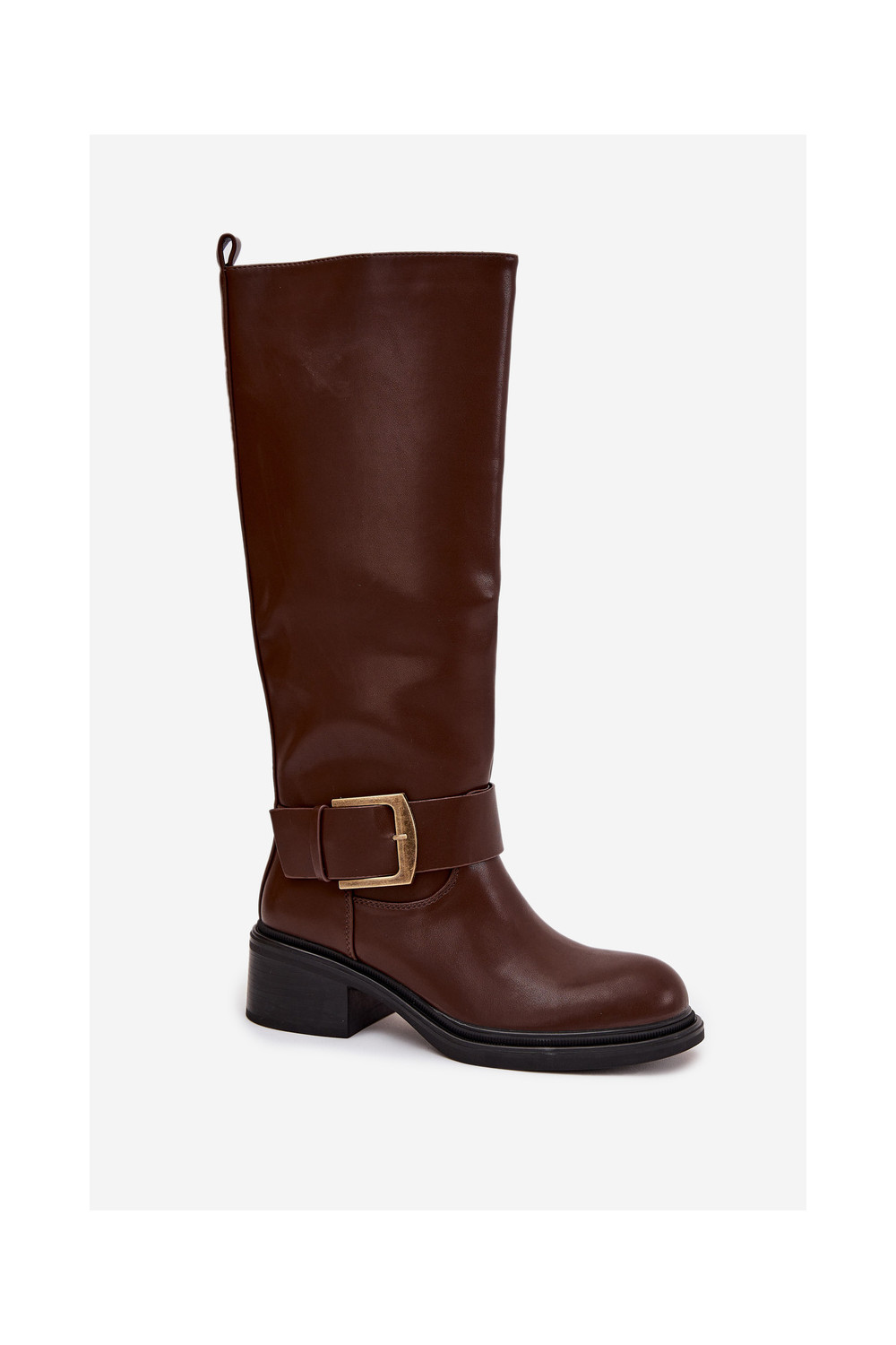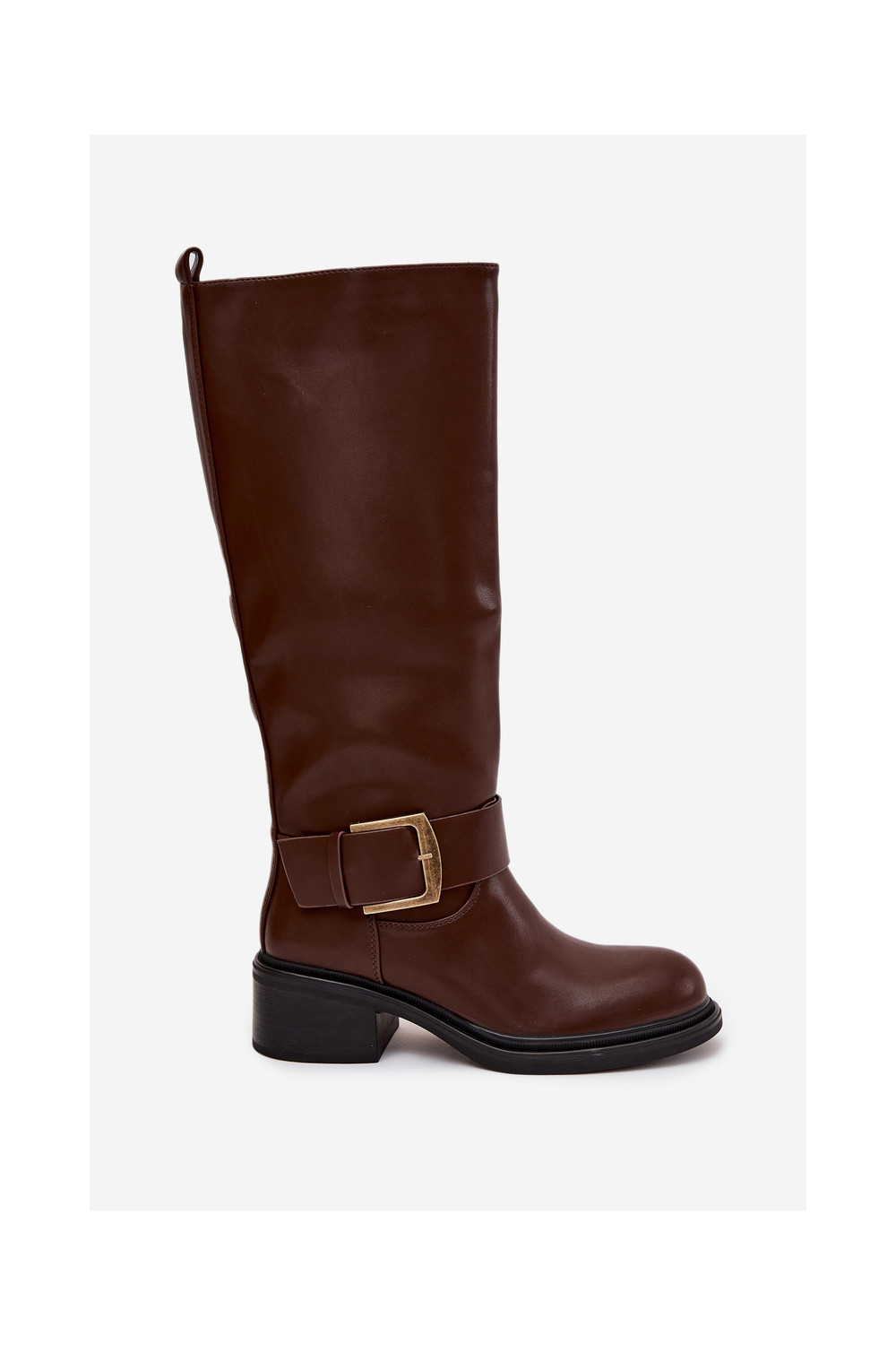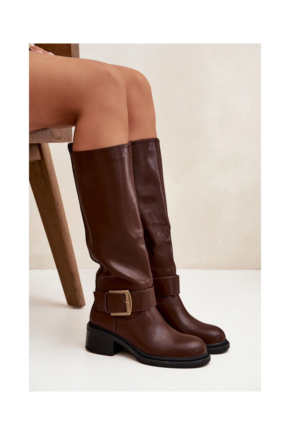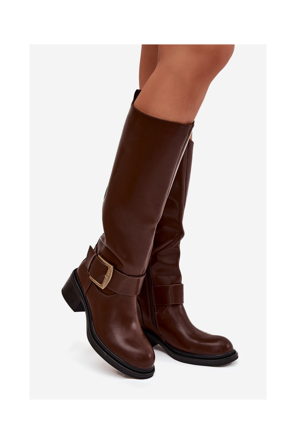 pašiltinti moteriški ilgaauliai batai Klocke su sagtimis CzekoladoĮe Raphaela