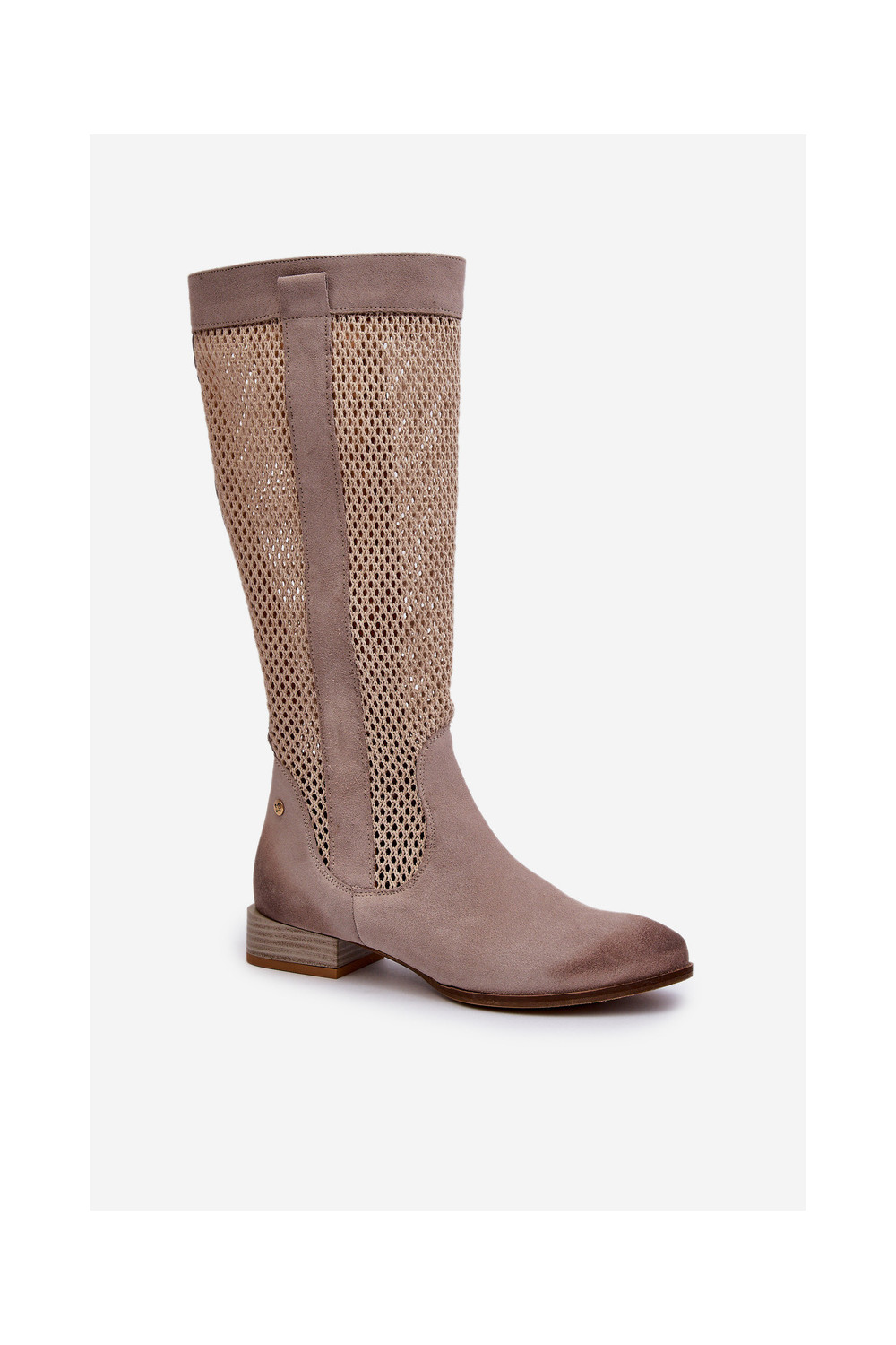 su aužūro elementais moteriški ilgaauliai batai Ant žemo kulnosuĮjungtaturalnego iš zomšosu Tai turiciejka 06467-04 smėlio spalv