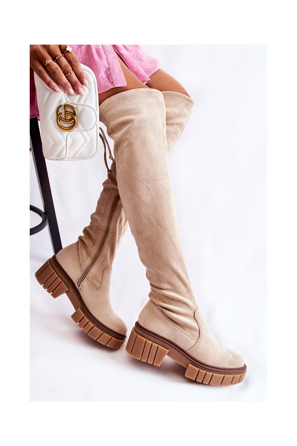 iš zomšos  ilgaauliai batai virš kelių dramblio kaulo spalvos Cheera