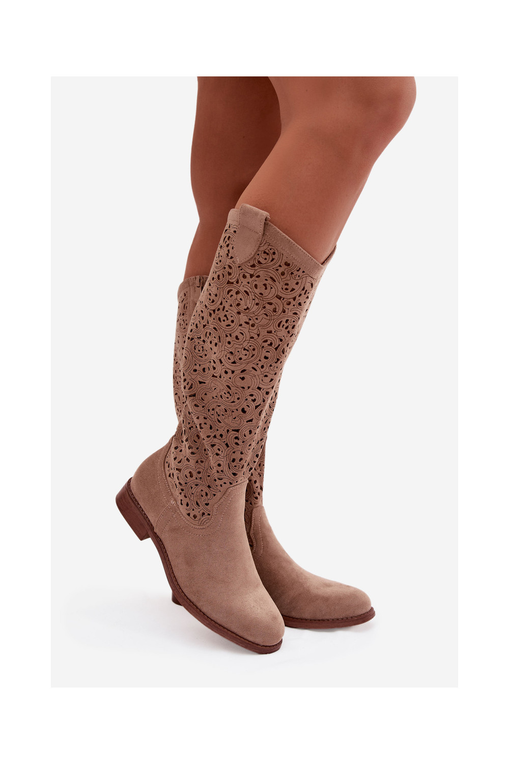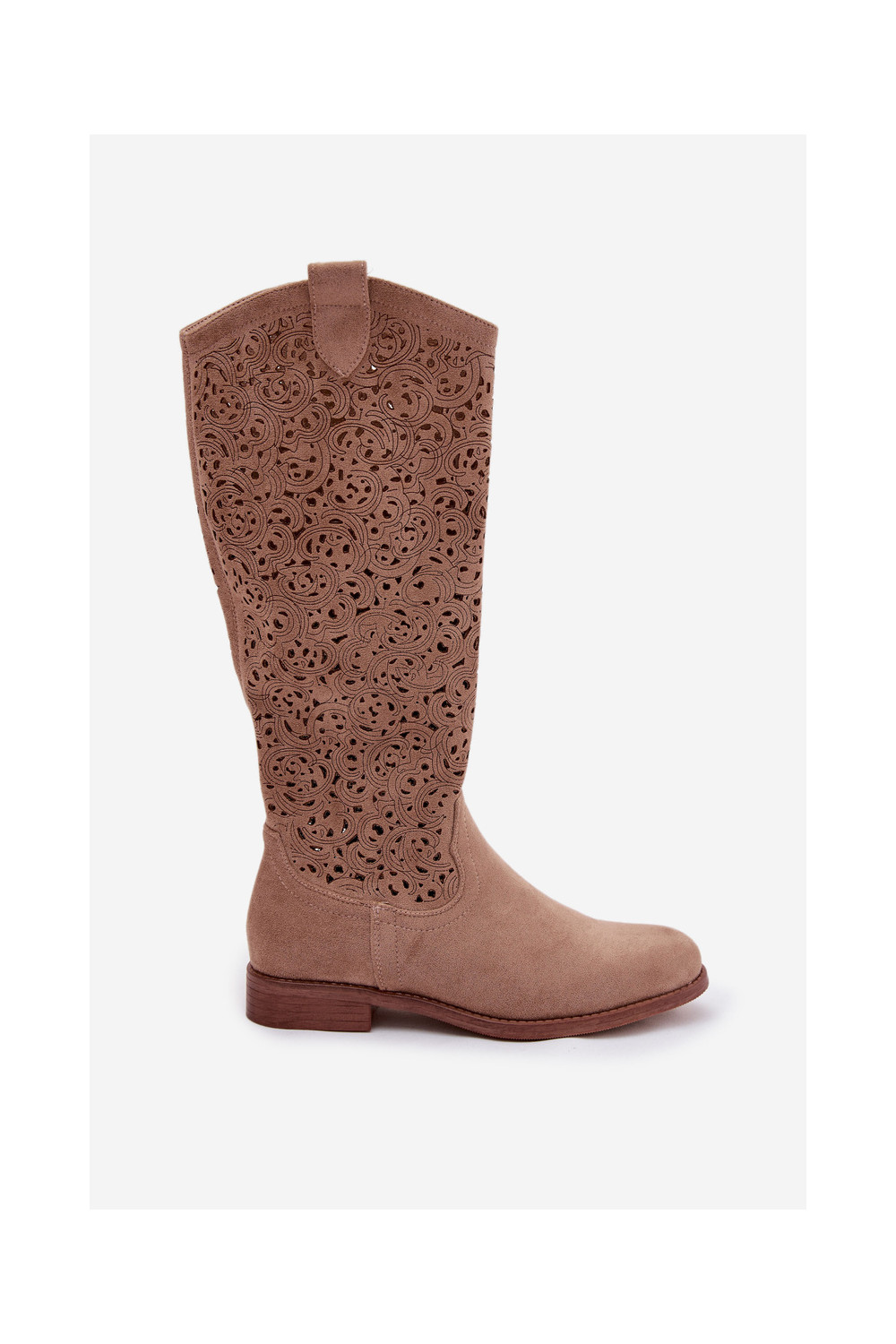 su aužūro elementais moteriški ilgaauliai batai su plačiais kulniukais S.Barski HY61-8023 smėlio spalvos
