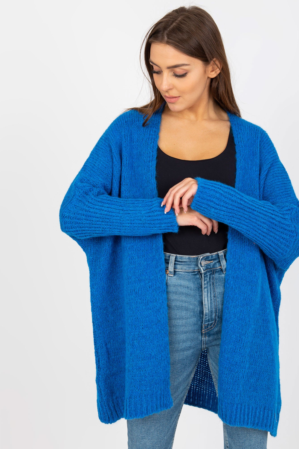 Vieno dydžio megztinio matmenys išmatuoti plokščiai: plotis po pažastimis - 85 cm, bendras ilgis - 80 cm, rankovių ilgis - 56 cm.
