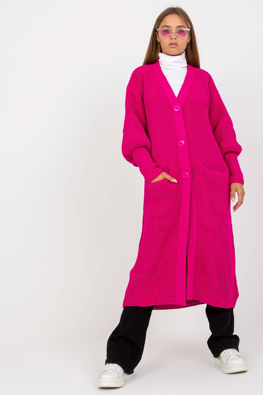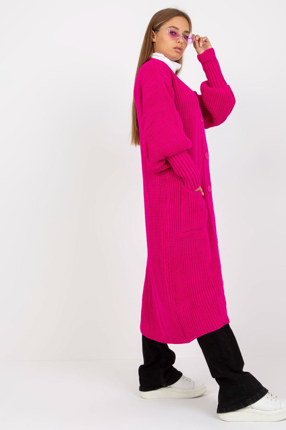 Fuksijos ilgio megztinis su didelėmis sagomis OCH BELLA .
