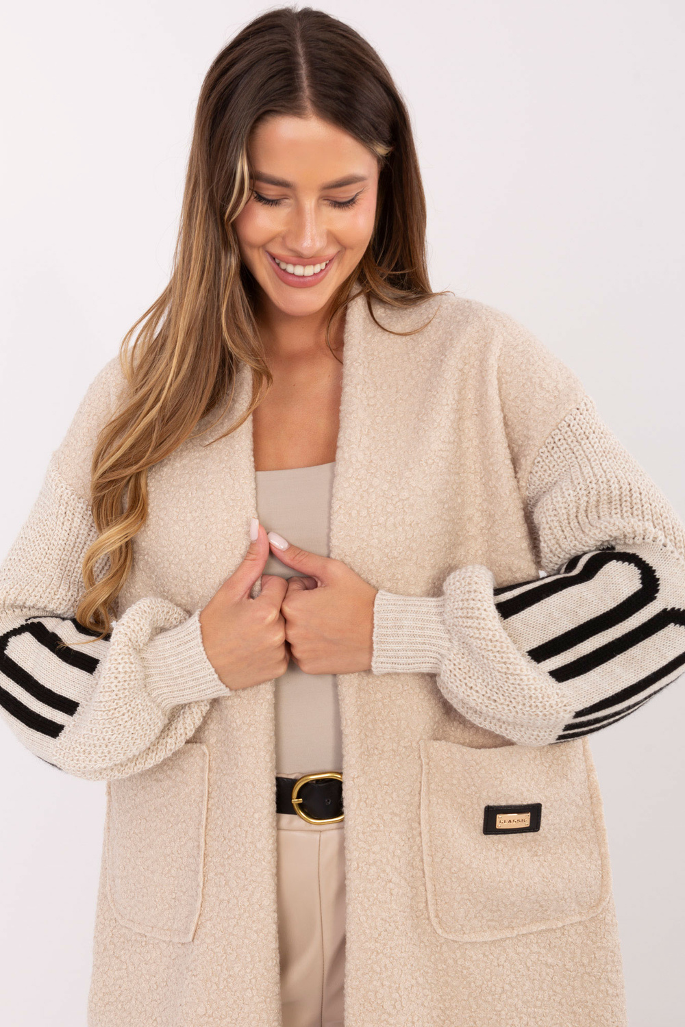 Kardigan matmenys vieno dydžio: plotis po pažastimis - 63 cm, bendras ilgis - 98 cm, rankovės ilgis - 55 cm (nuo siūlės), plotis ties klubais - 68 cm.