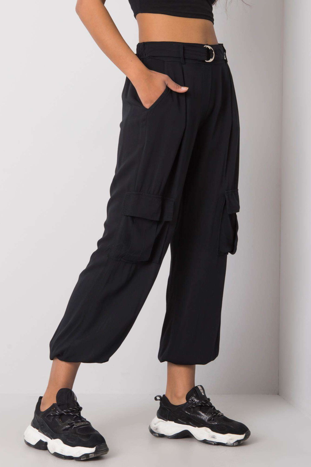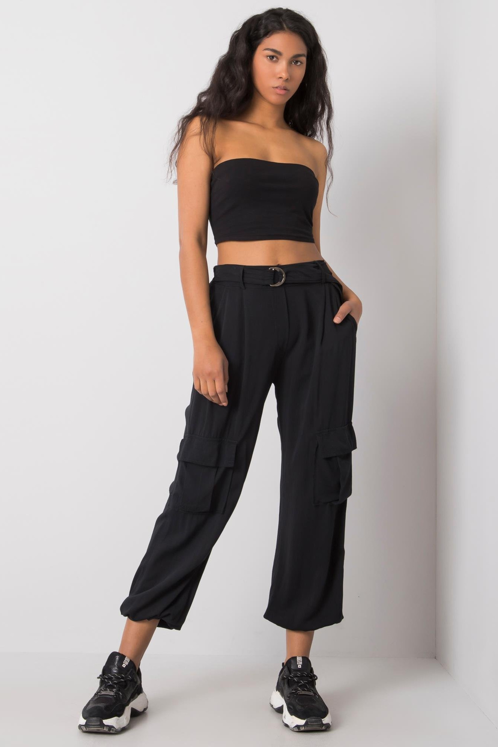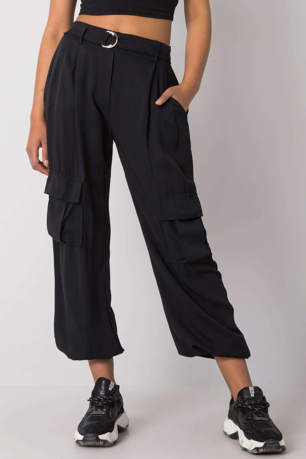 LorritaOCH BELLA juodos kelnės . priedai: dirželio medžiagasudėtis: 100% viskozė skalbimo būdas: skalbimas mašinoje 30°C Modelis dėvi S dydį. Modelio išmatavimai: aukštis 174 cm, krūtinė 84 cm, juosmuo 60 cm, klubai 90 cm. S m