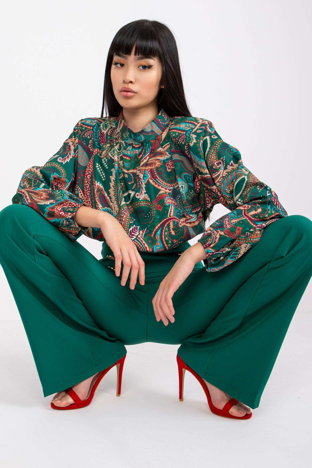 Žalios elegantiškos kelnės su „Salerno“ išlenkimais.