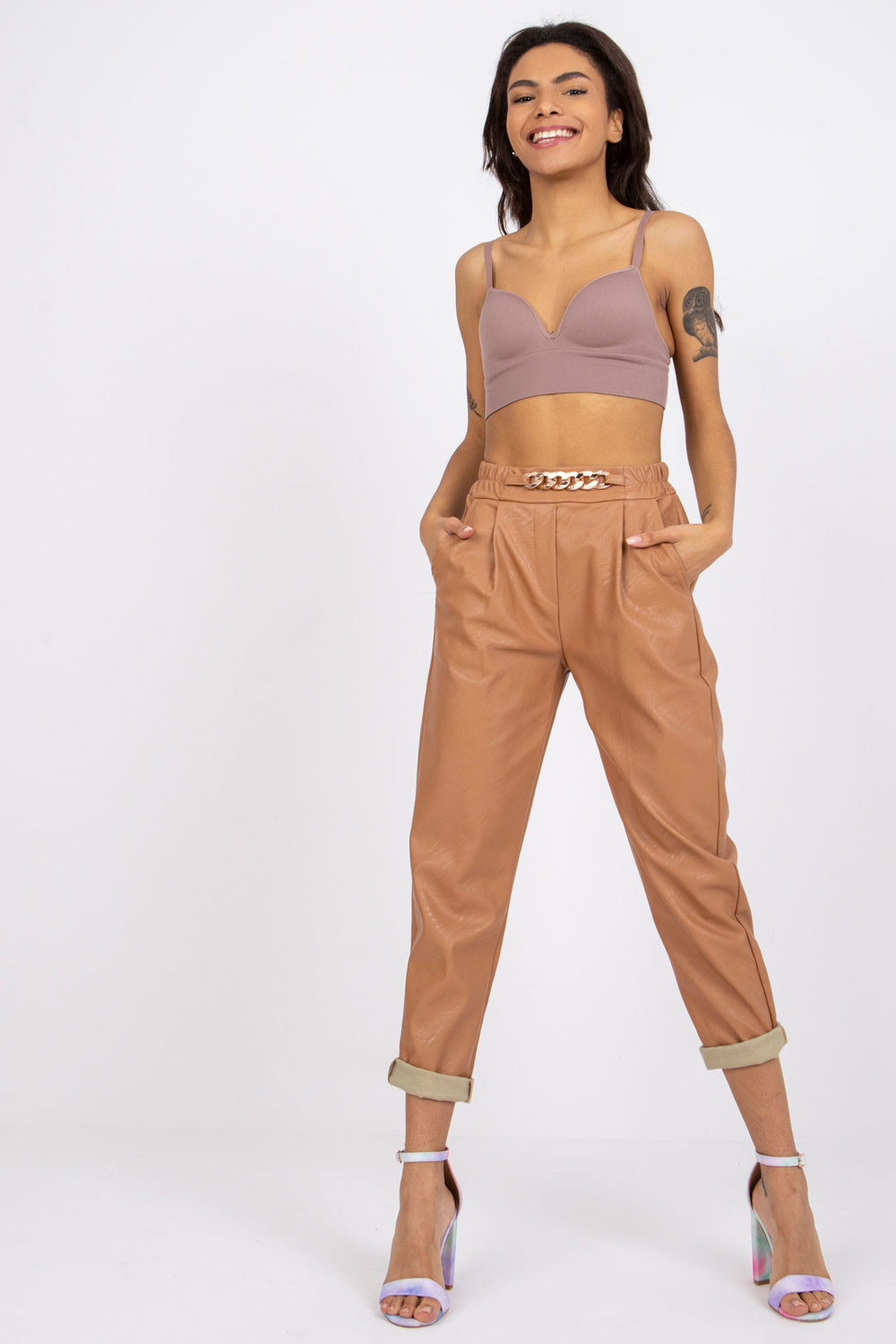 Moteriškos kupranugarinės kelnės iš ekologiškos odos Porto.